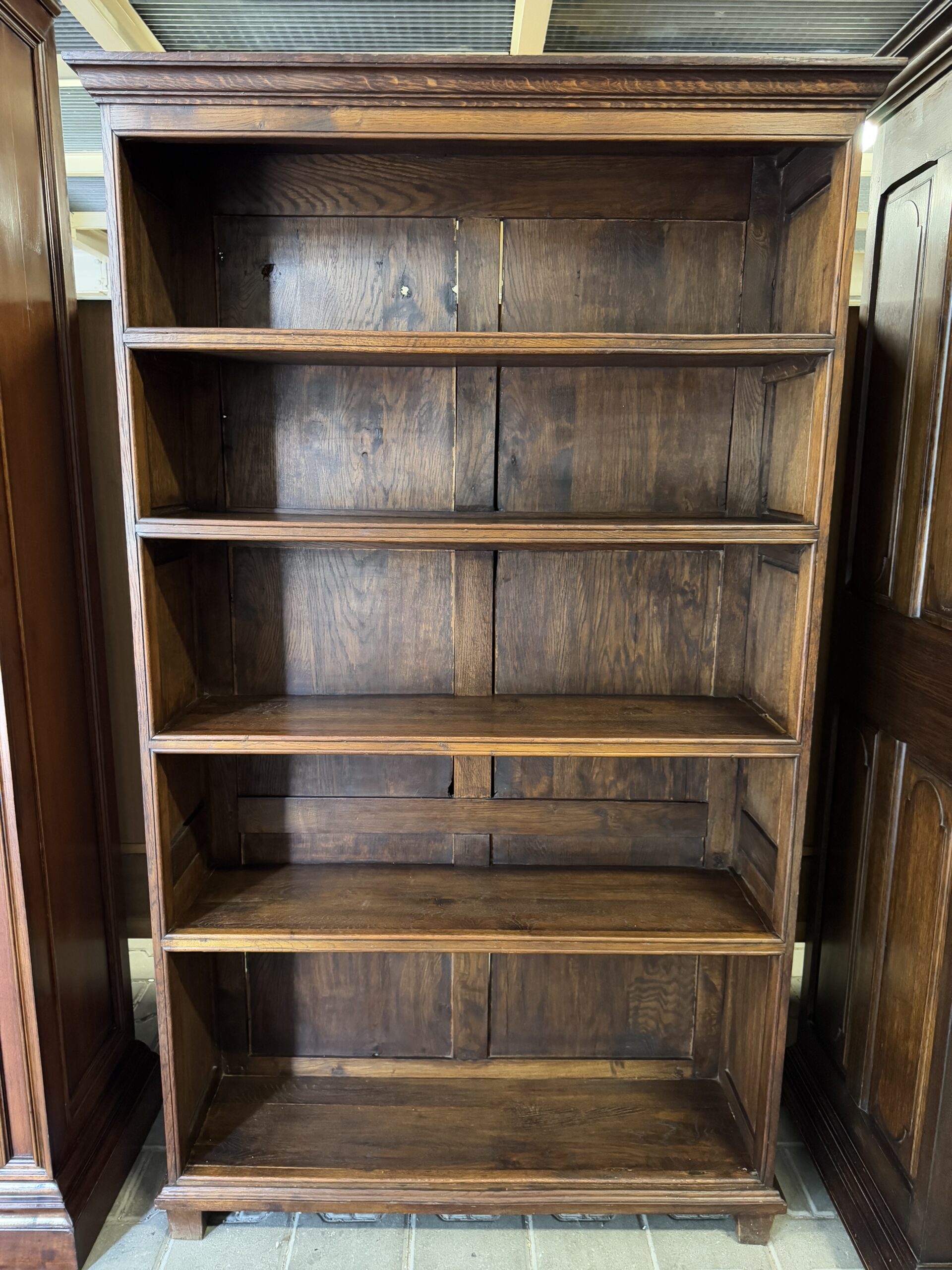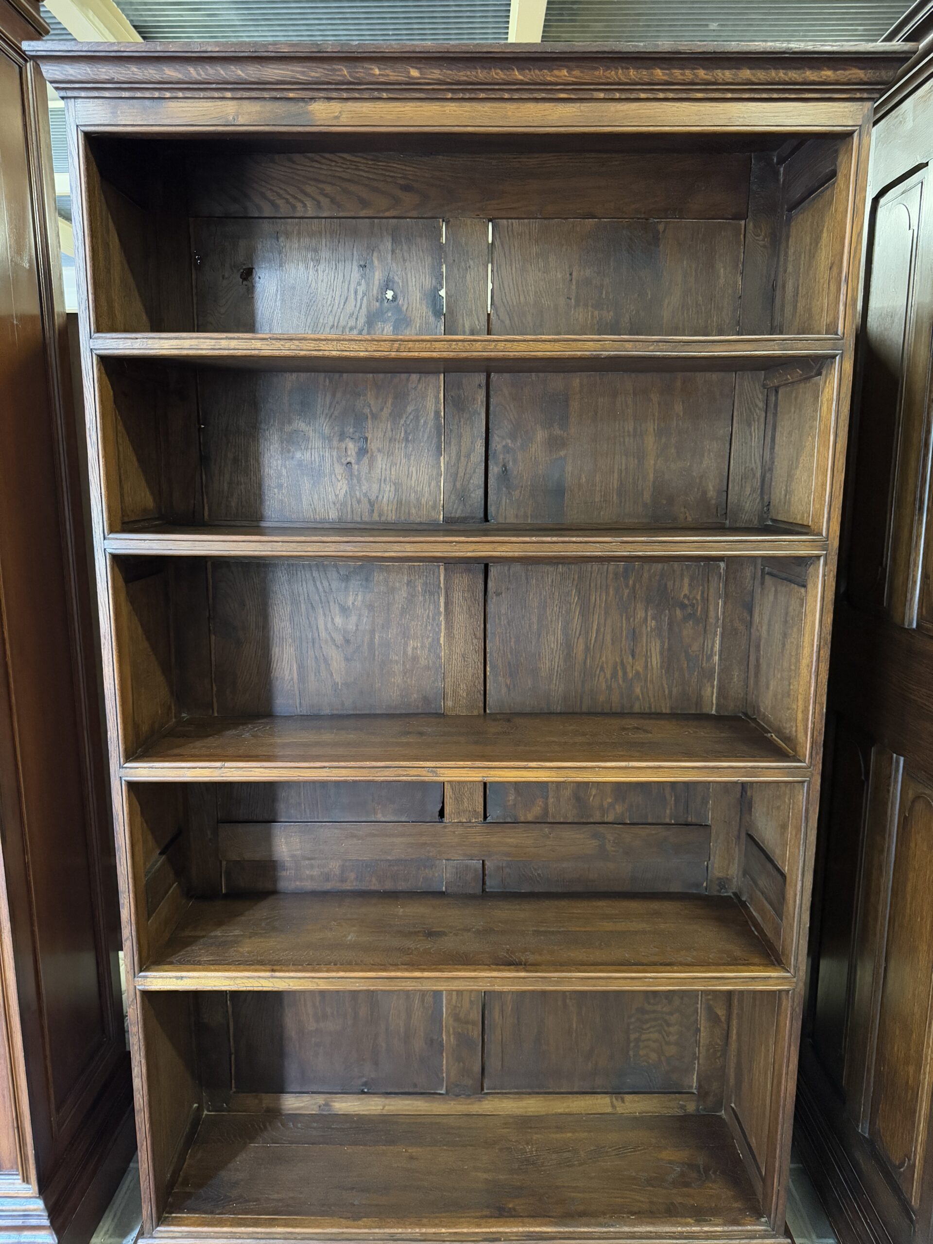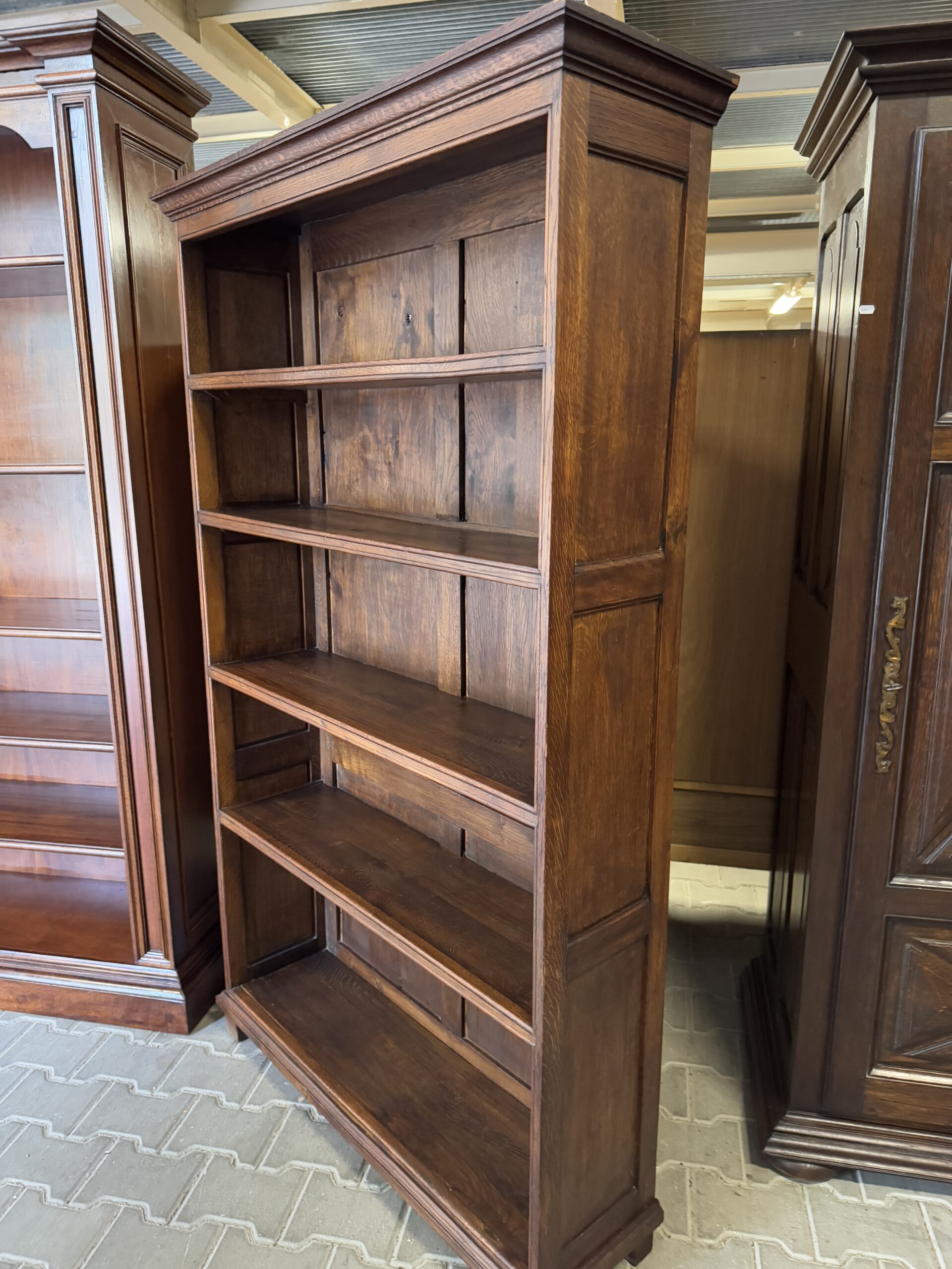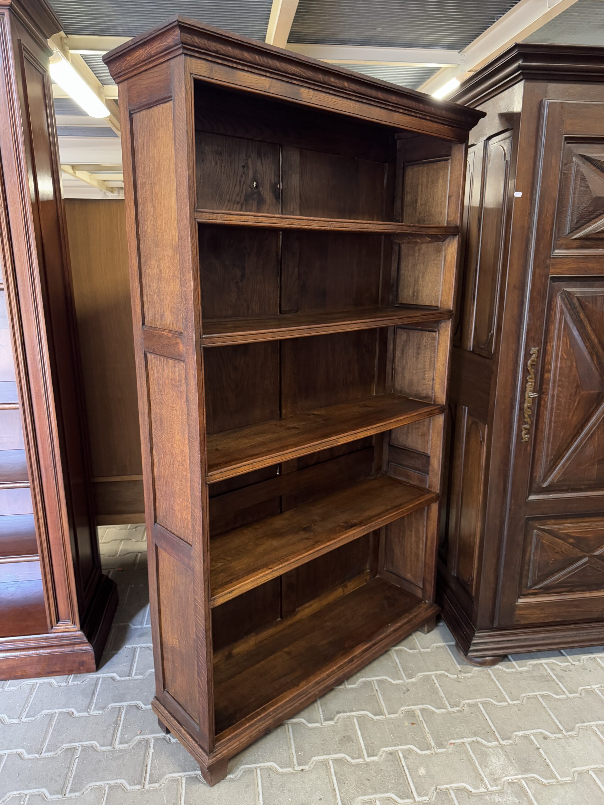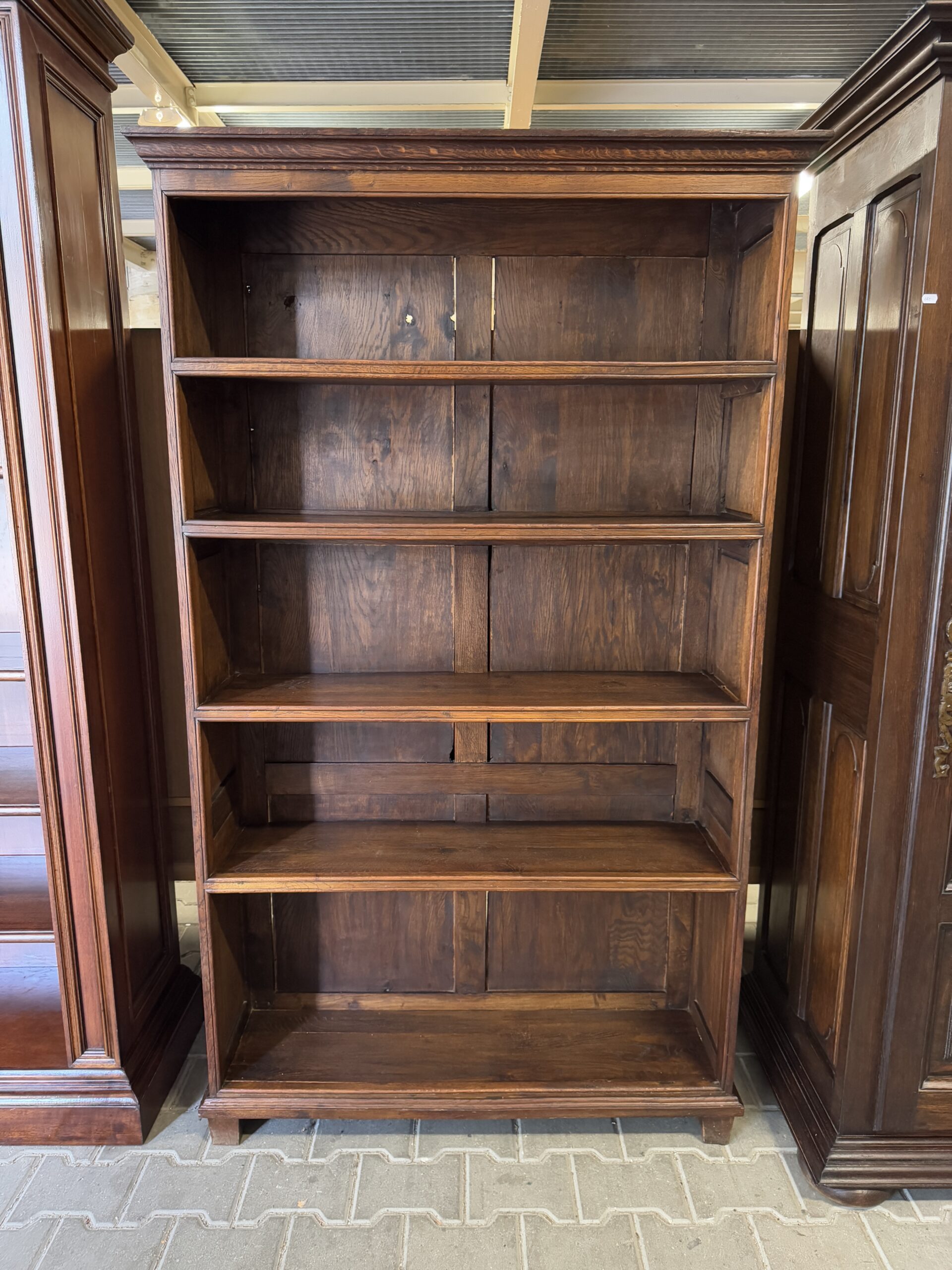 Drewniana biblioteka/regał w ciemnym kolorze.