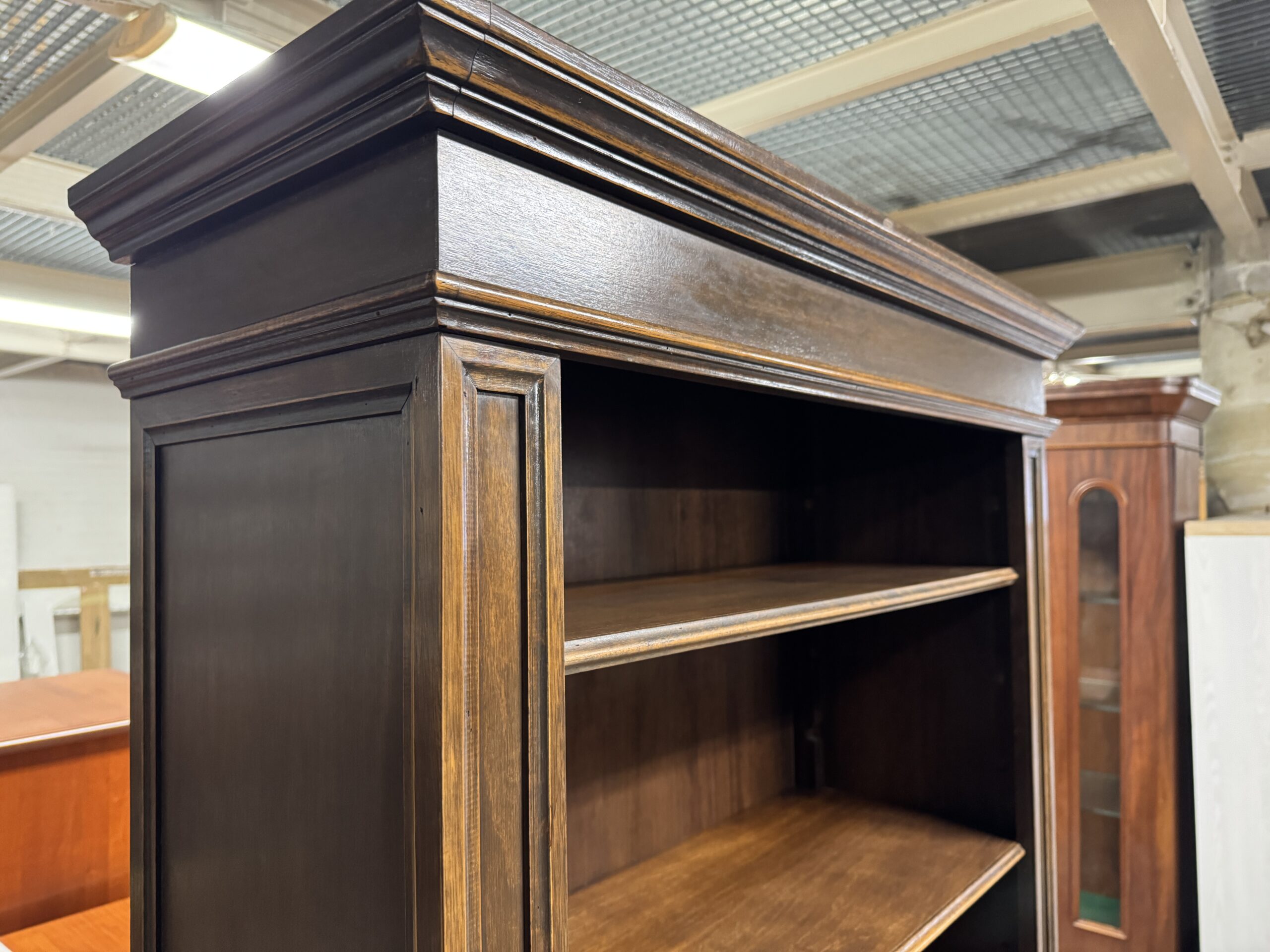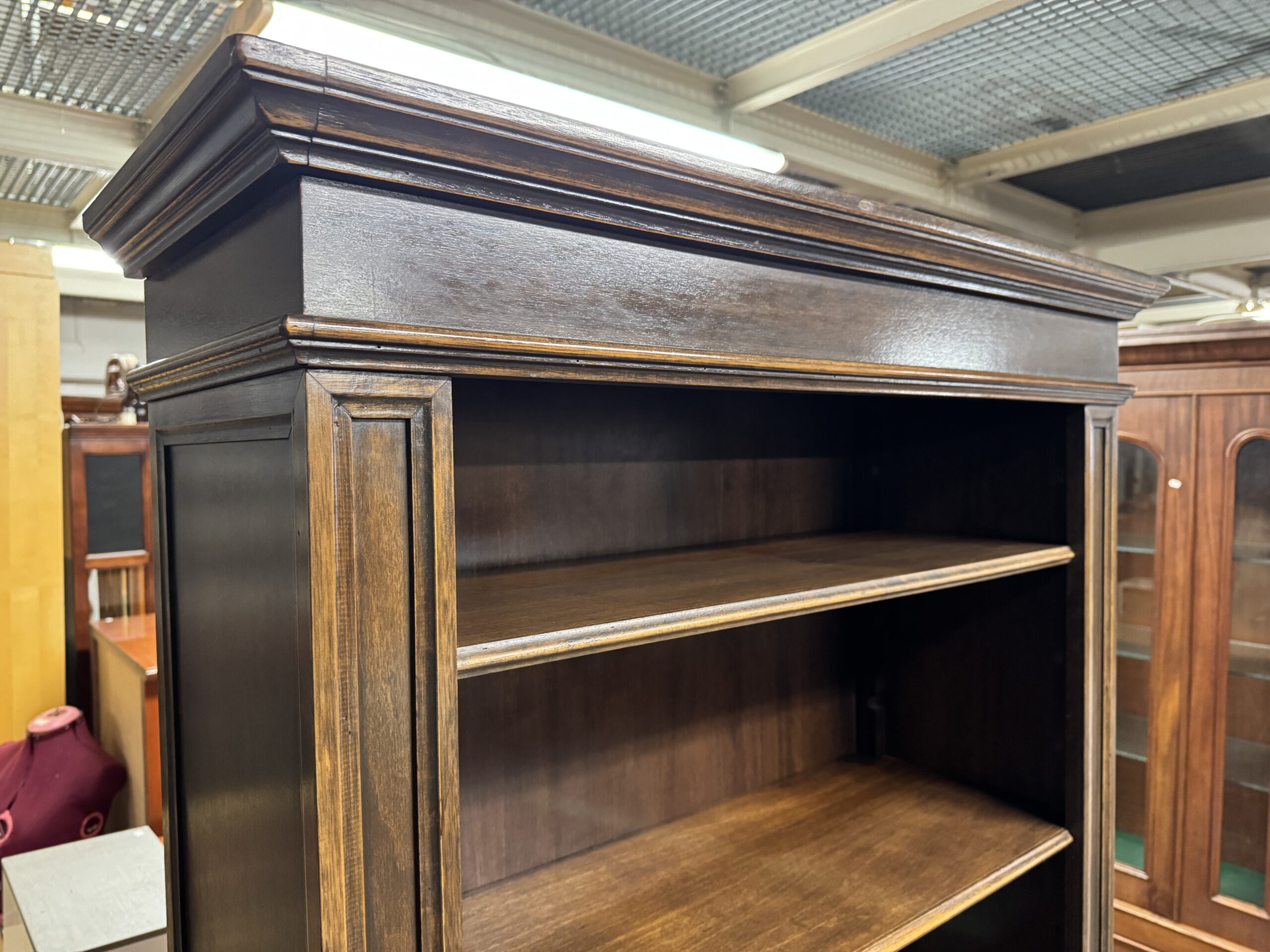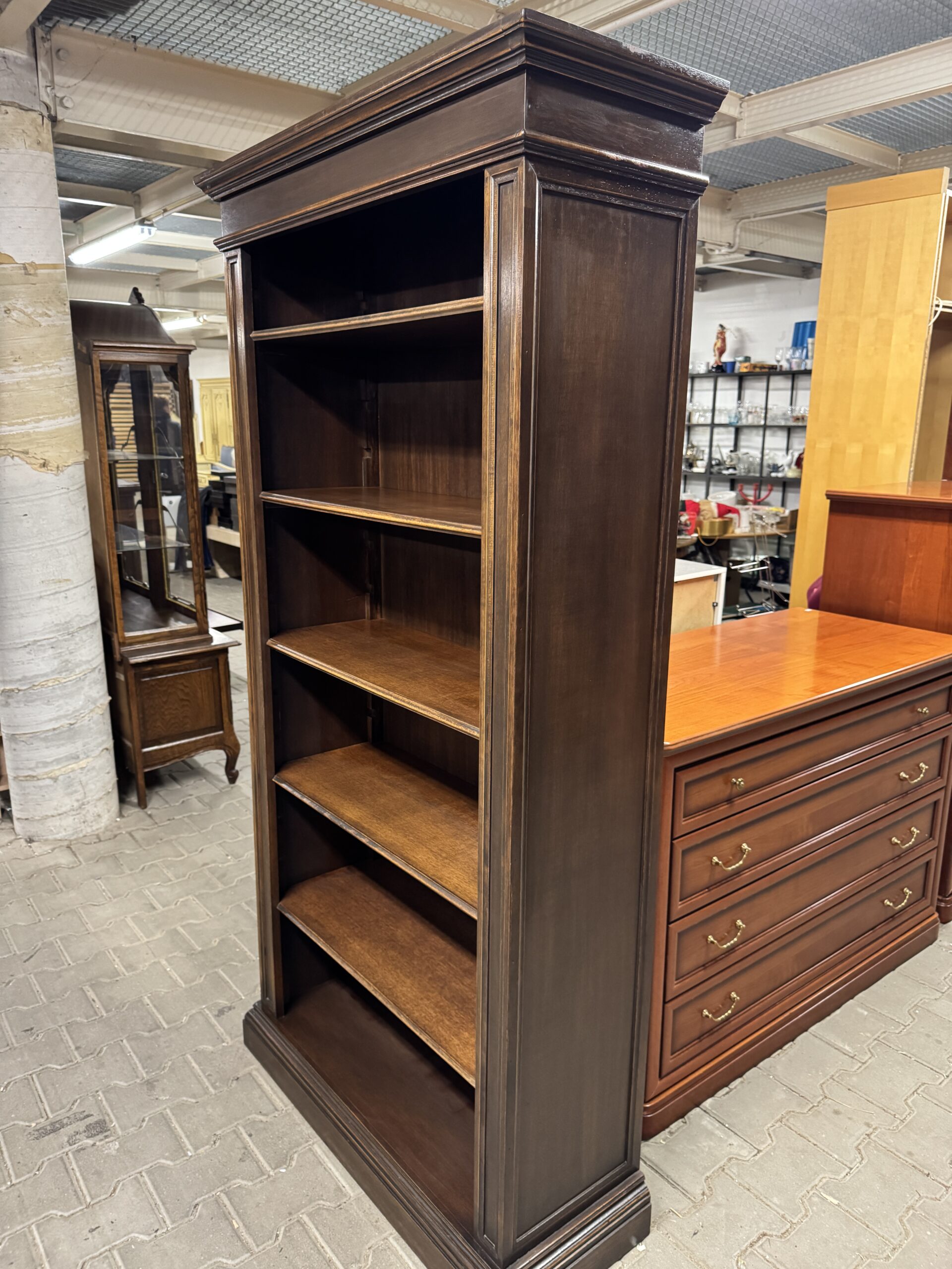 Biblioteka drewniana ciemna.