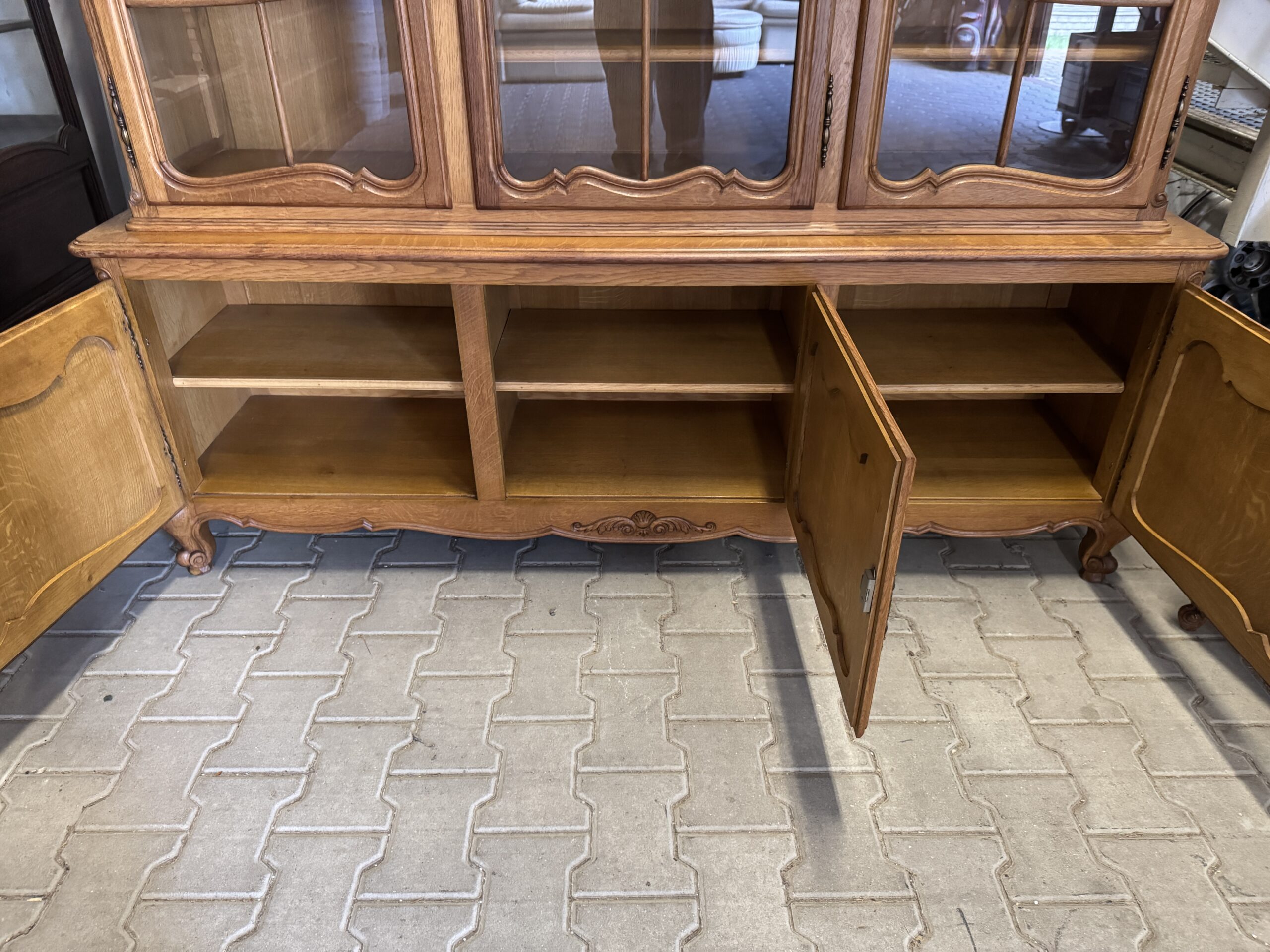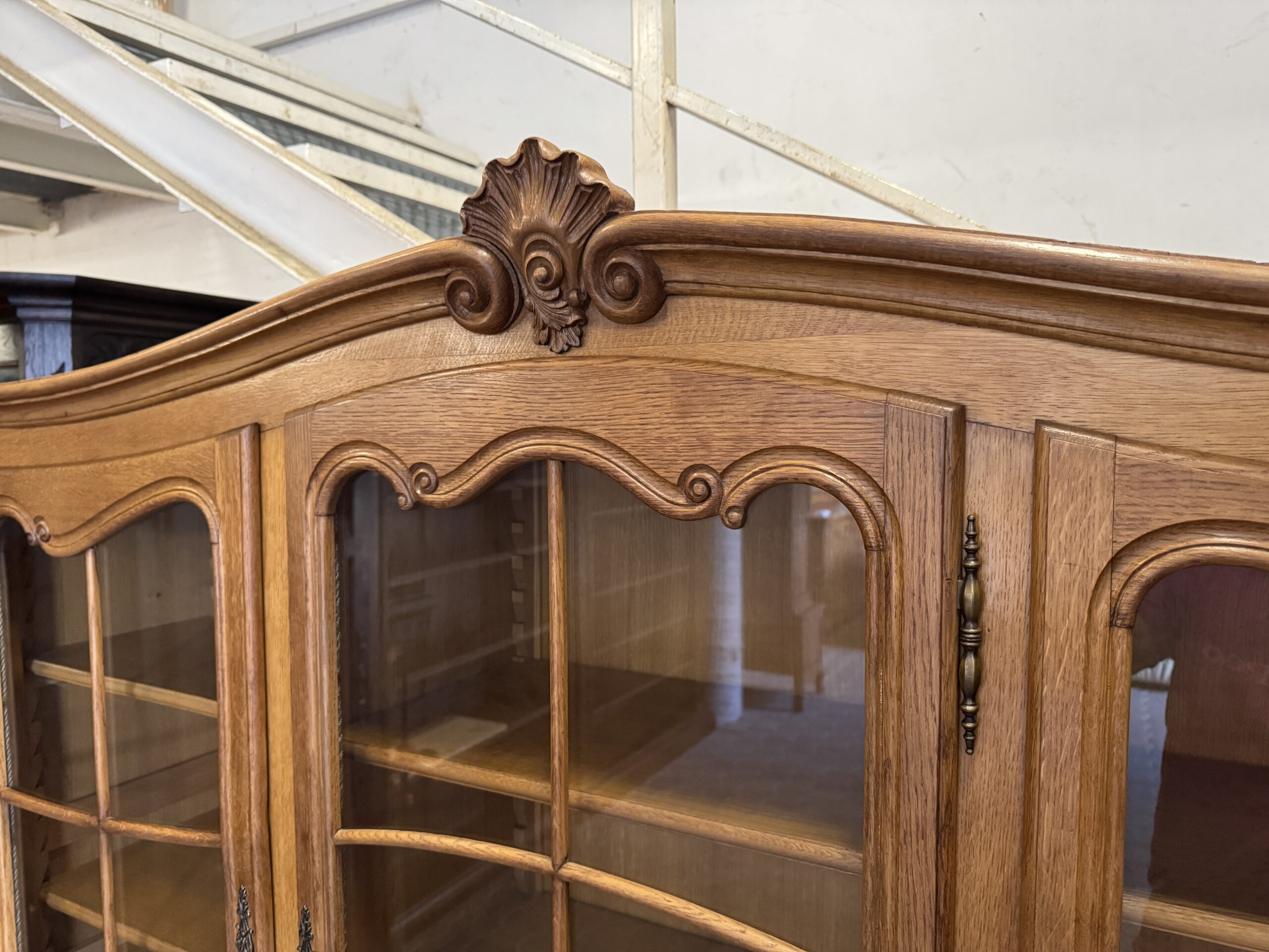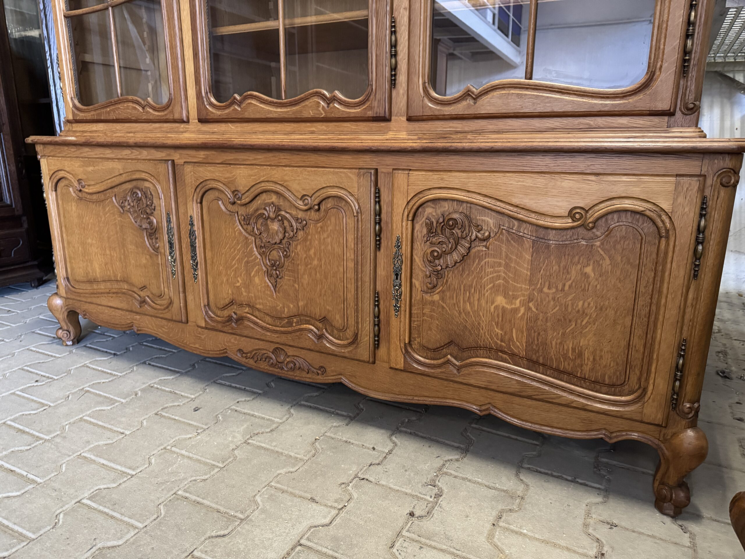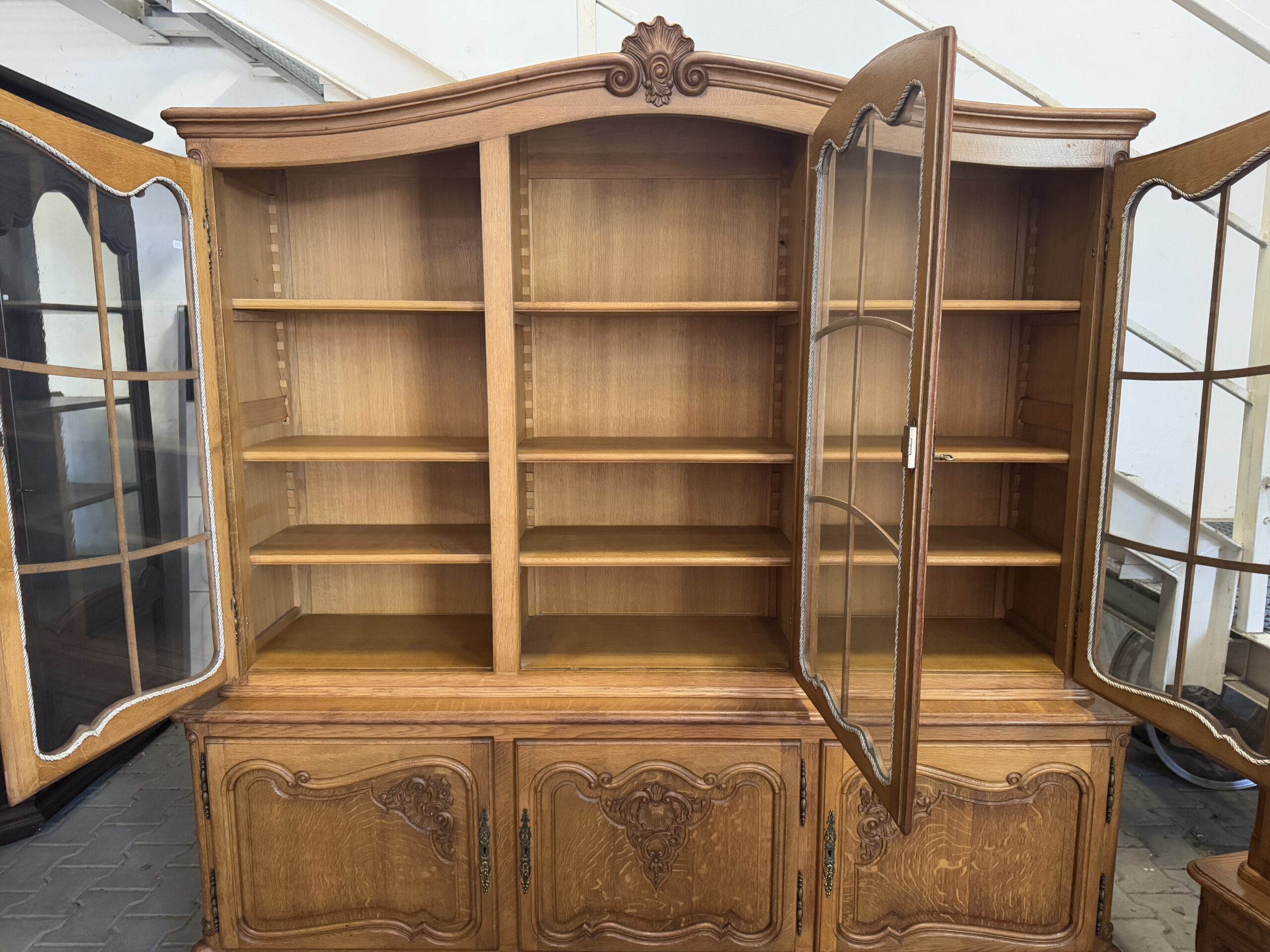 Biblioteka robiona z drewna dębowego w jasnym kolorze.