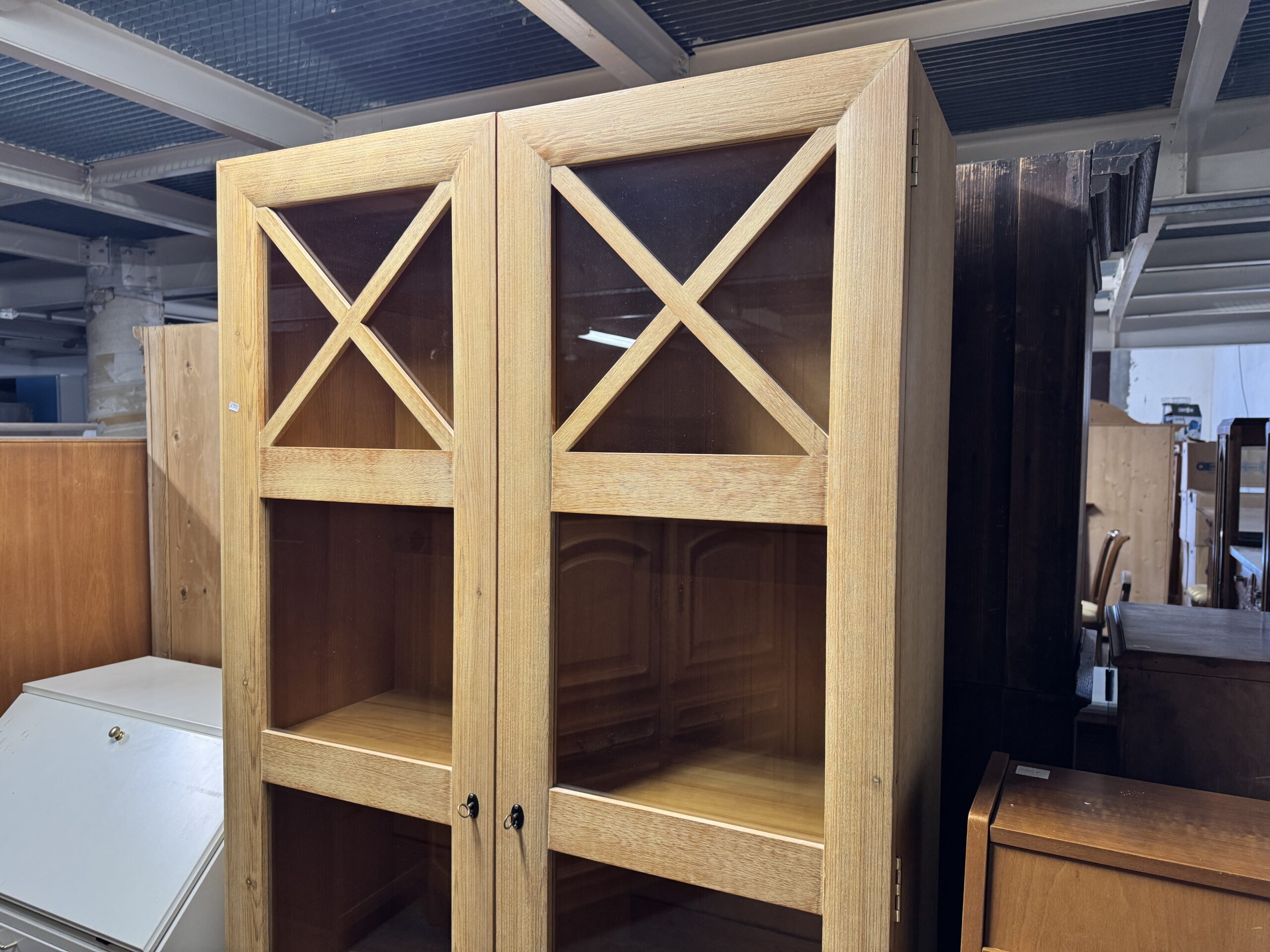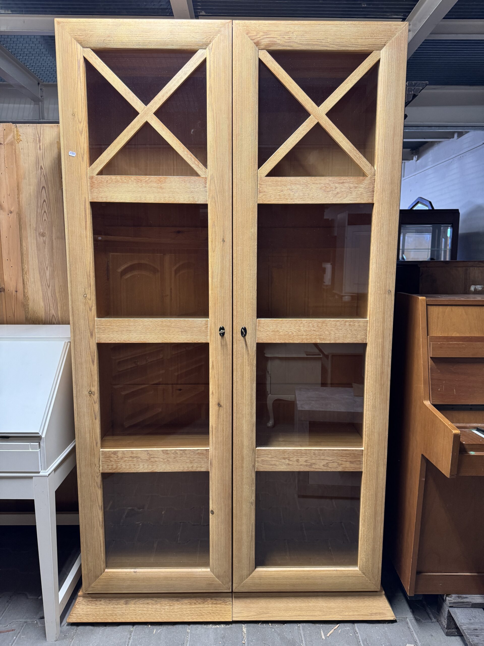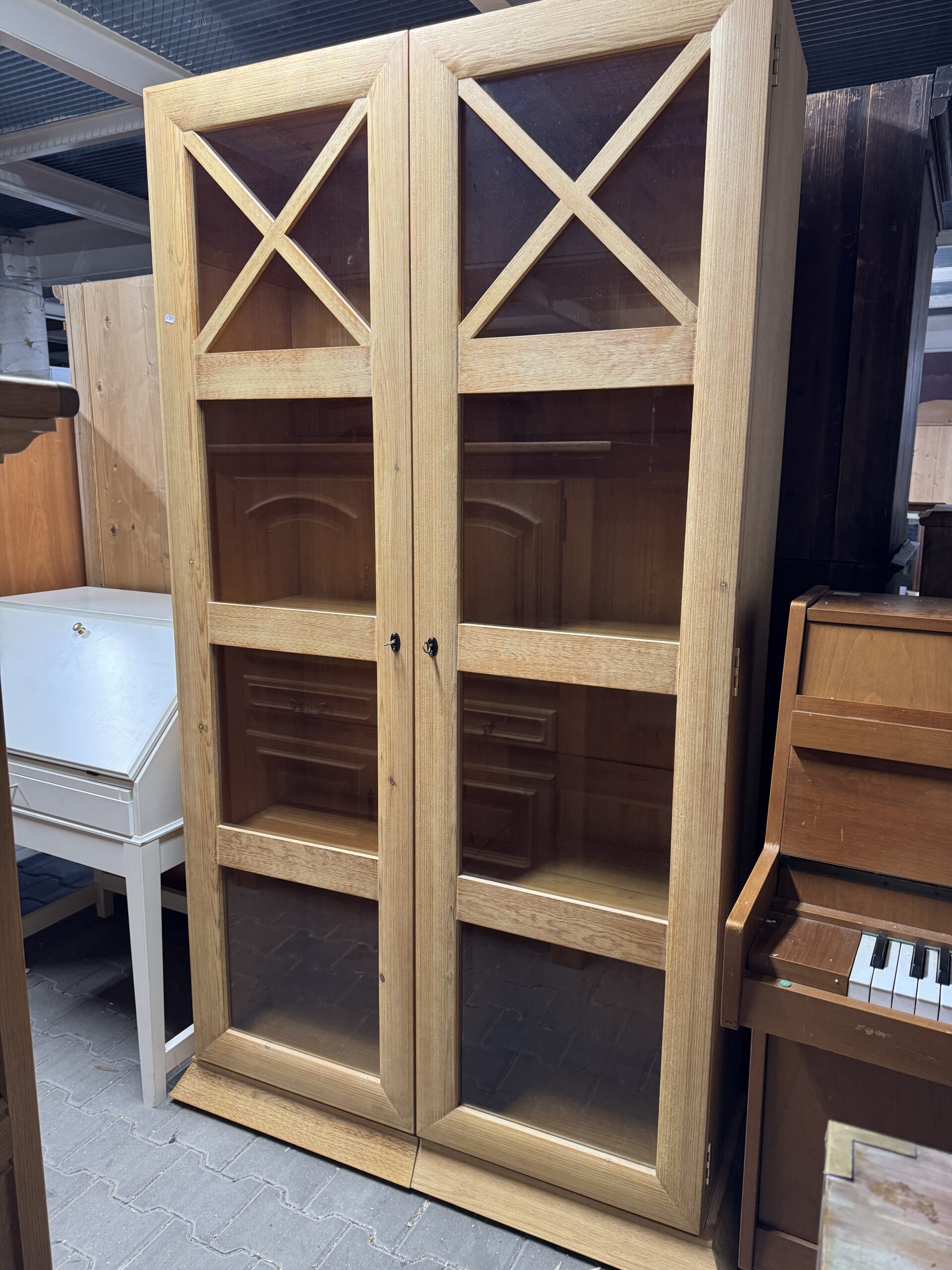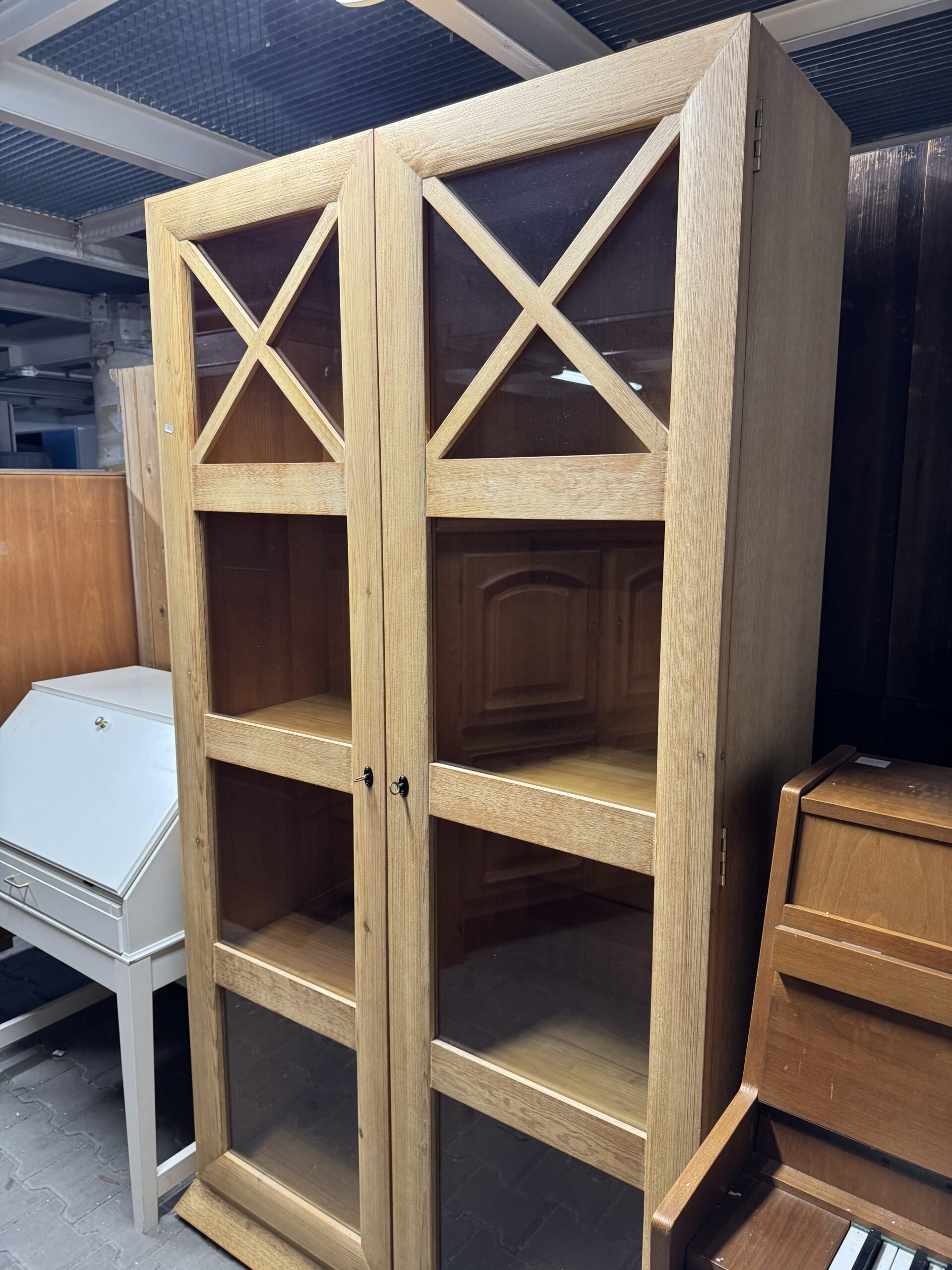 Oryginalna sosnowa biblioteka przeszklona.