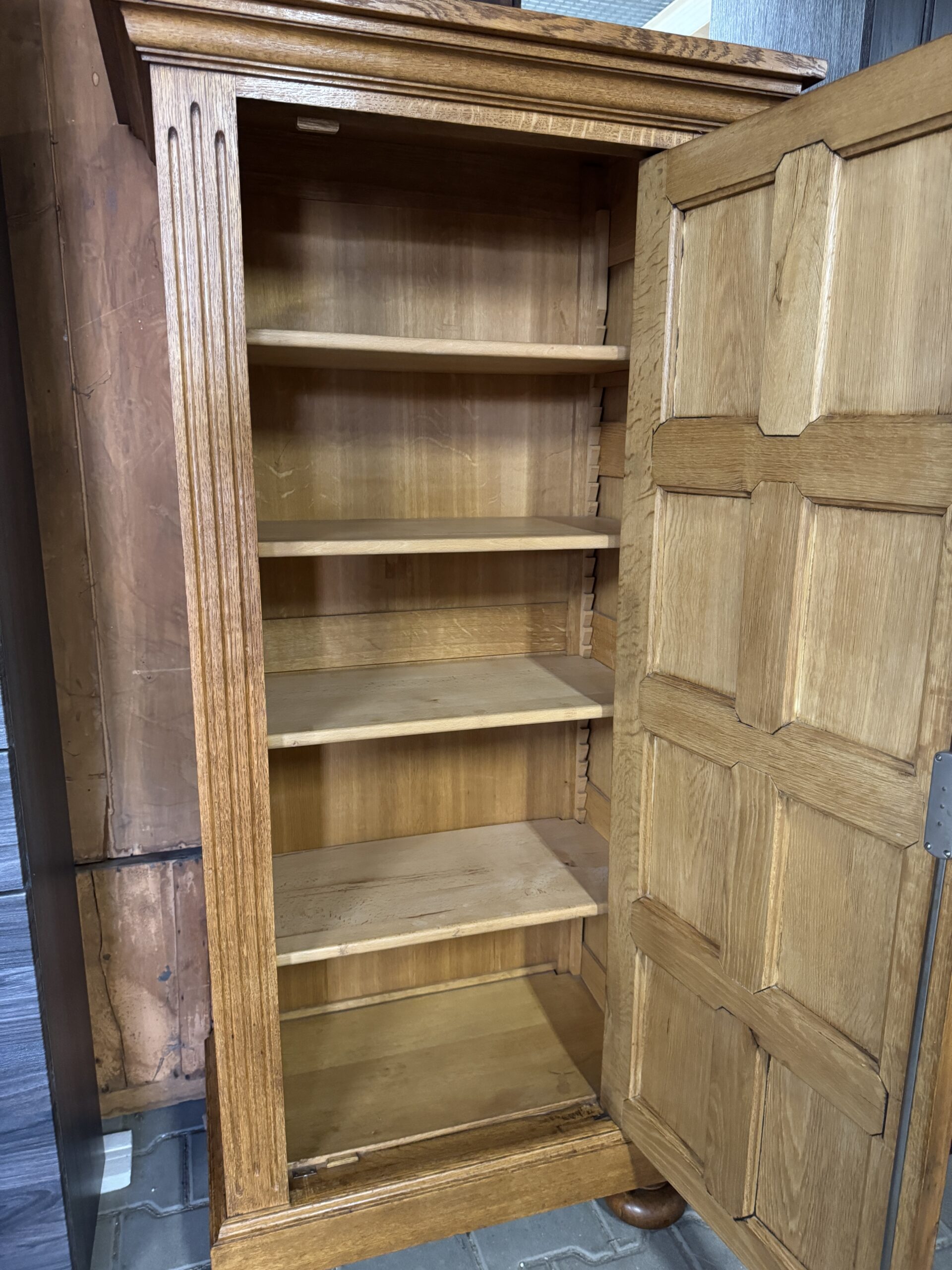 Mebel robiony w całości z litego drewna dębowego w jasnym kolorze.