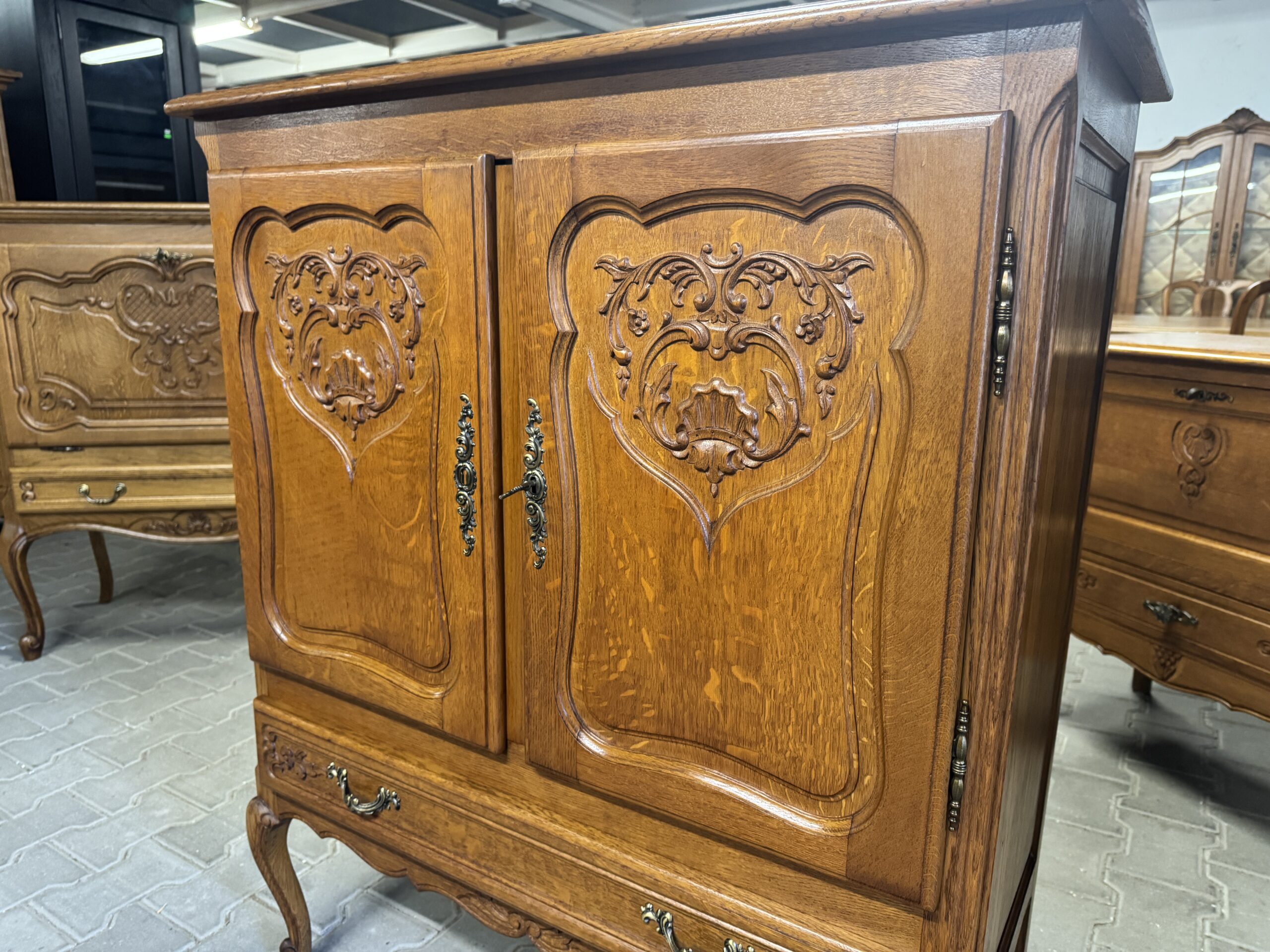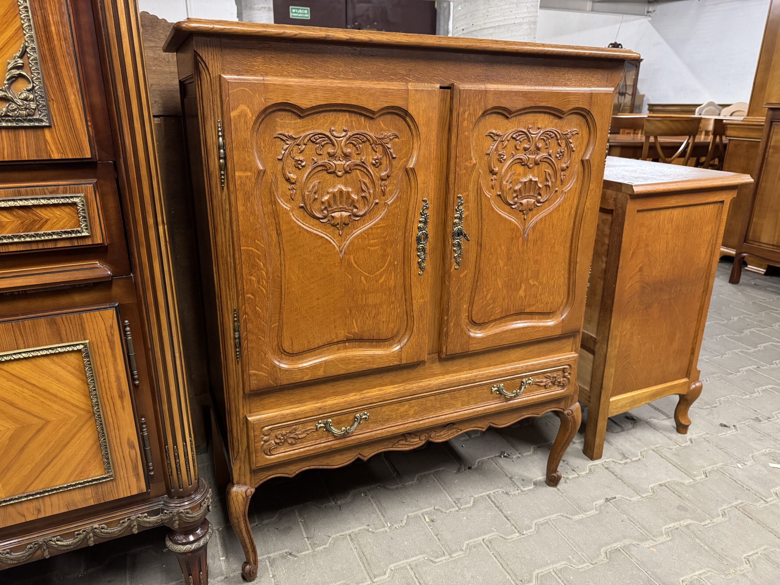 Mebel robiony z drewna dębowego.