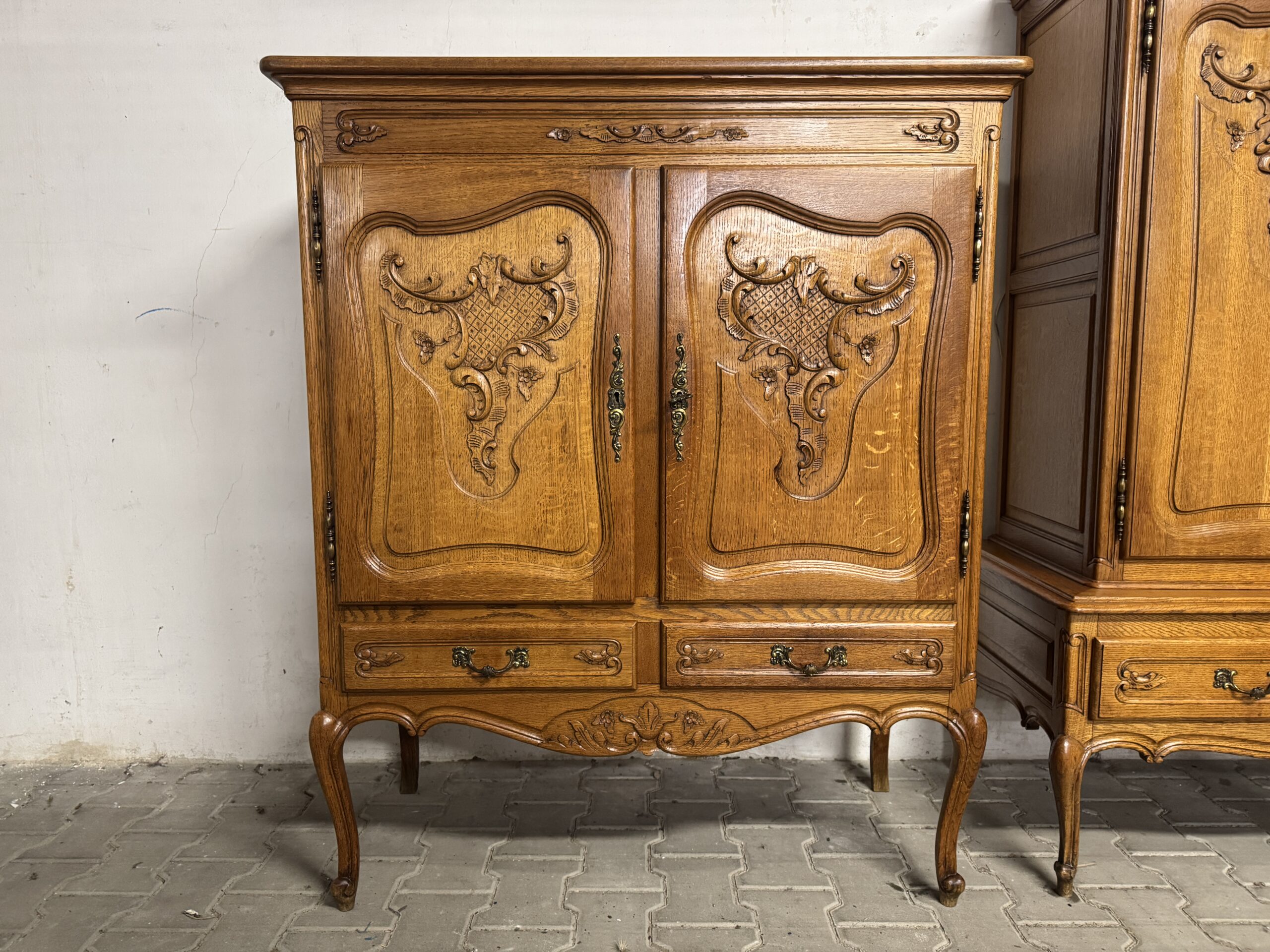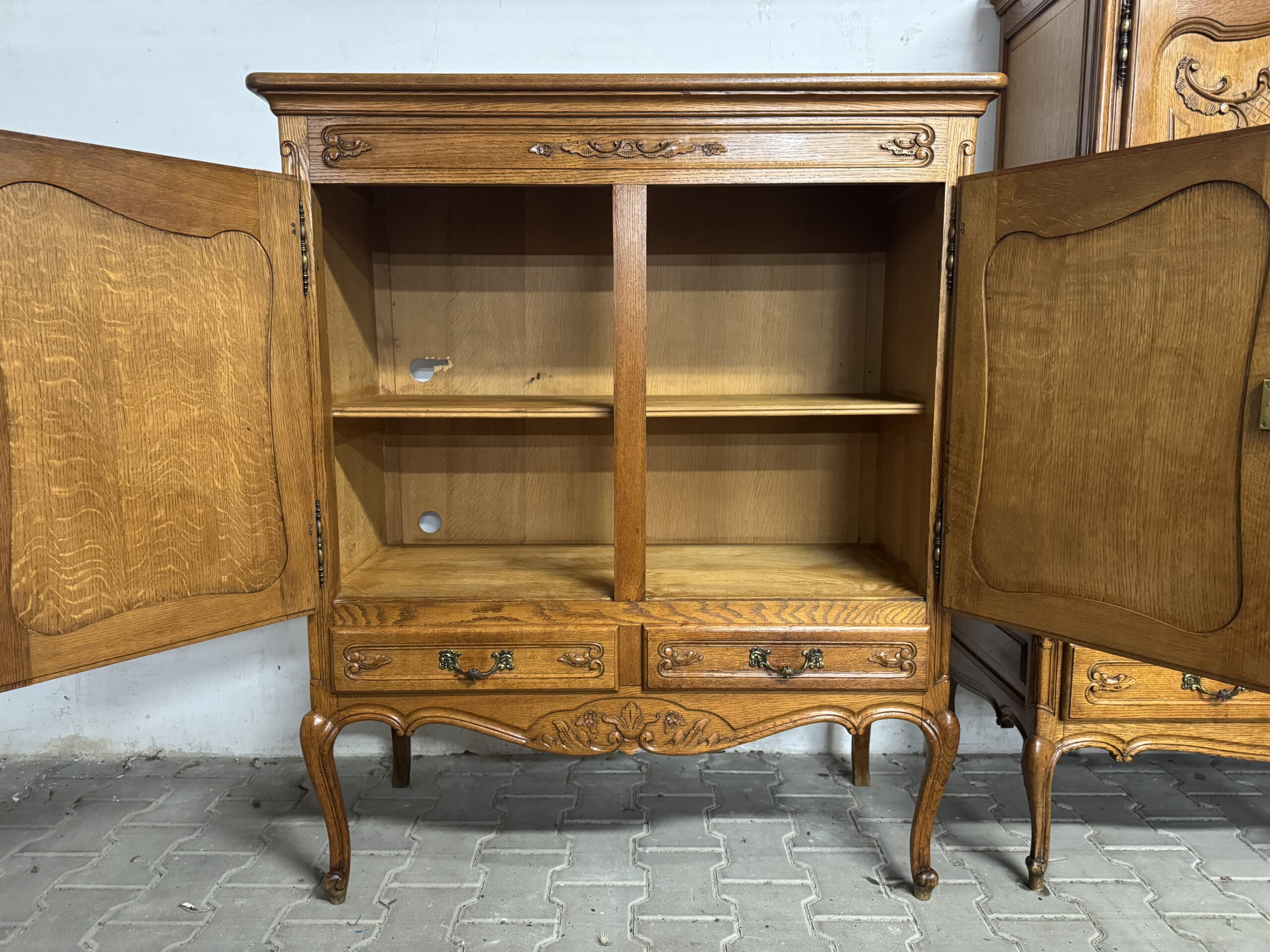 Bogate ozdobne rzeźbienia oraz stylowe okucia szczególnie wyróżniają ten zestaw.