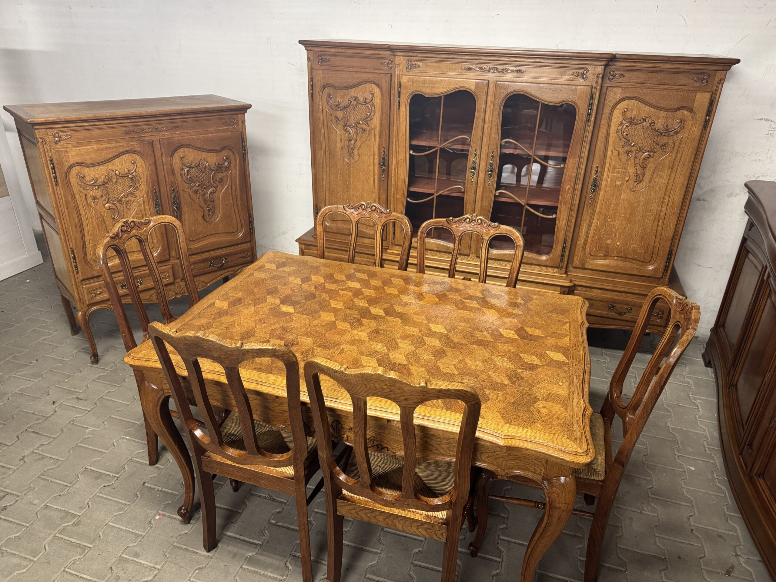 Cena za komplet (witryna, bufet, rozkładany stół i 6 krzeseł).