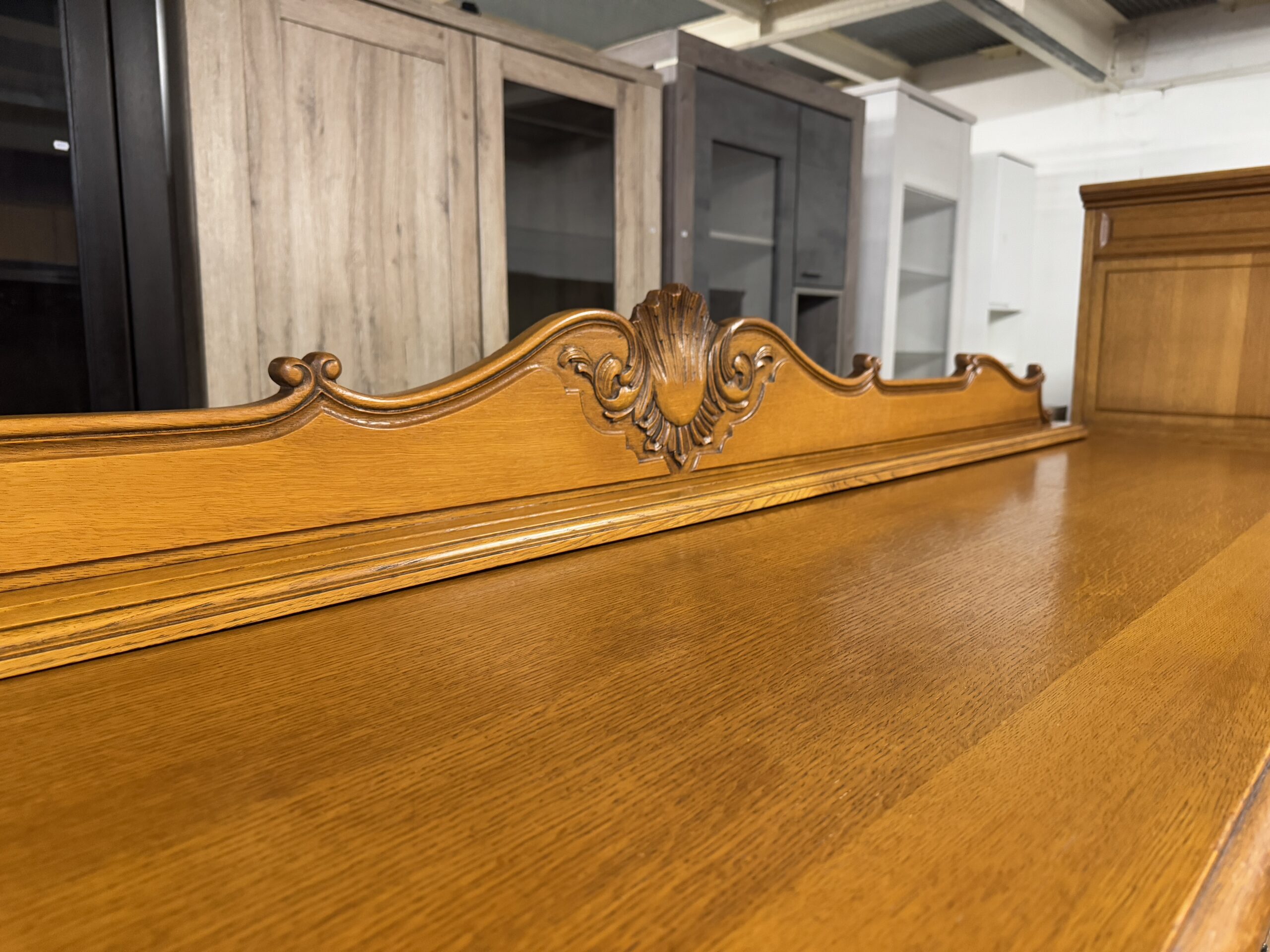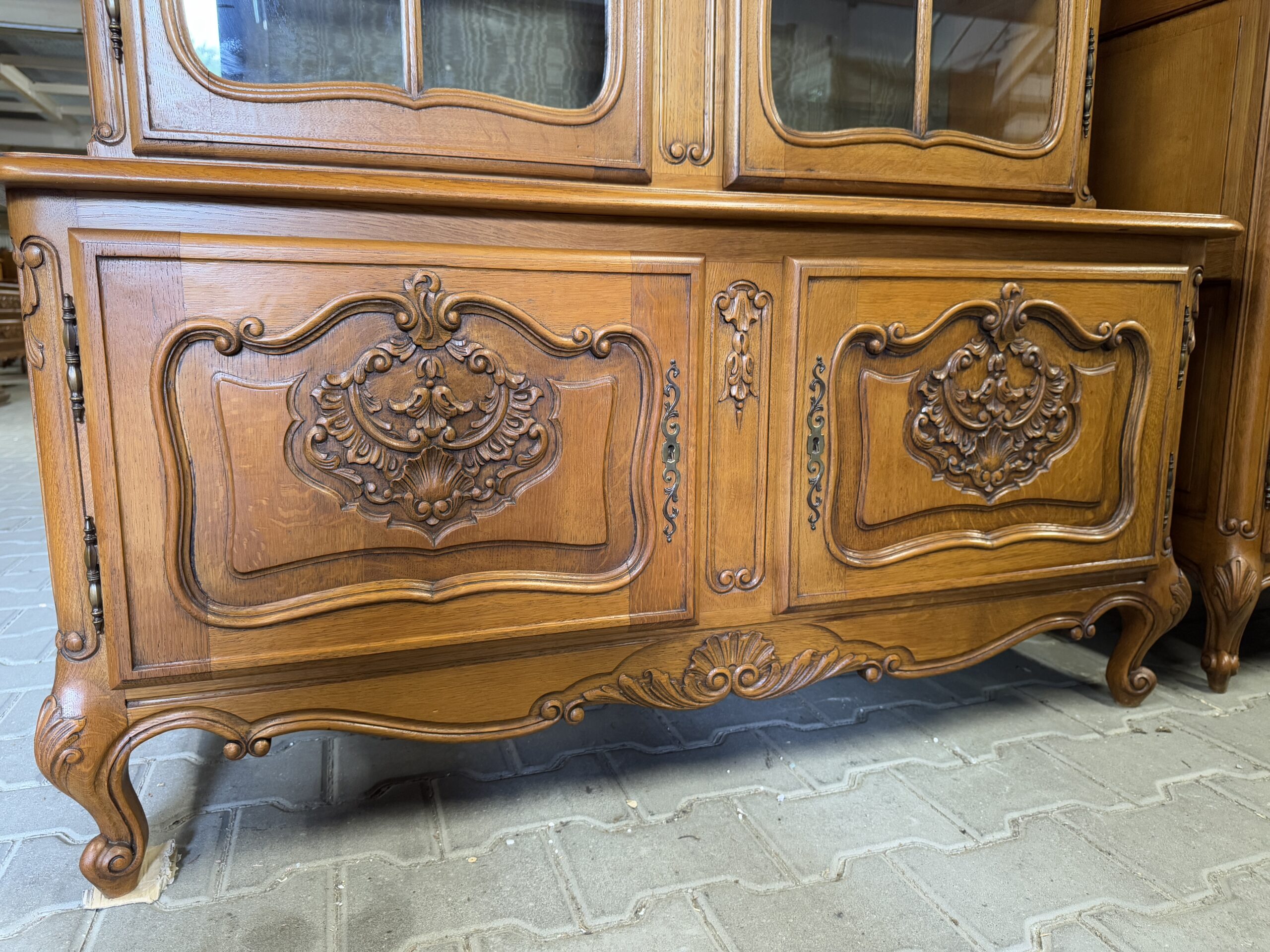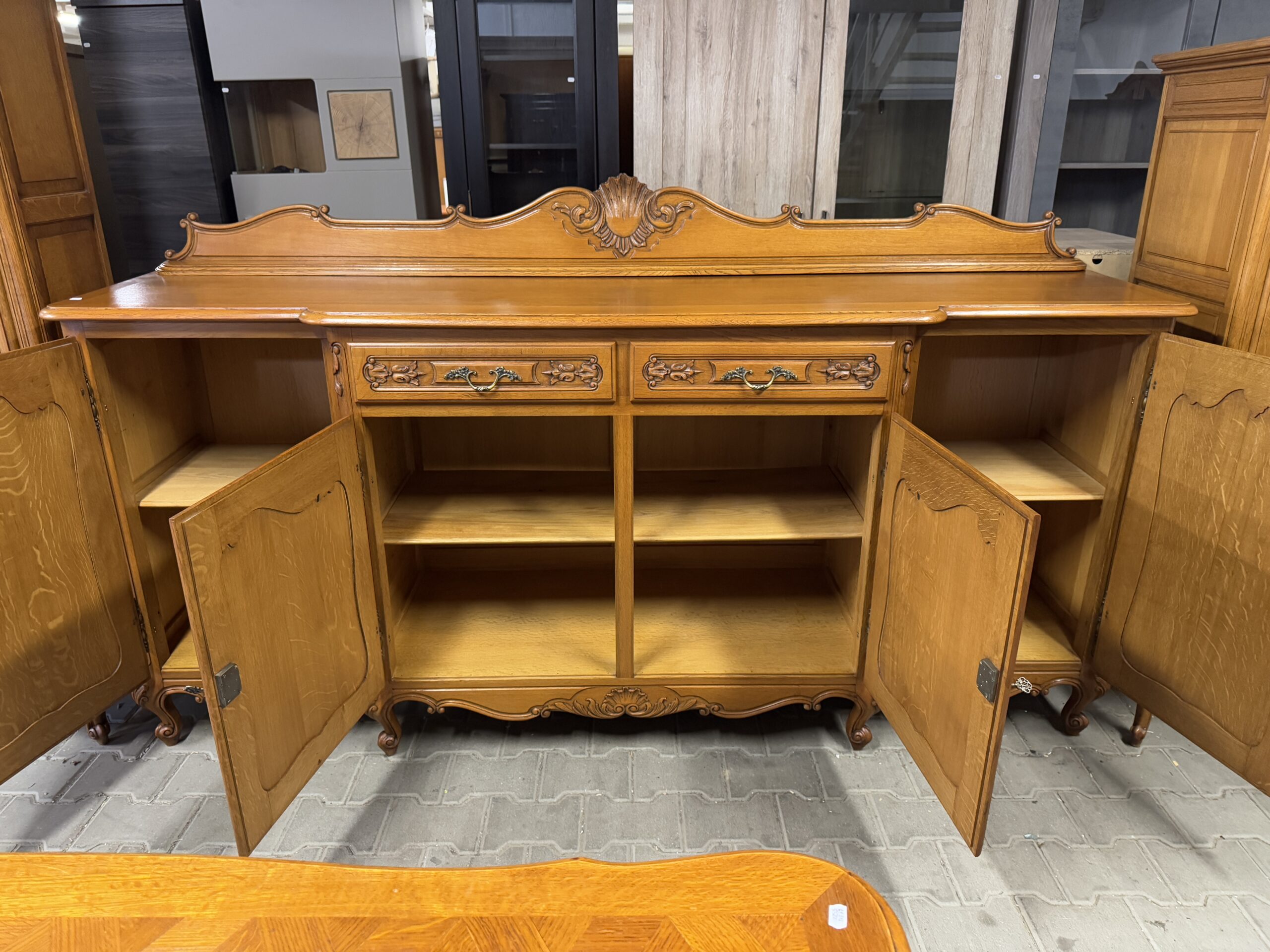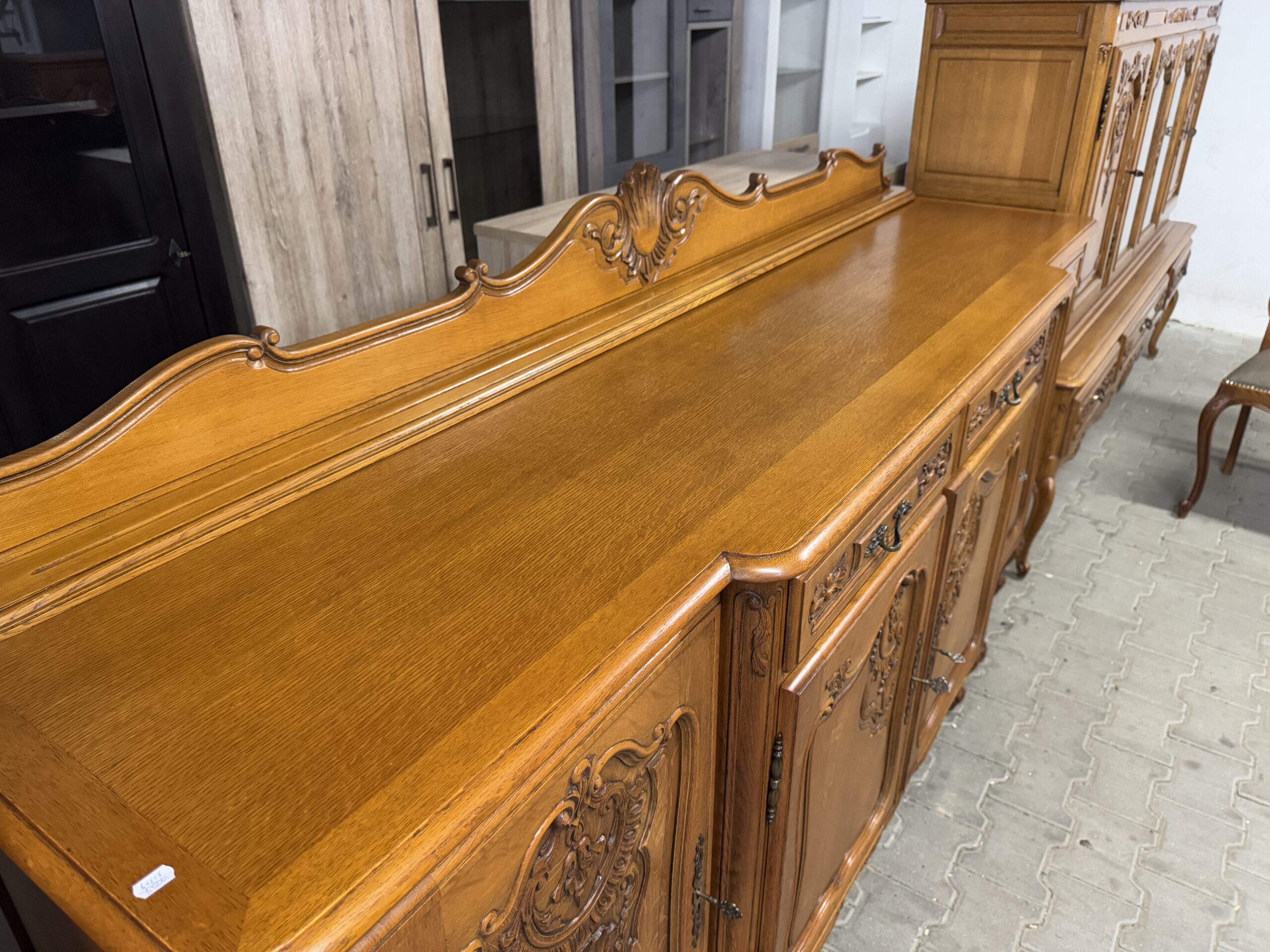 Ręcznie robione oryginalne rzeźbienia oraz mosiężne okucia tworzą wyjątkowy wystrój kompletu.
