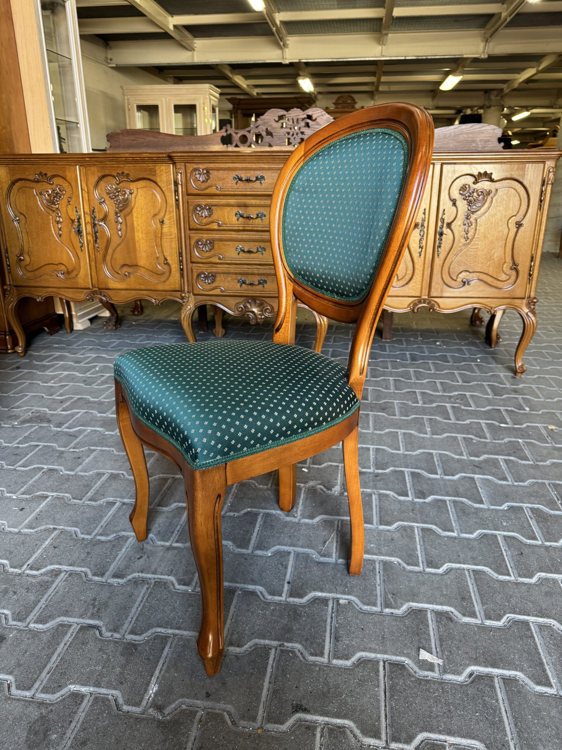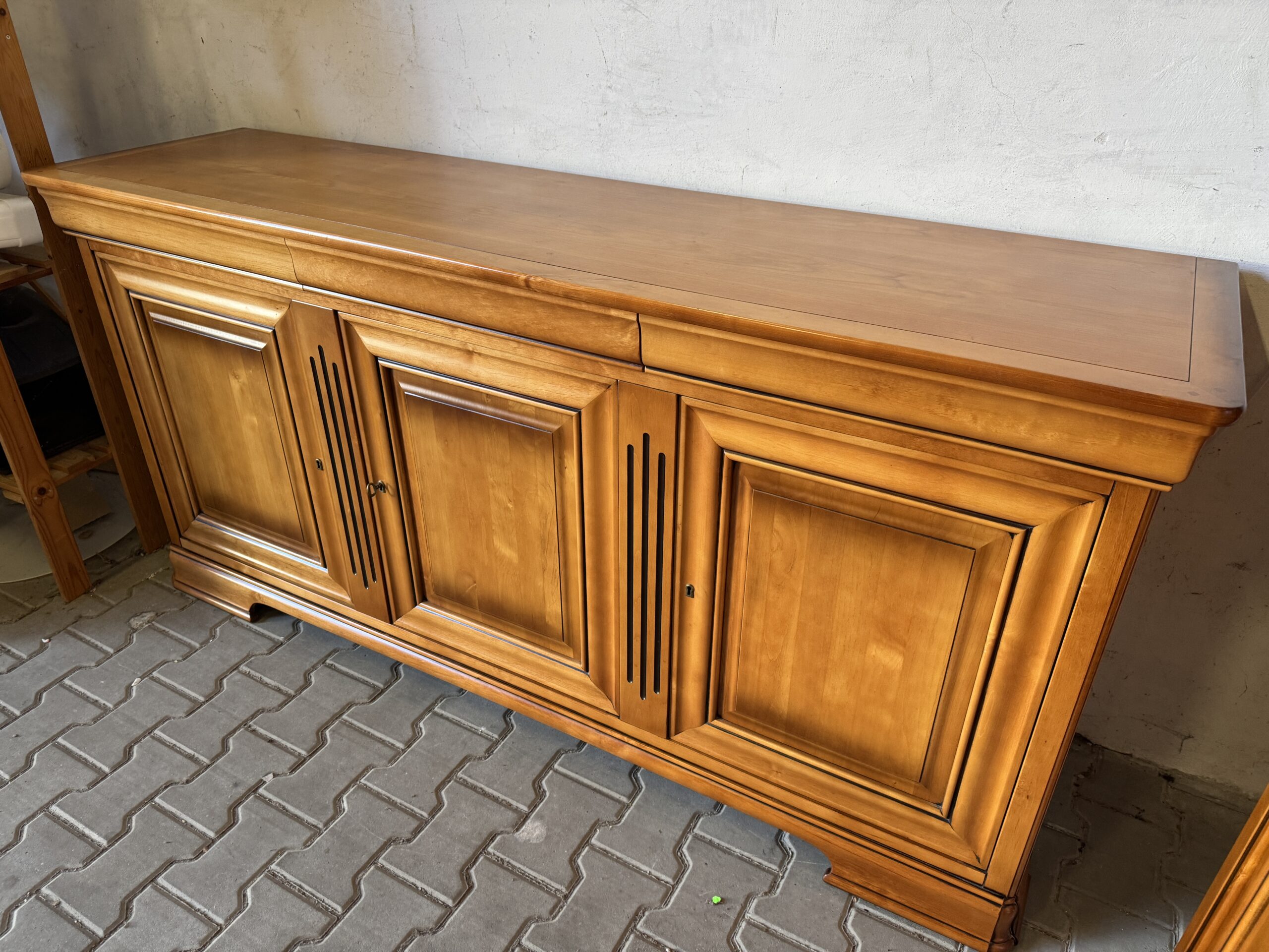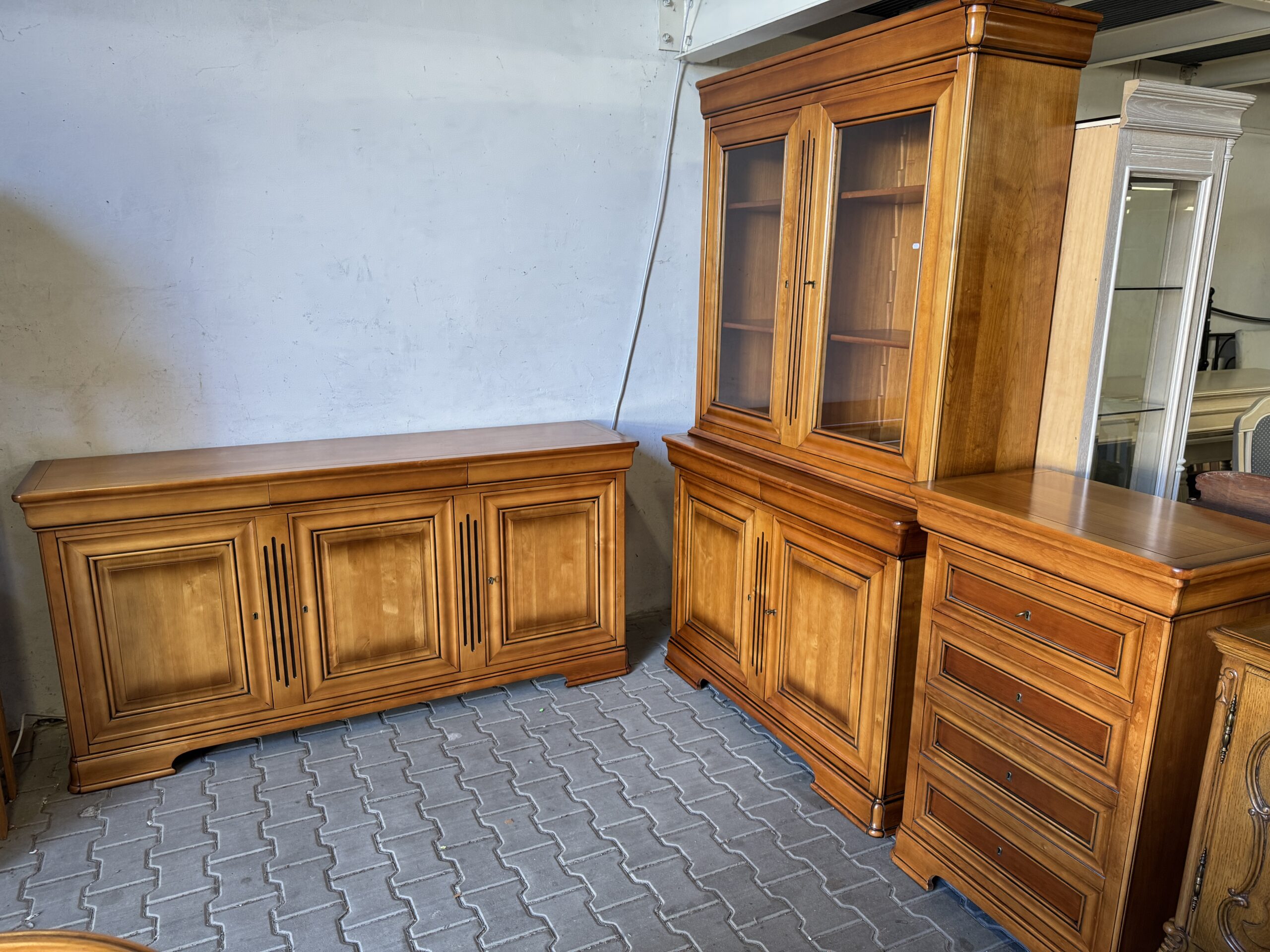 Cena za komplet: komoda, witryna, szafka, stół, sześć krzeseł.