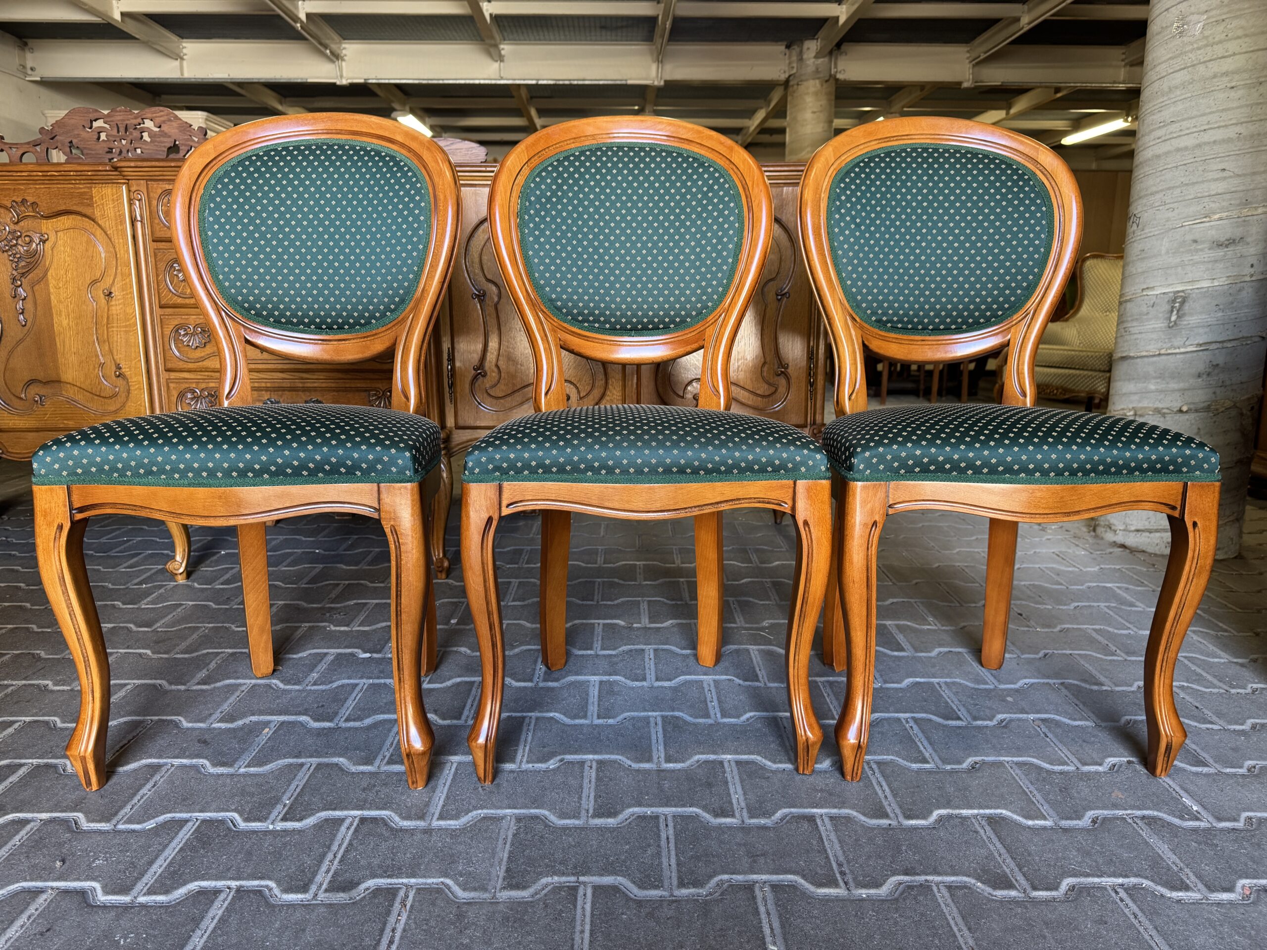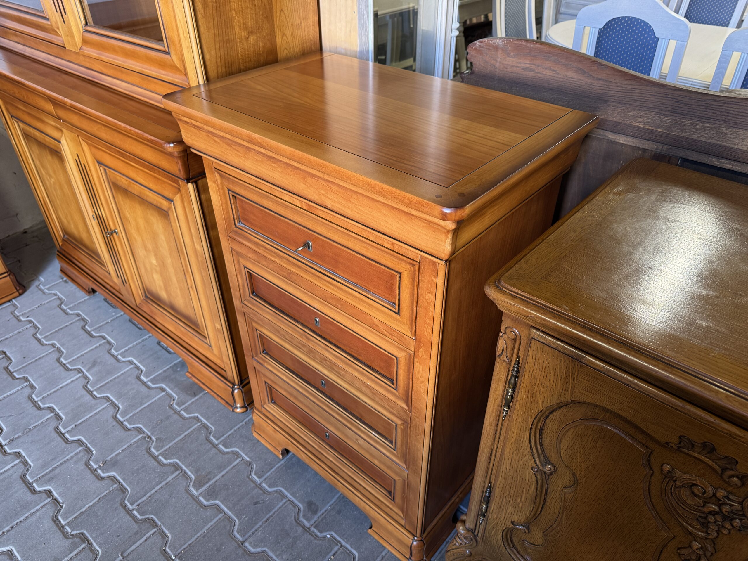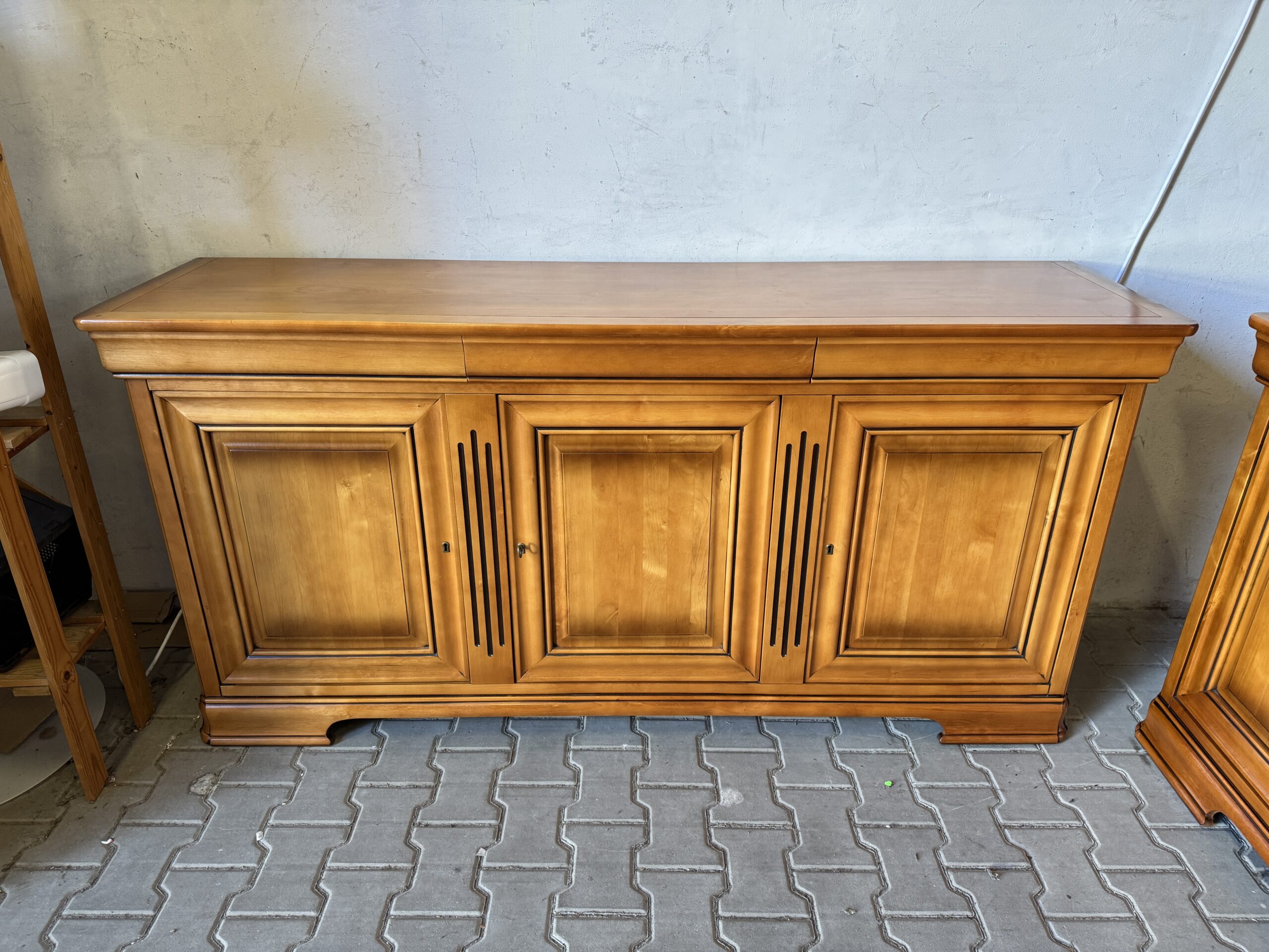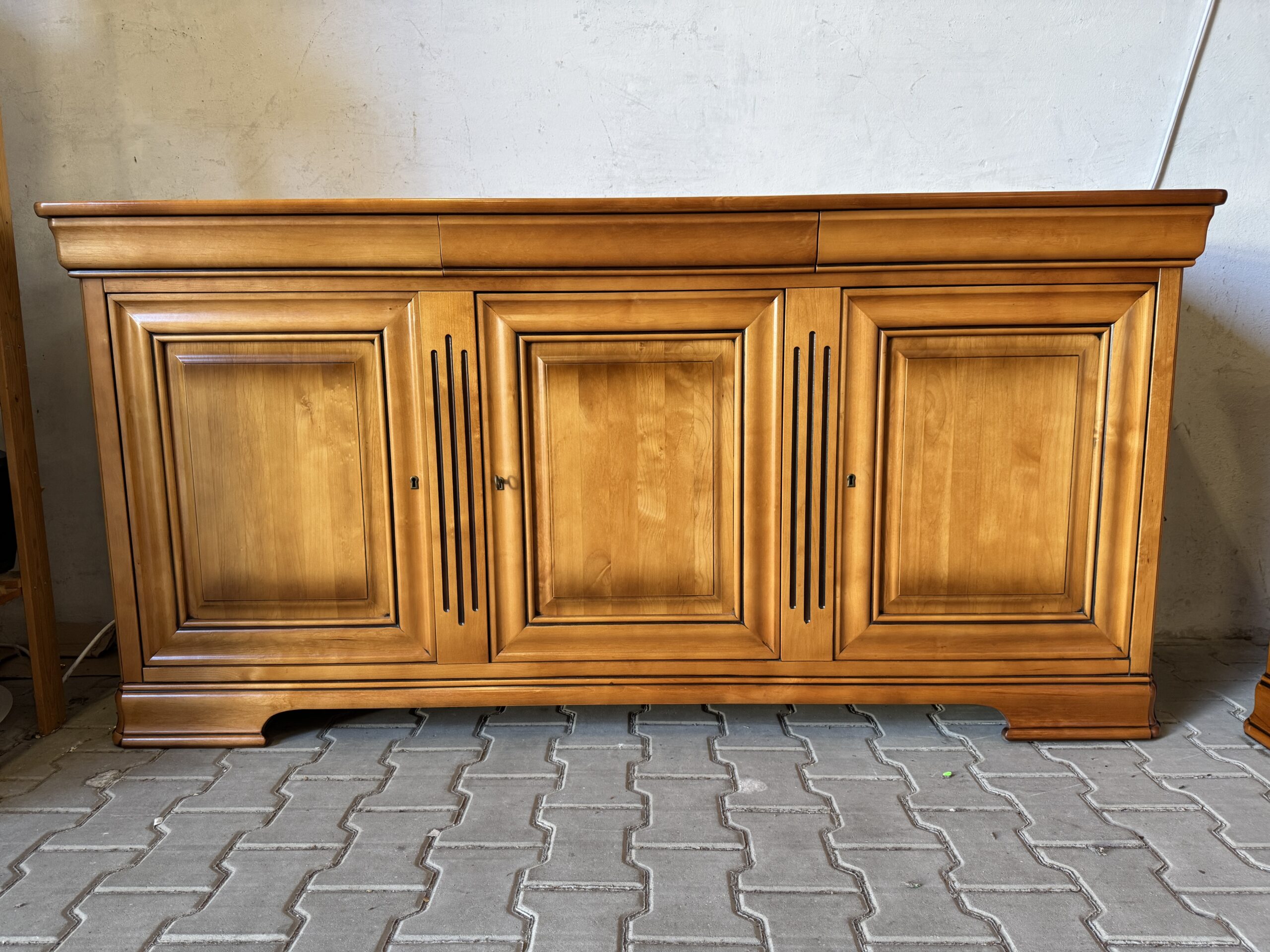 Cena za komplet: komoda, witryna, szafka, stół, sześć krzeseł.