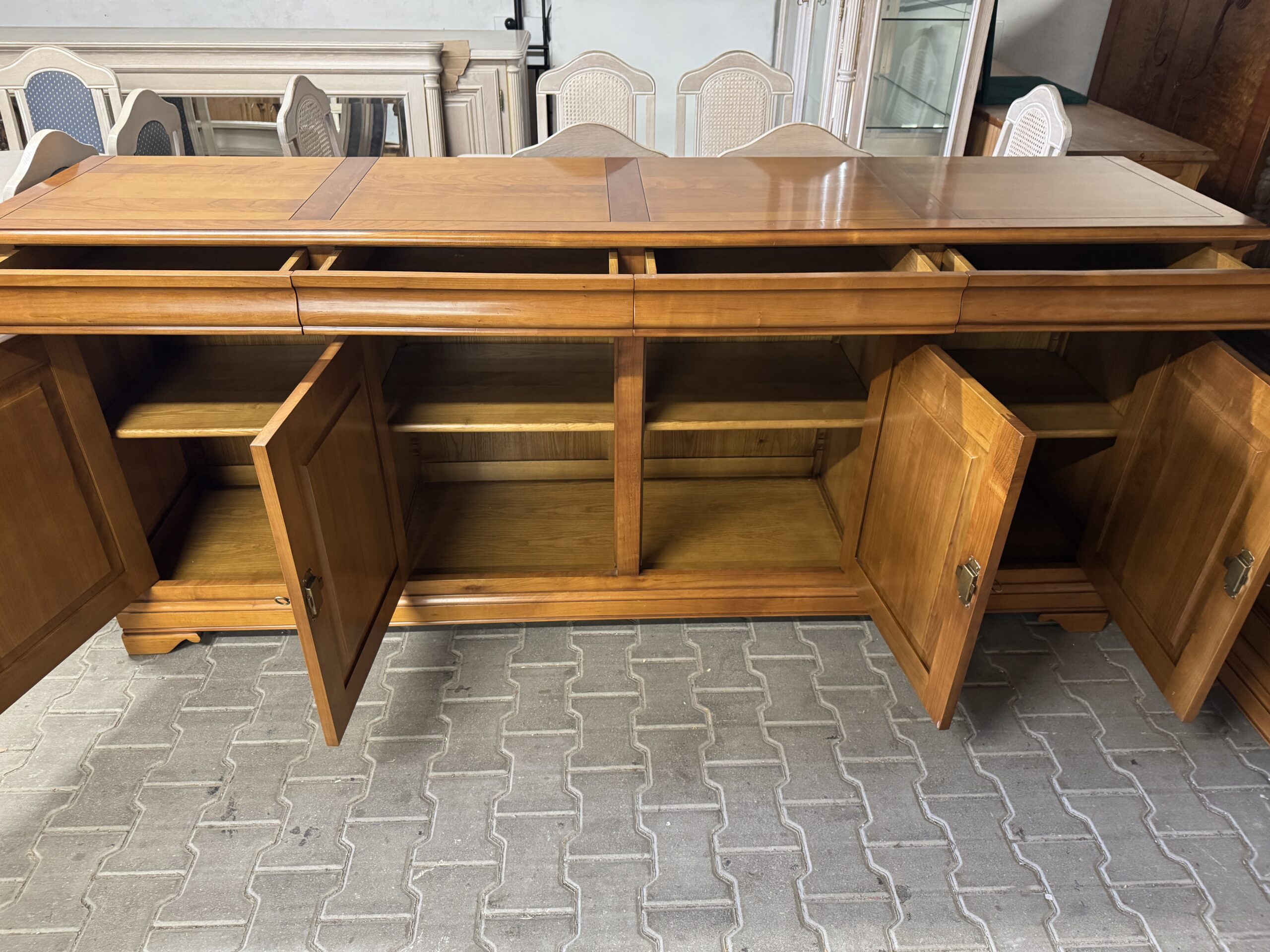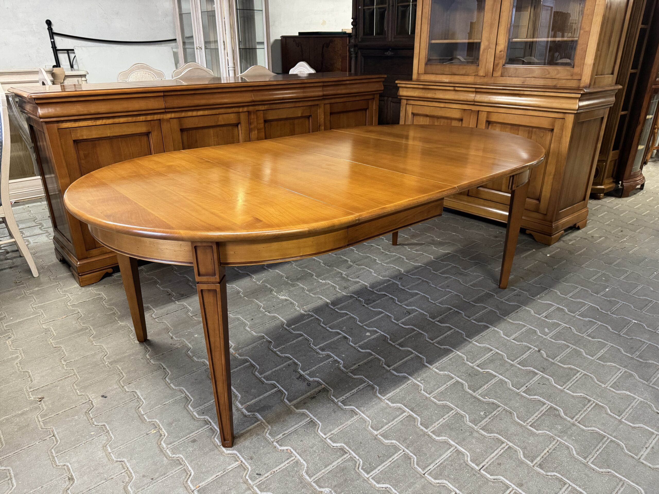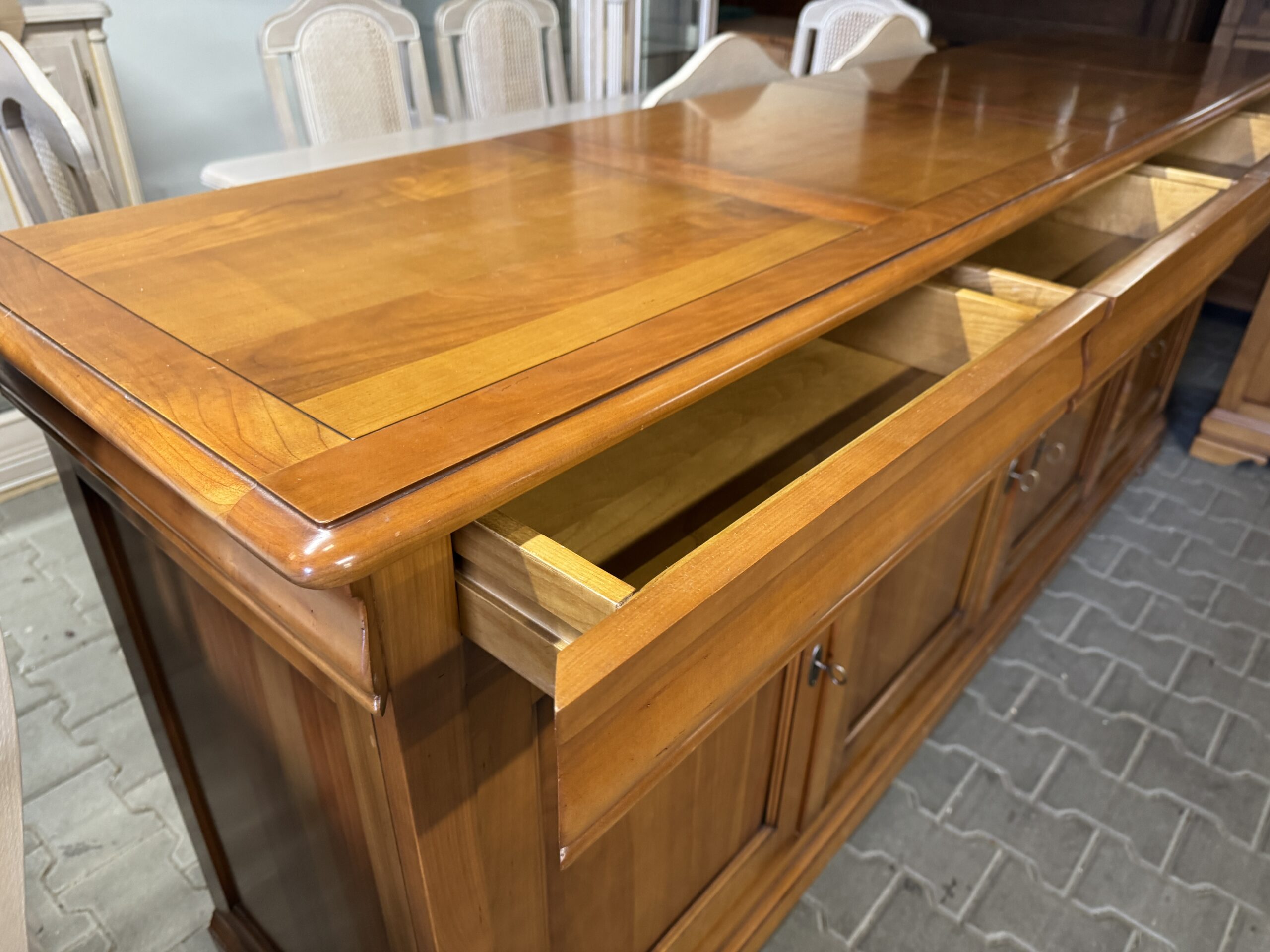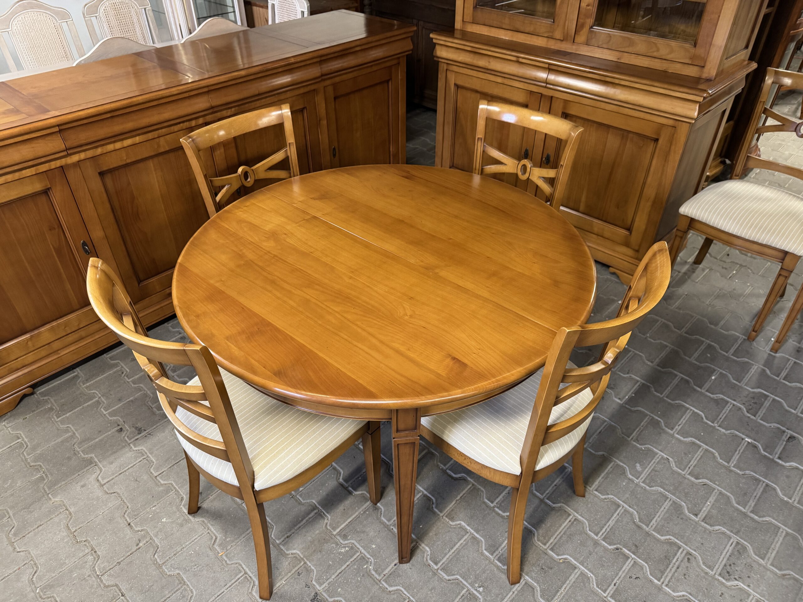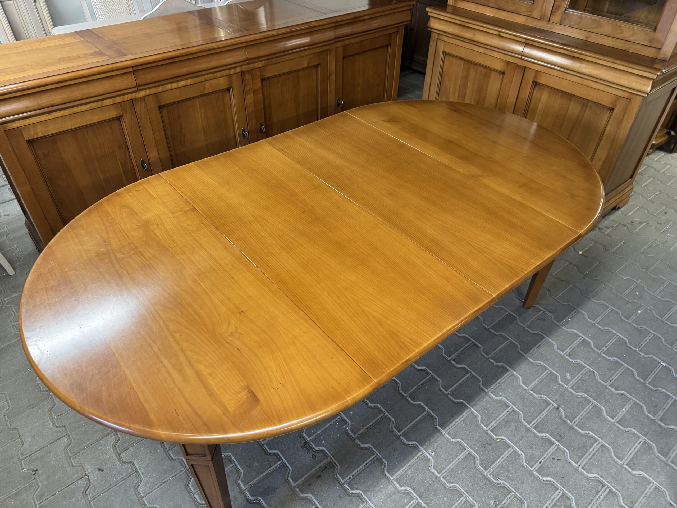 Meble robione z drewna wiśniowego, lakierowanego.