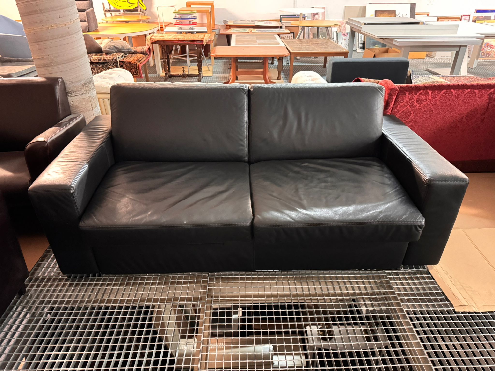 Kanapa ze skóry naturalnej w czarnym kolorze.