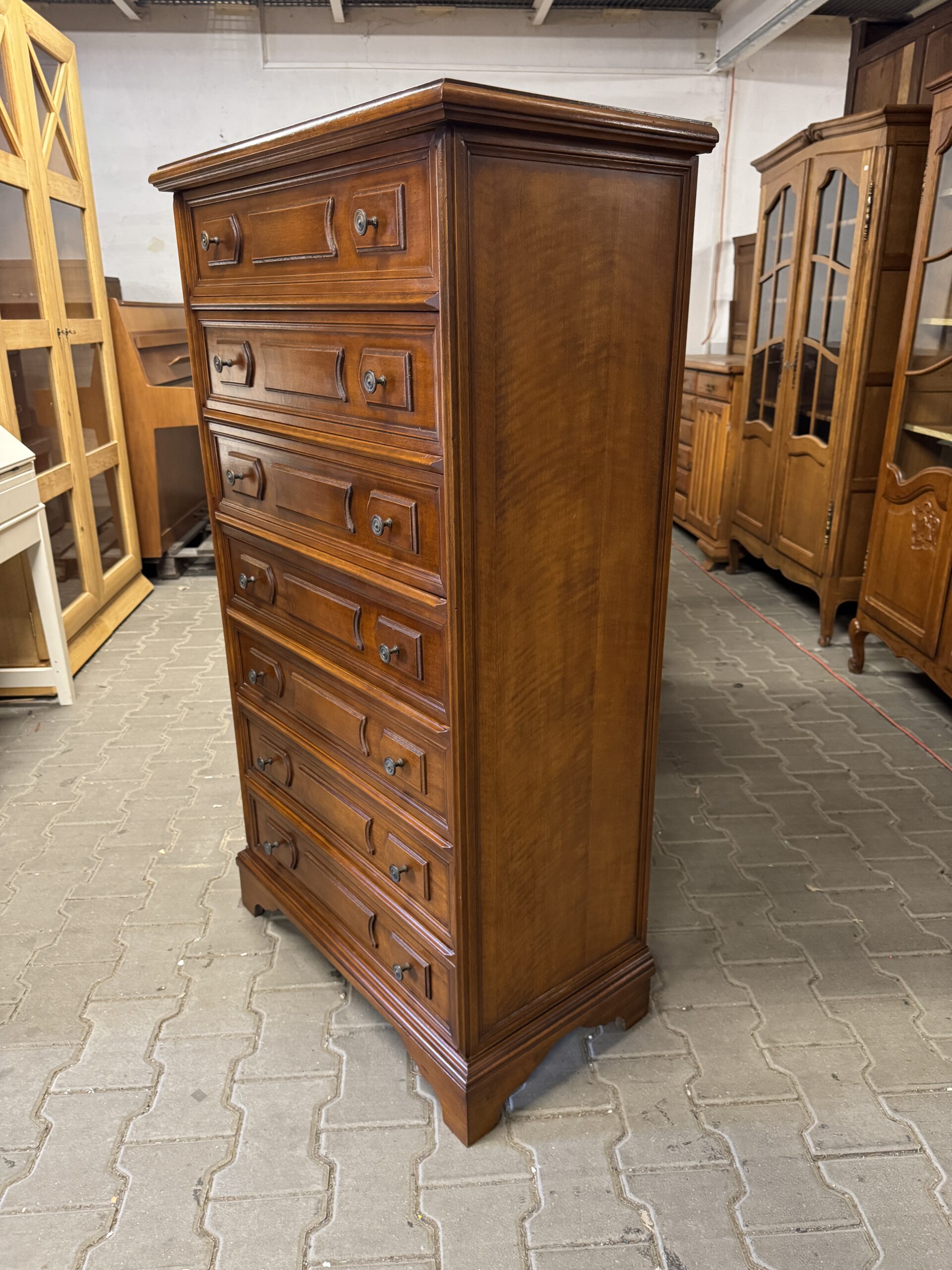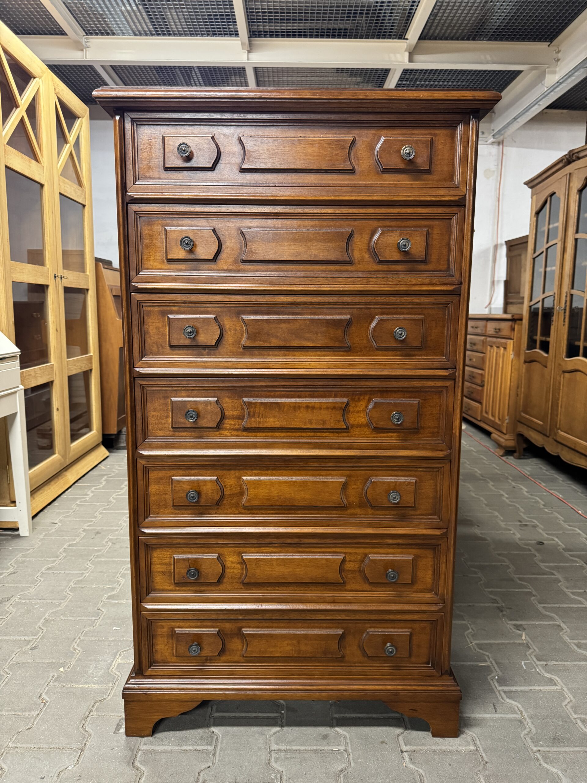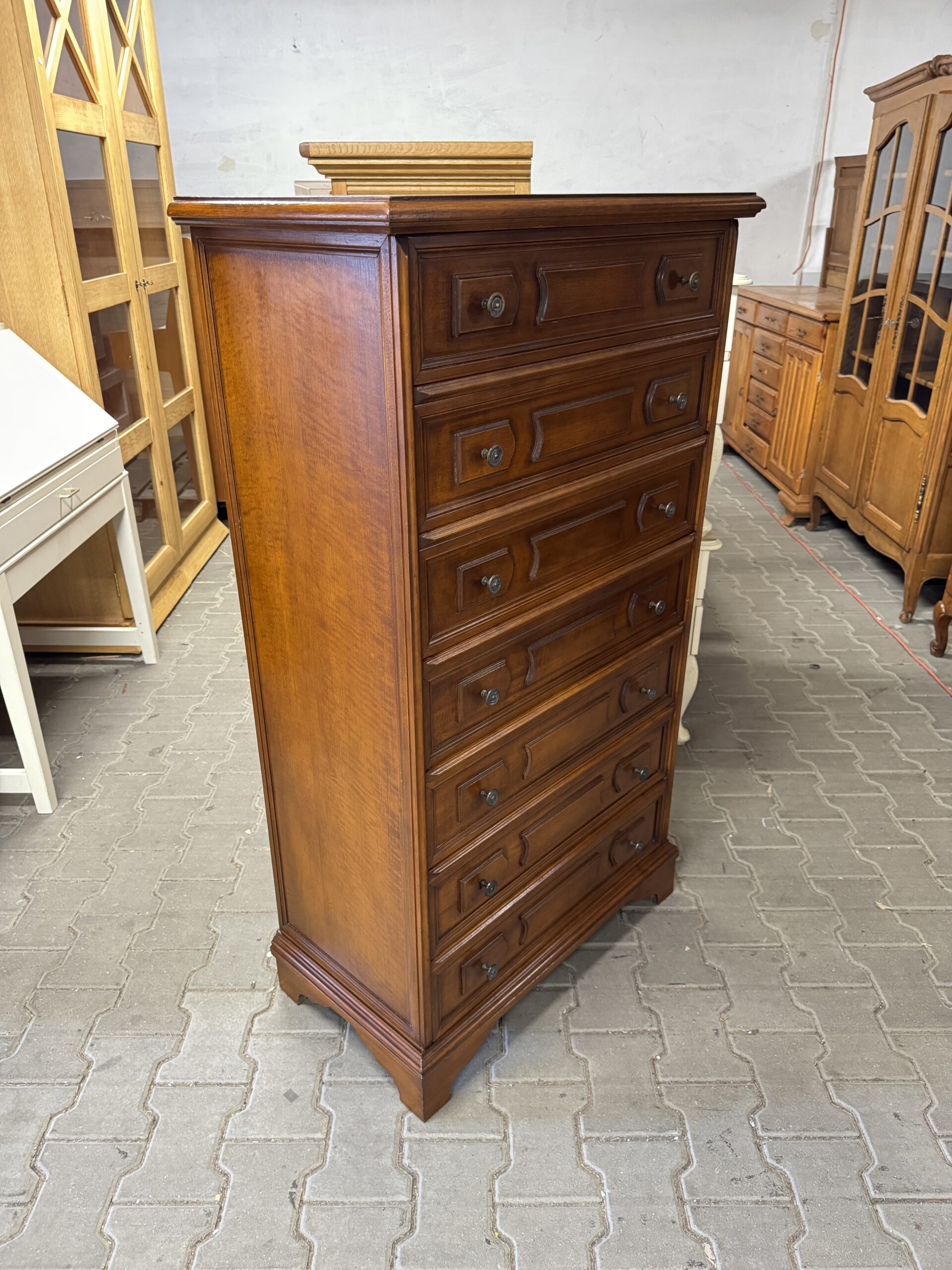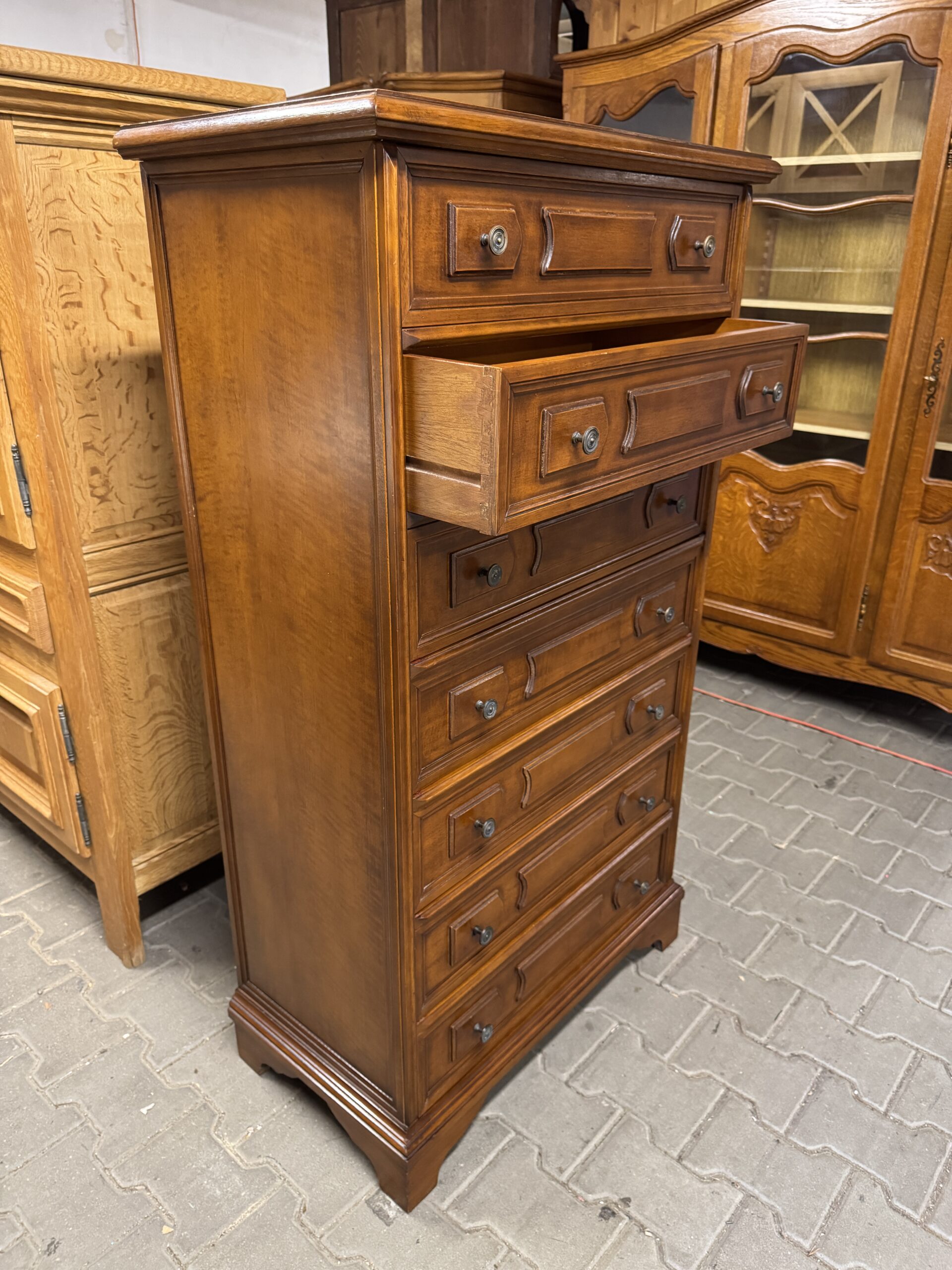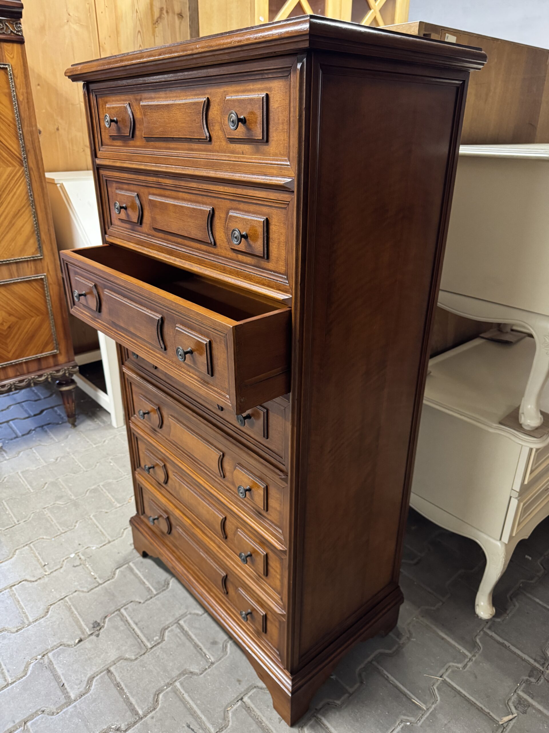 Stylowa komoda na siedem szuflad.