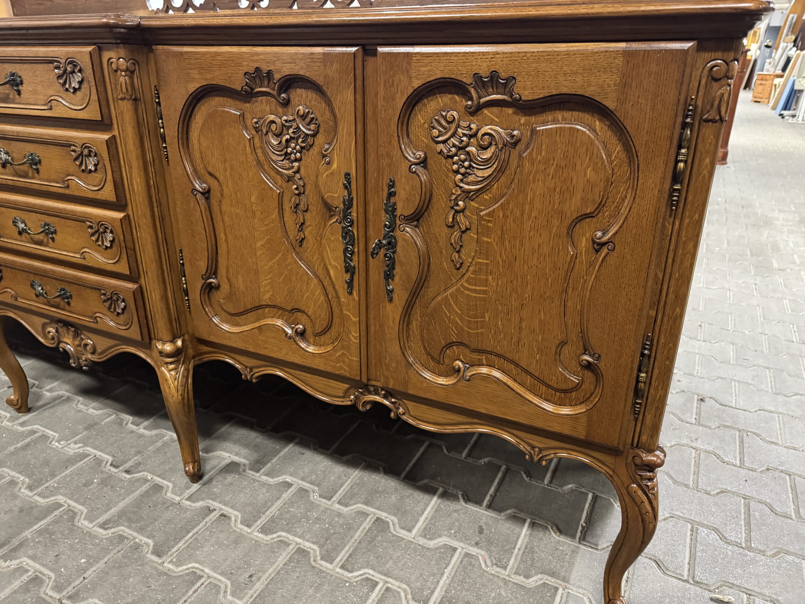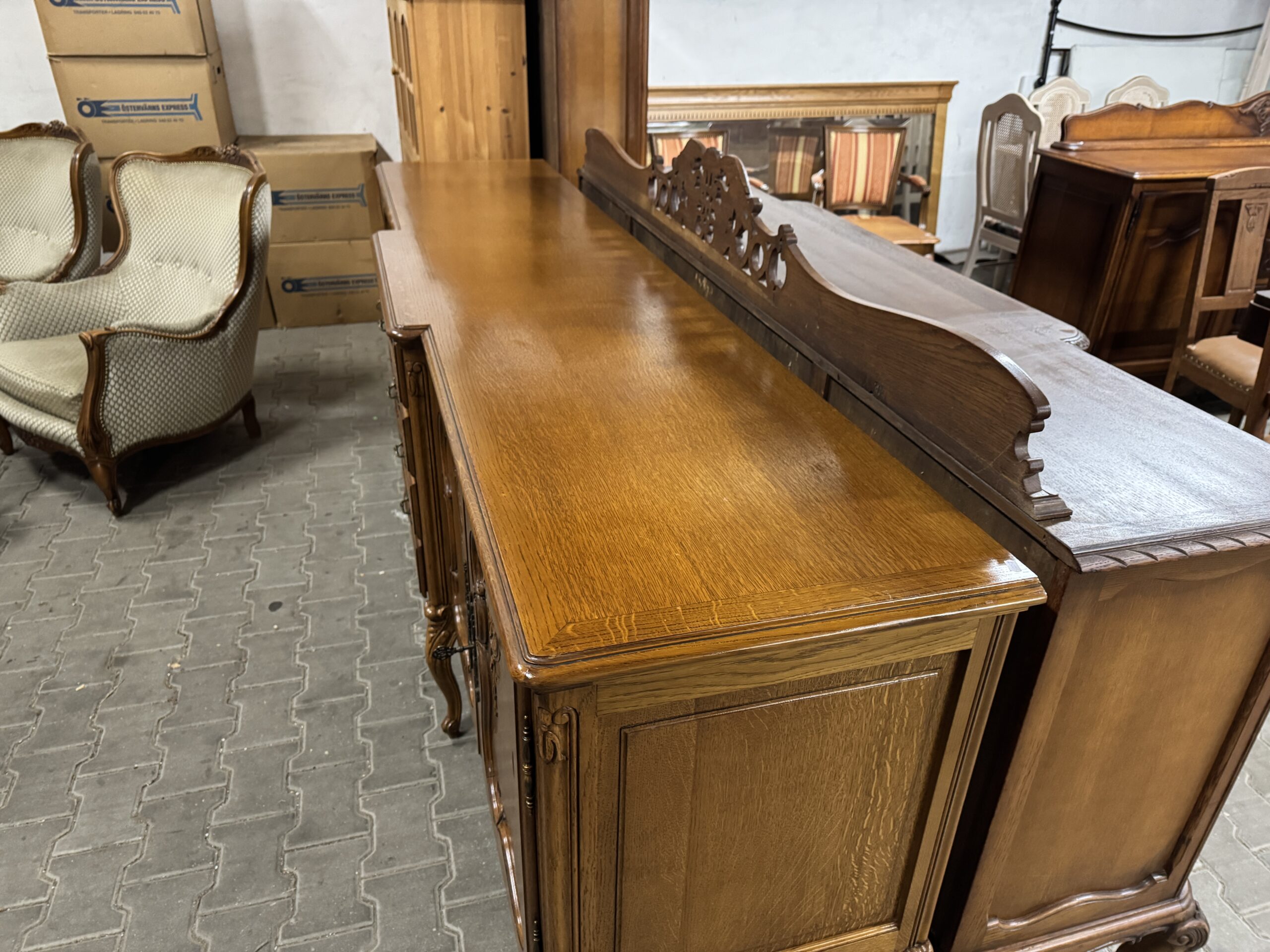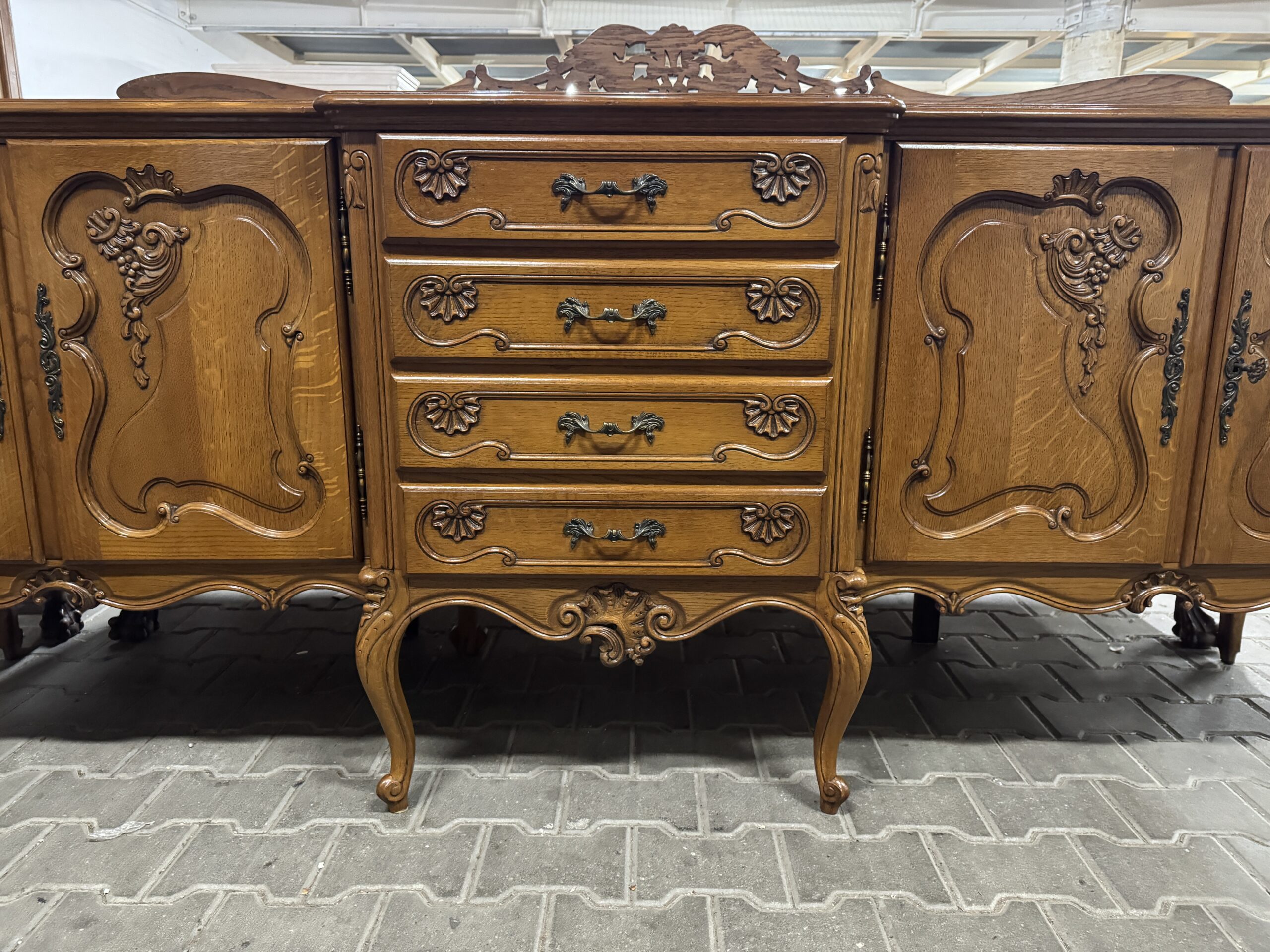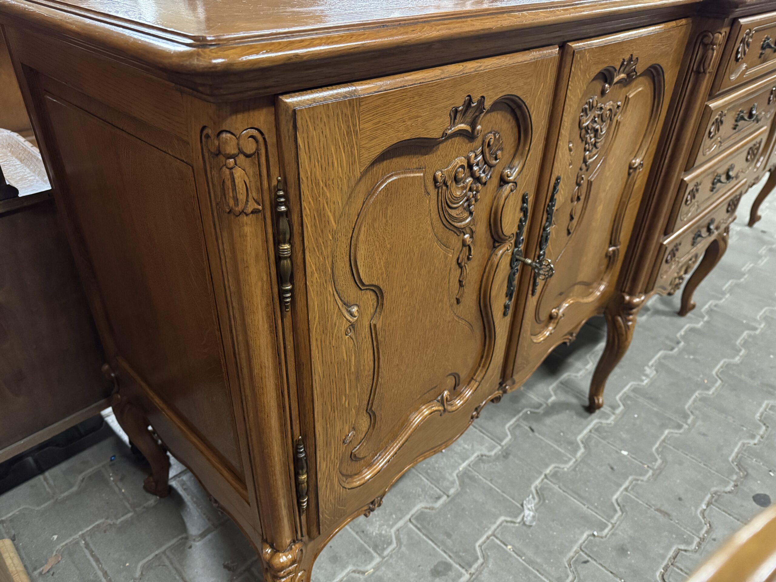 Stylowe rzeźbienia oraz oryginalne okucia tworzą wyjątkowy wystrój mebla.