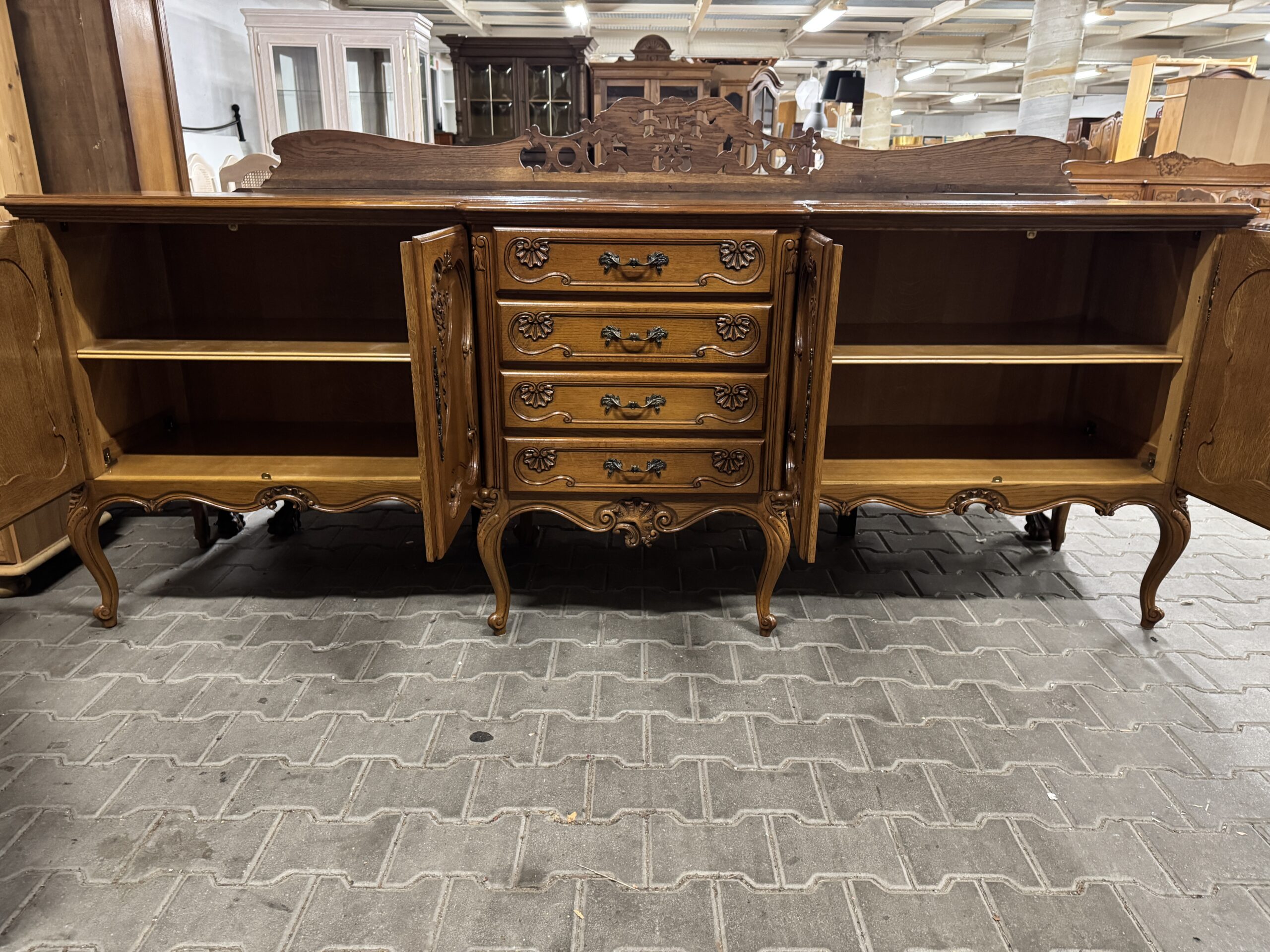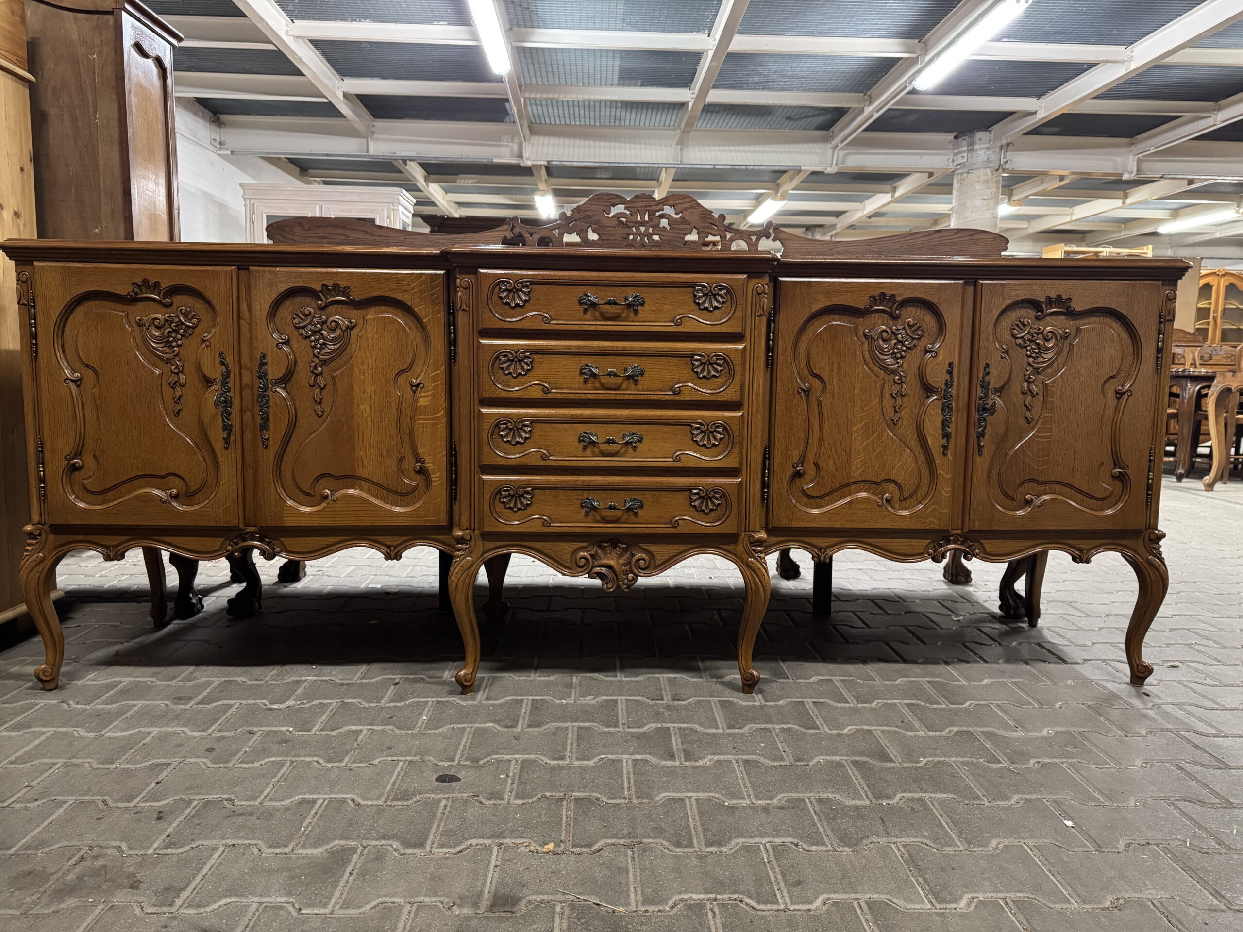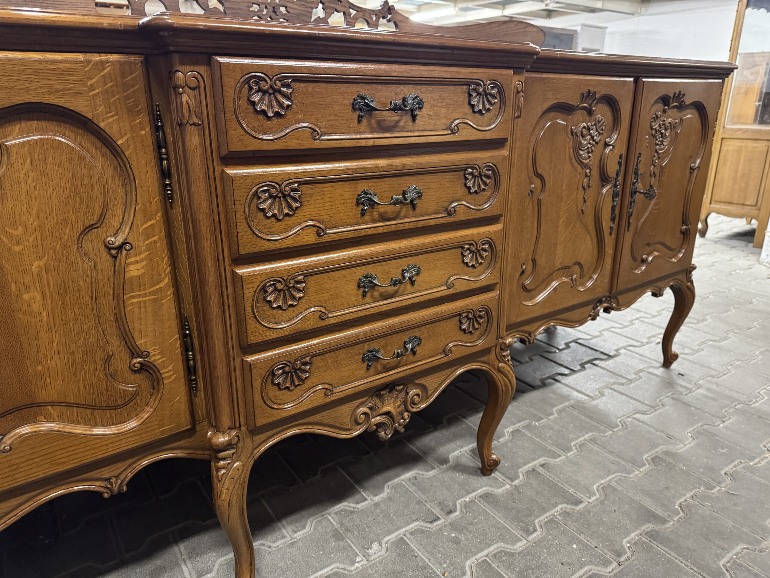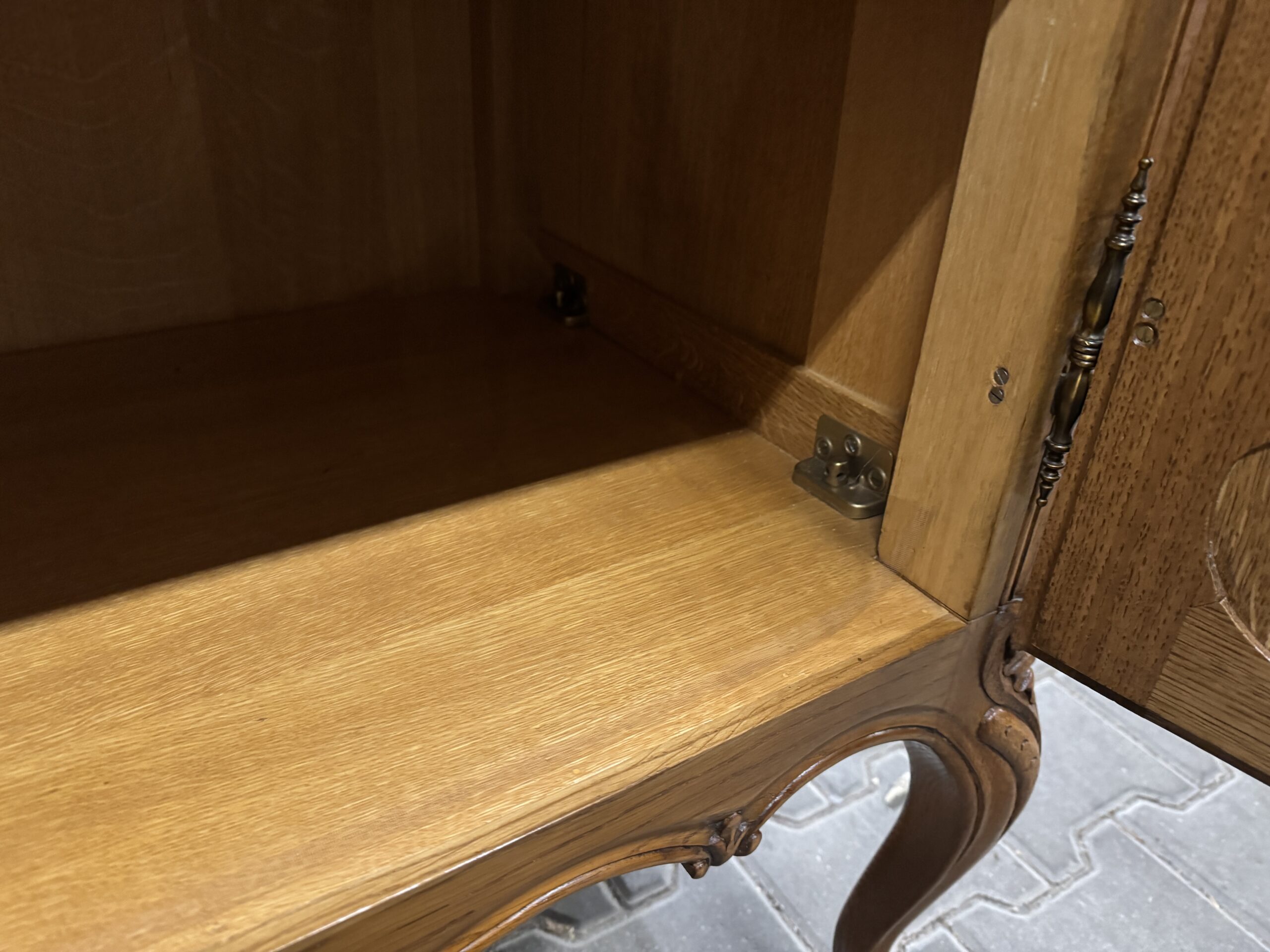 Stylowe rzeźbienia oraz oryginalne okucia tworzą wyjątkowy wystrój mebla.