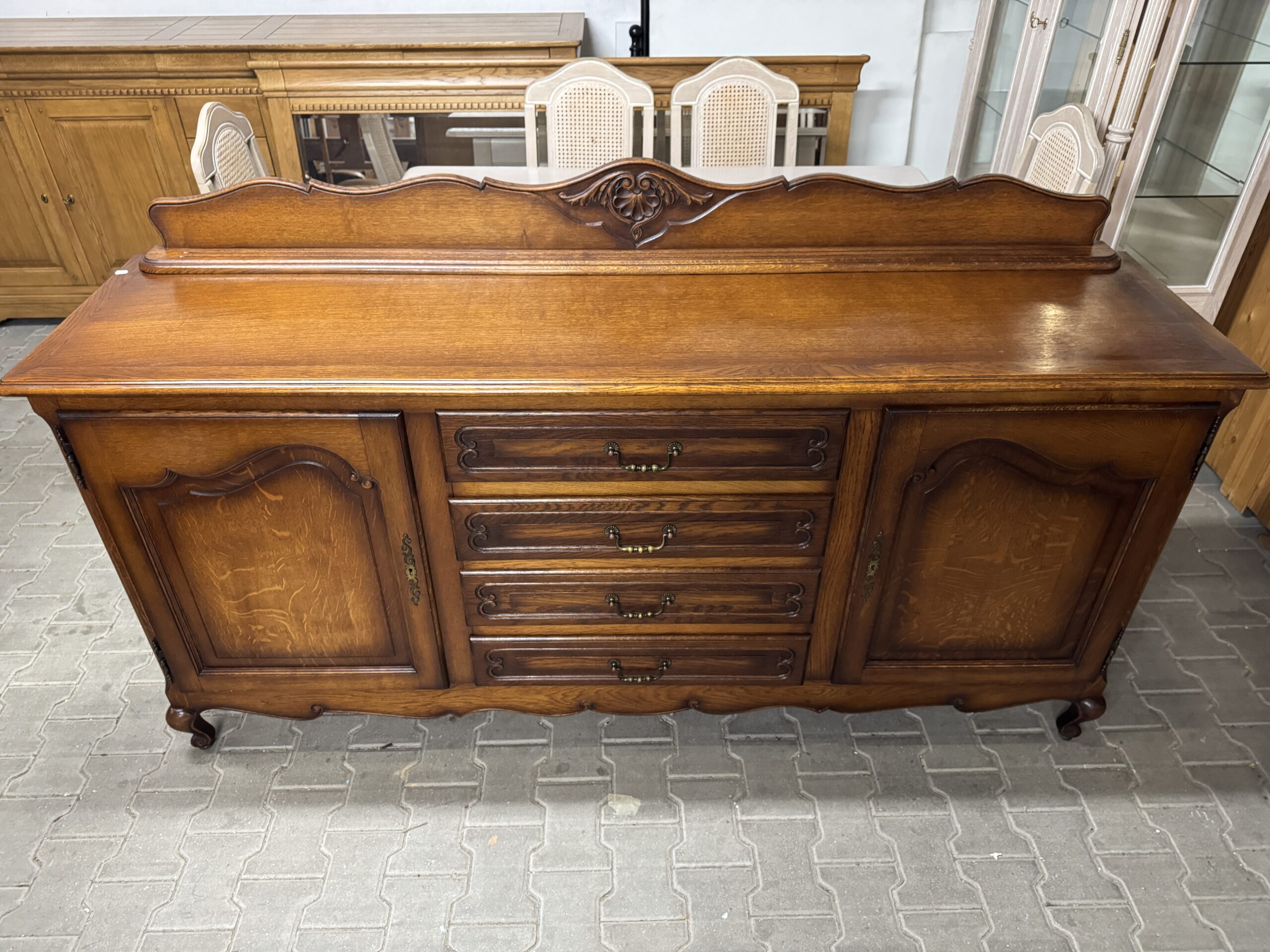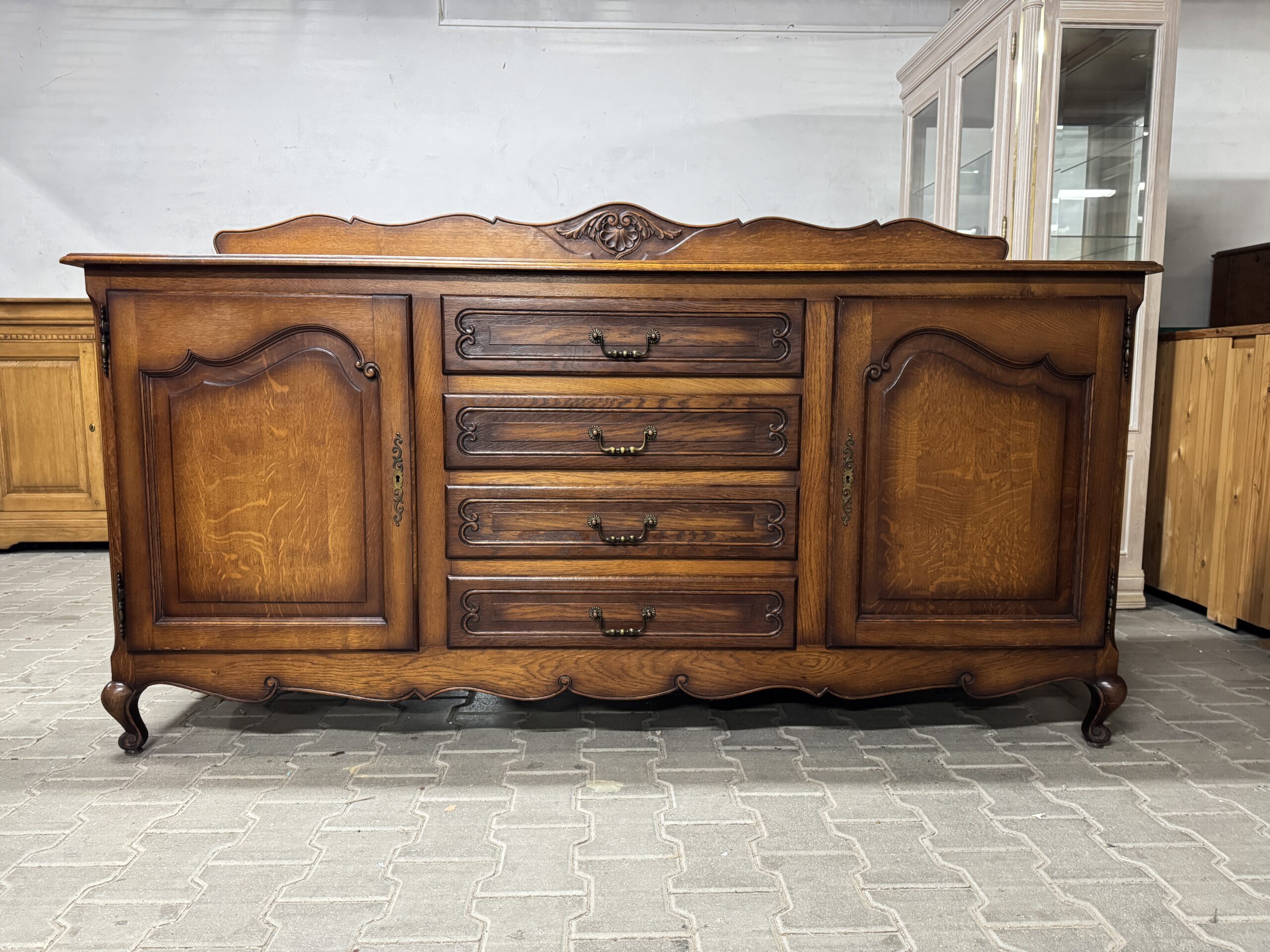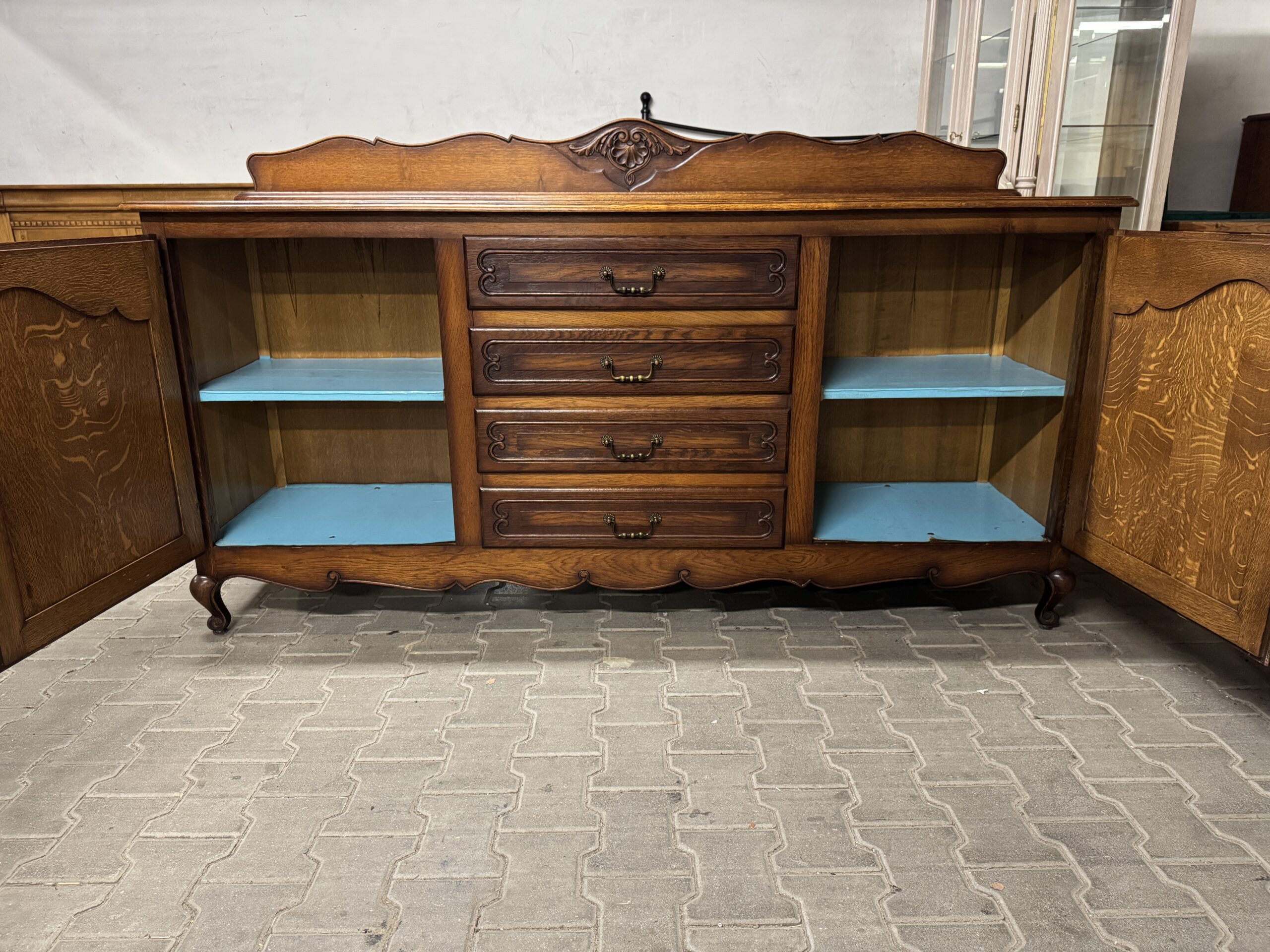 Mebel wyposażony w cztery pojemne szuflady w środku oraz półki.
