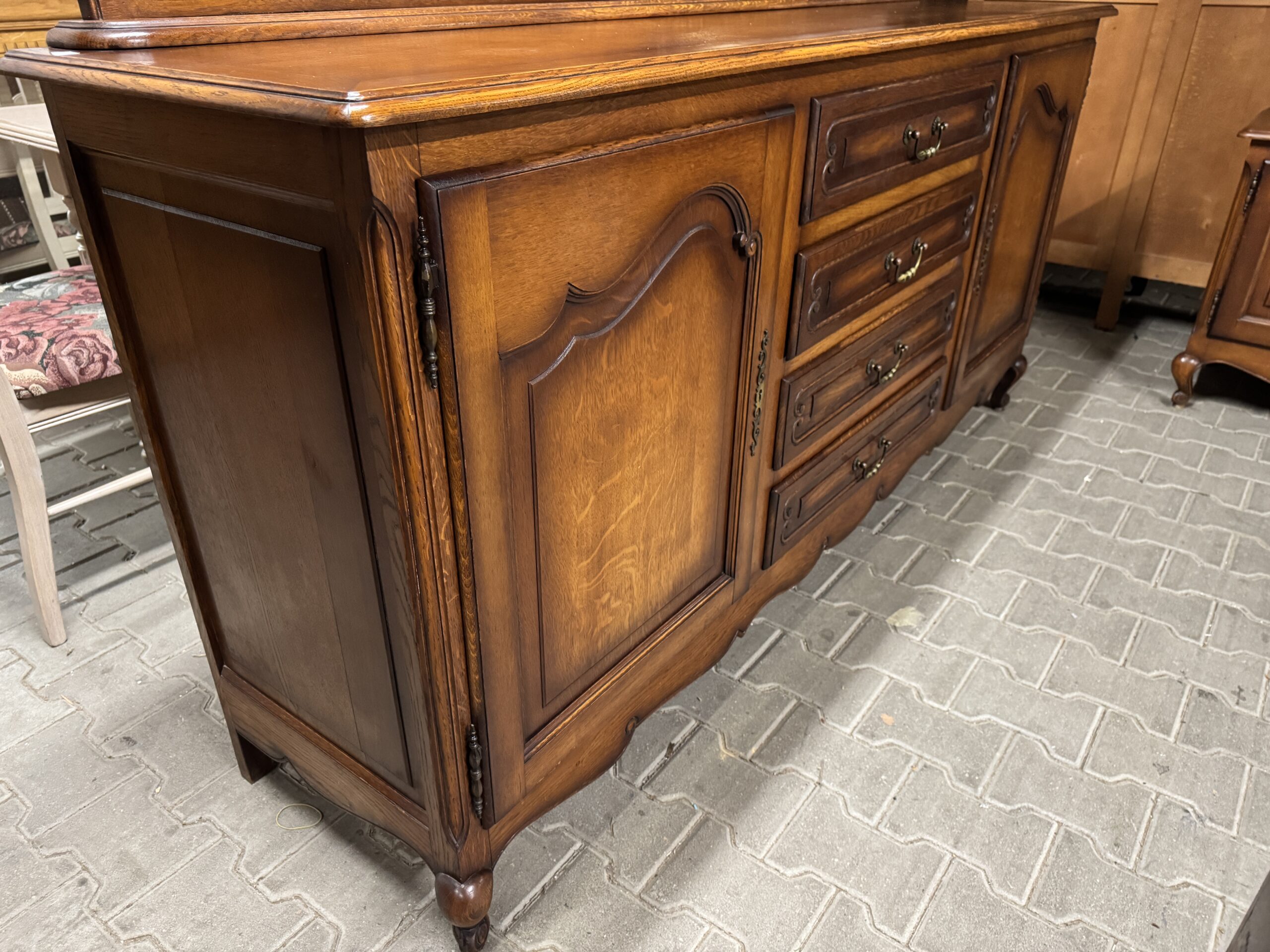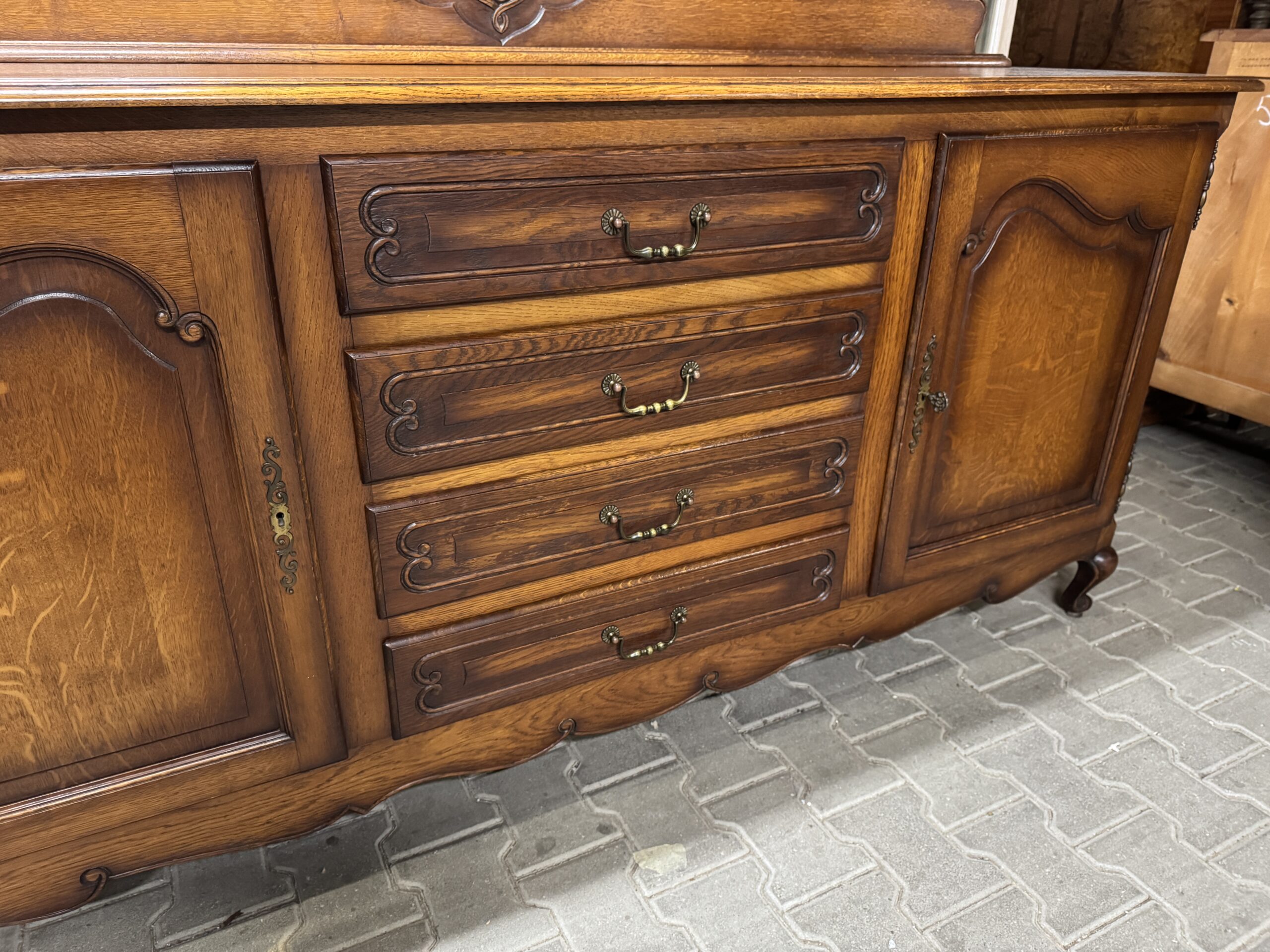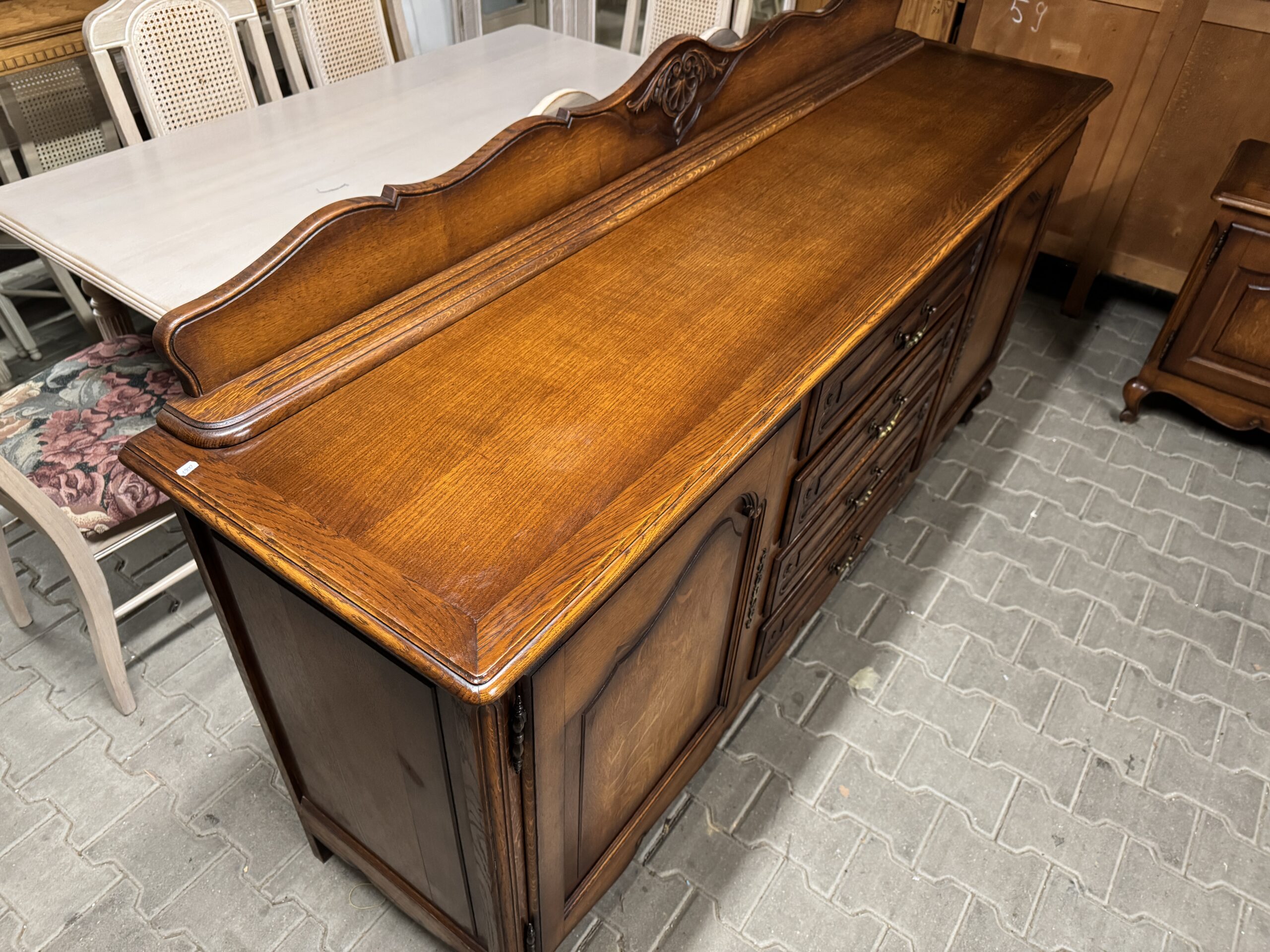 Mebel wyposażony w cztery pojemne szuflady w środku oraz półki.