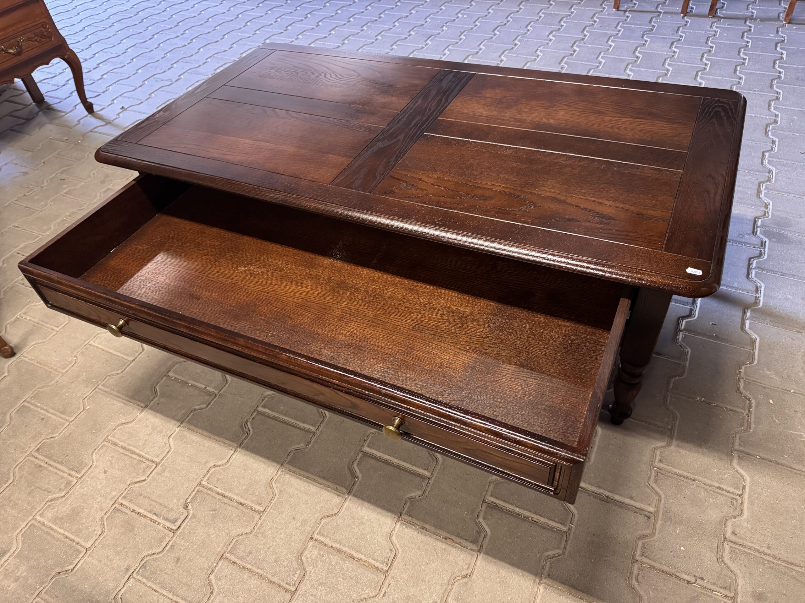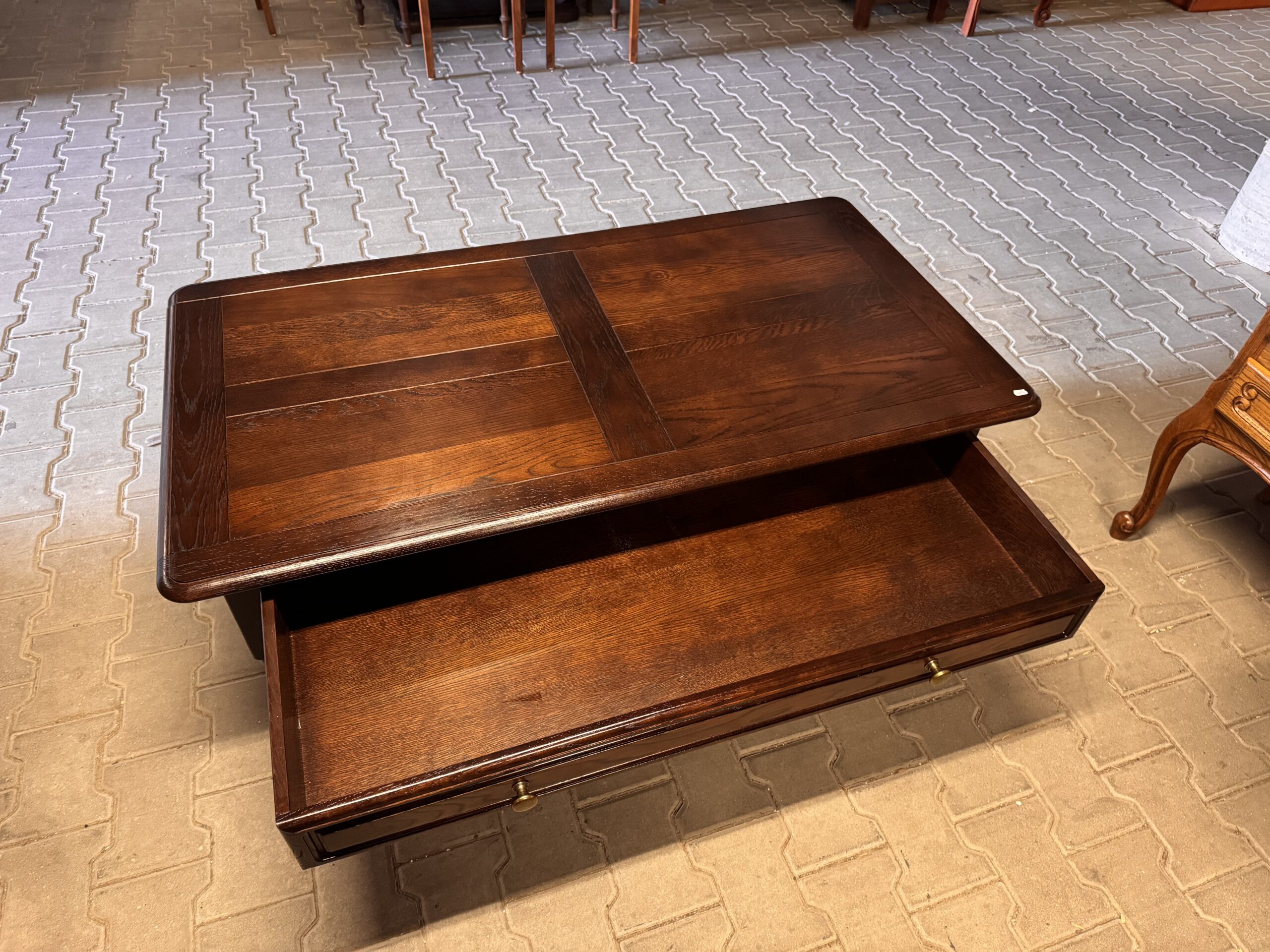 Posiada dużą szufladę, która otwiera się z obu stron.