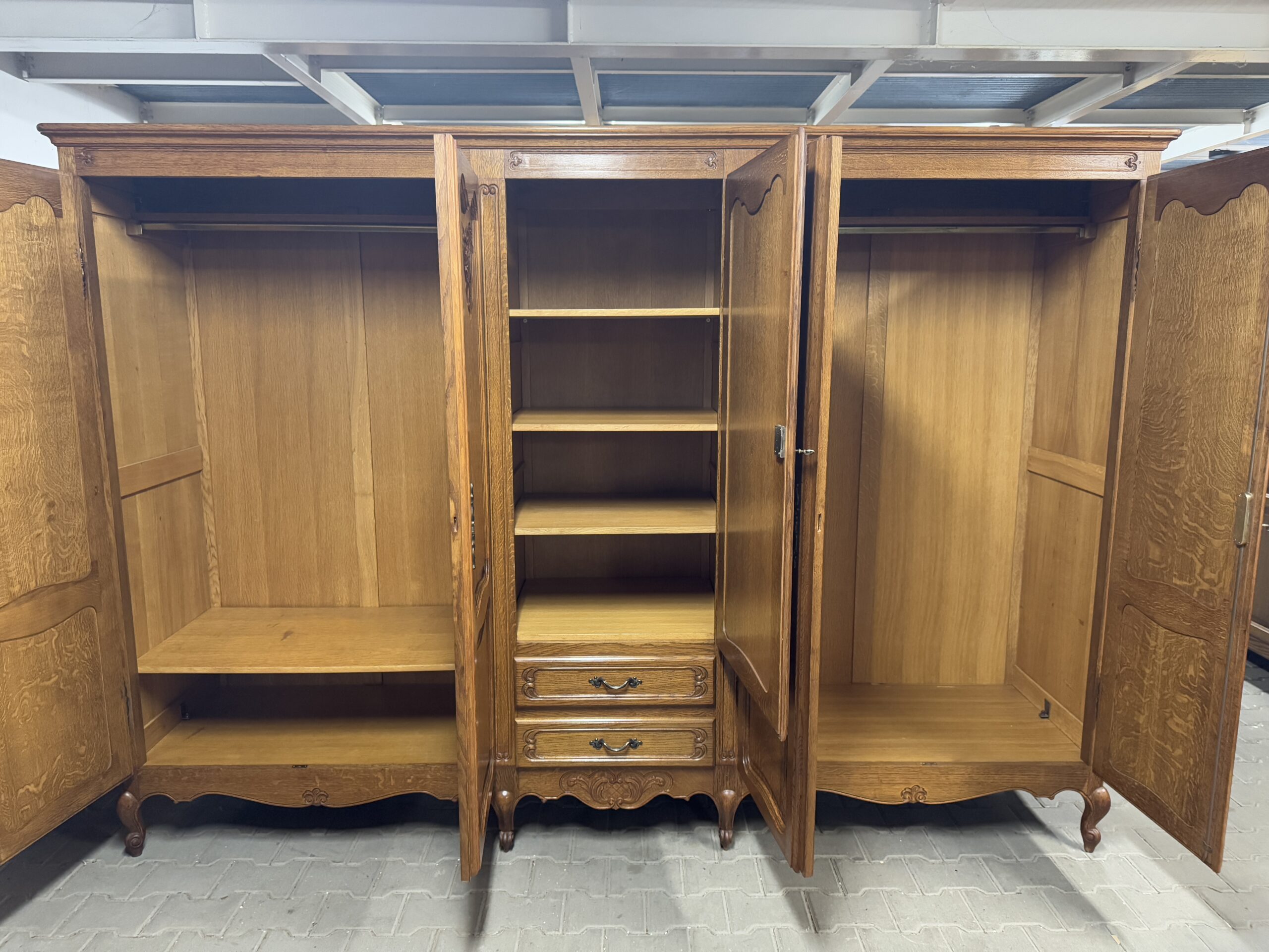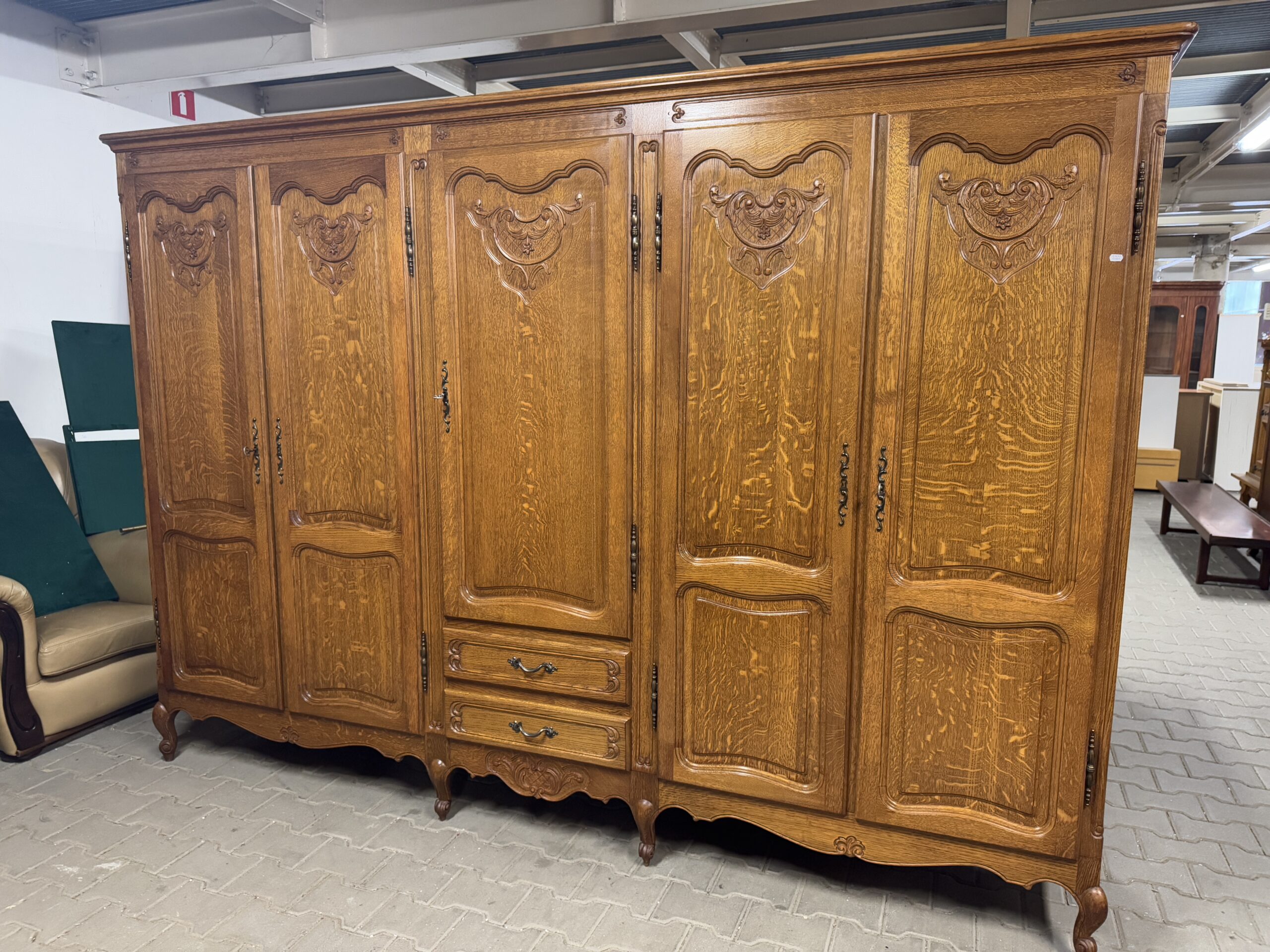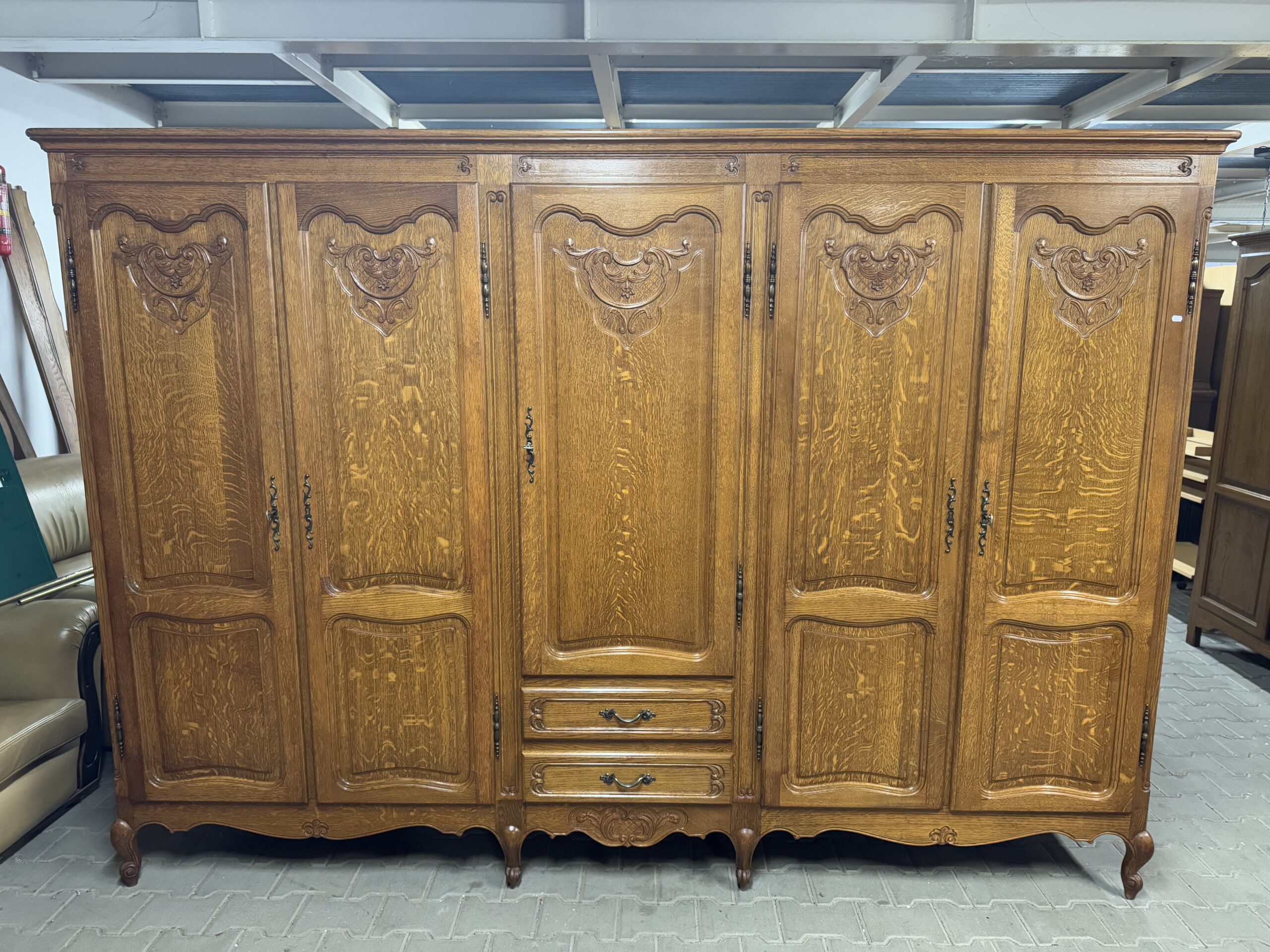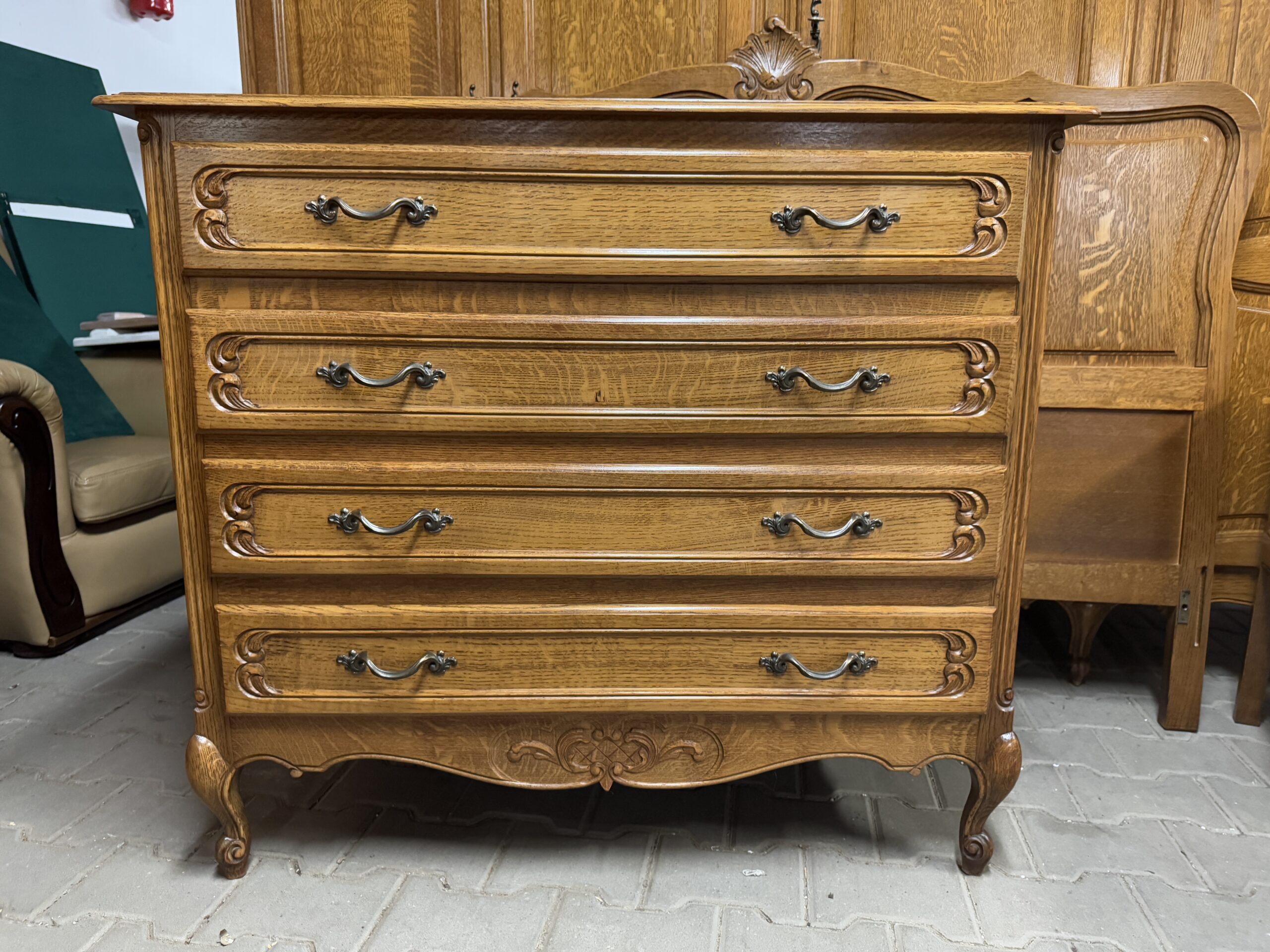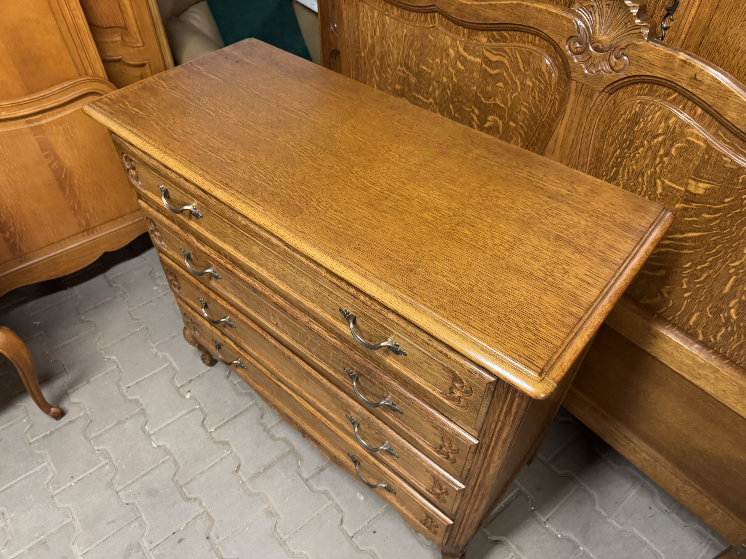 Piękne ozdobne rzeźbienia oraz oryginalne okucia tworzą wyjątkowy wystrój mebli.