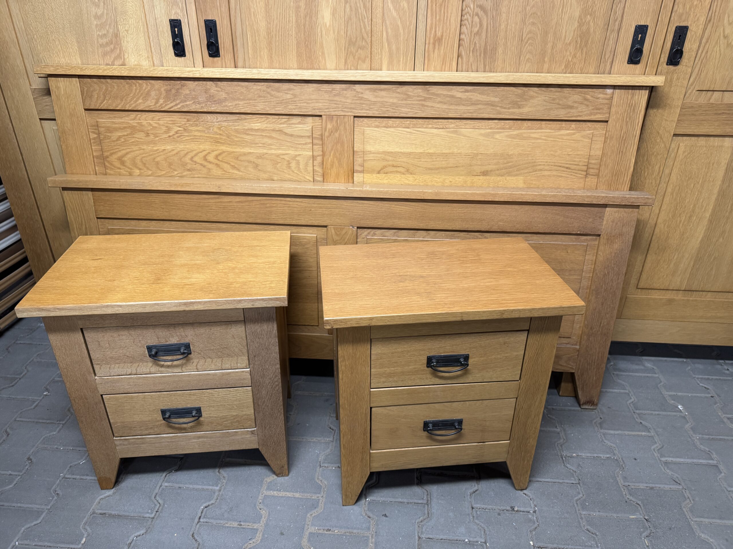 Cena za komplet: szafa, łóżko ze stelażem, dwie szafki nocne.