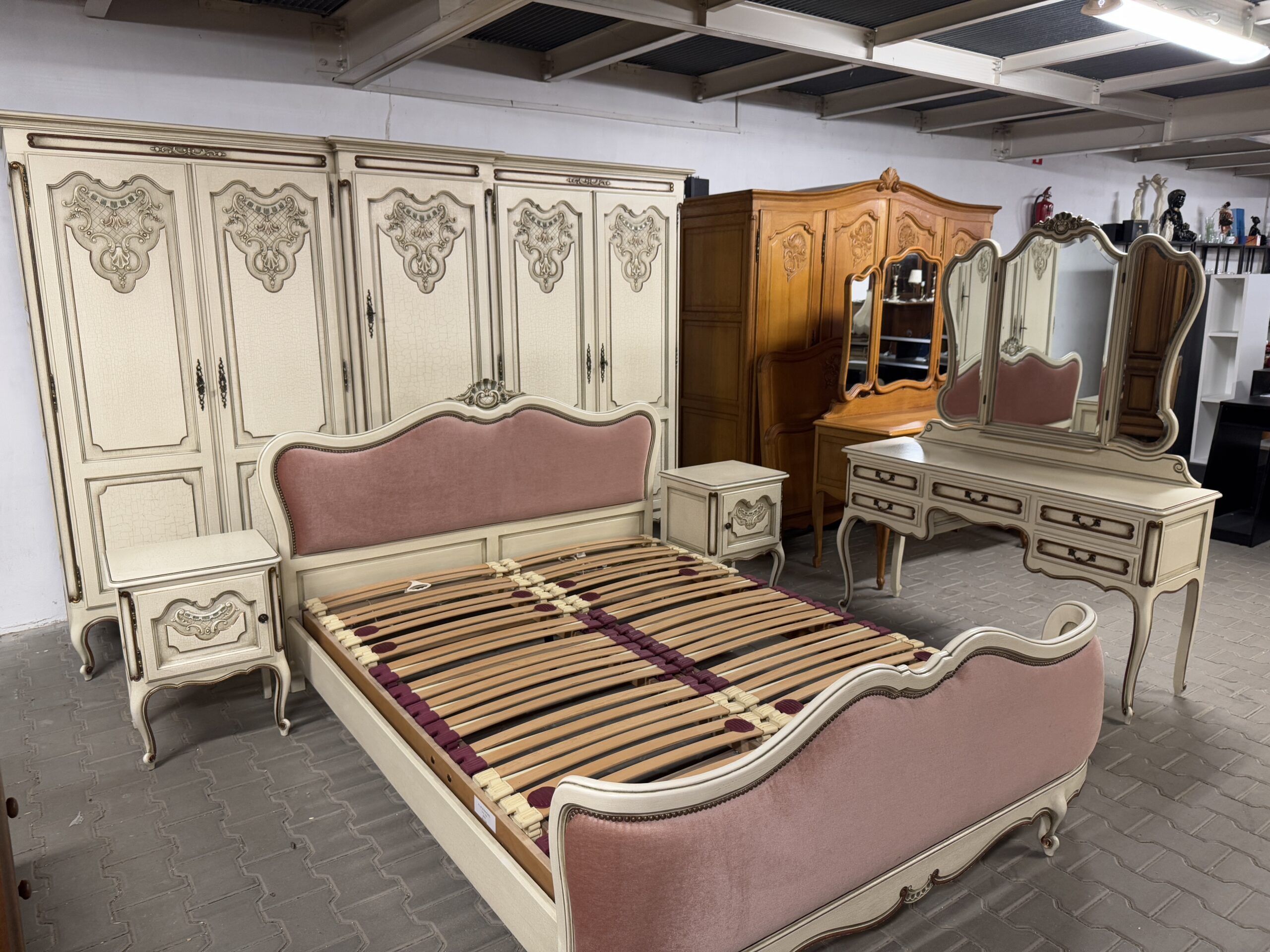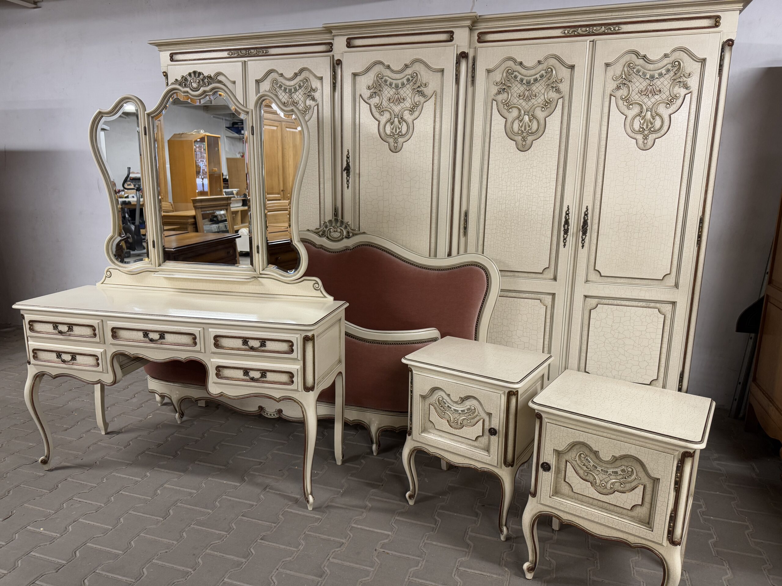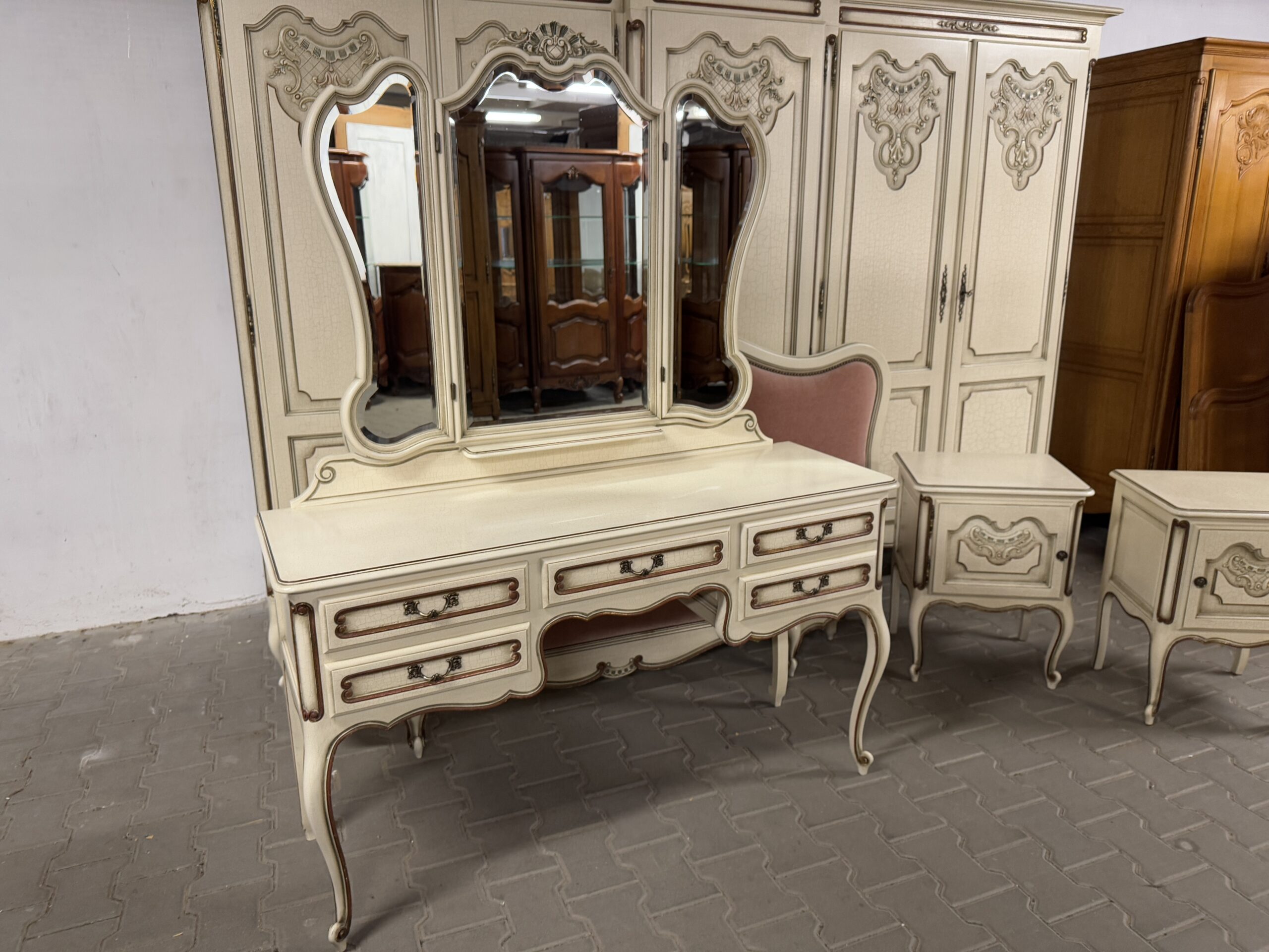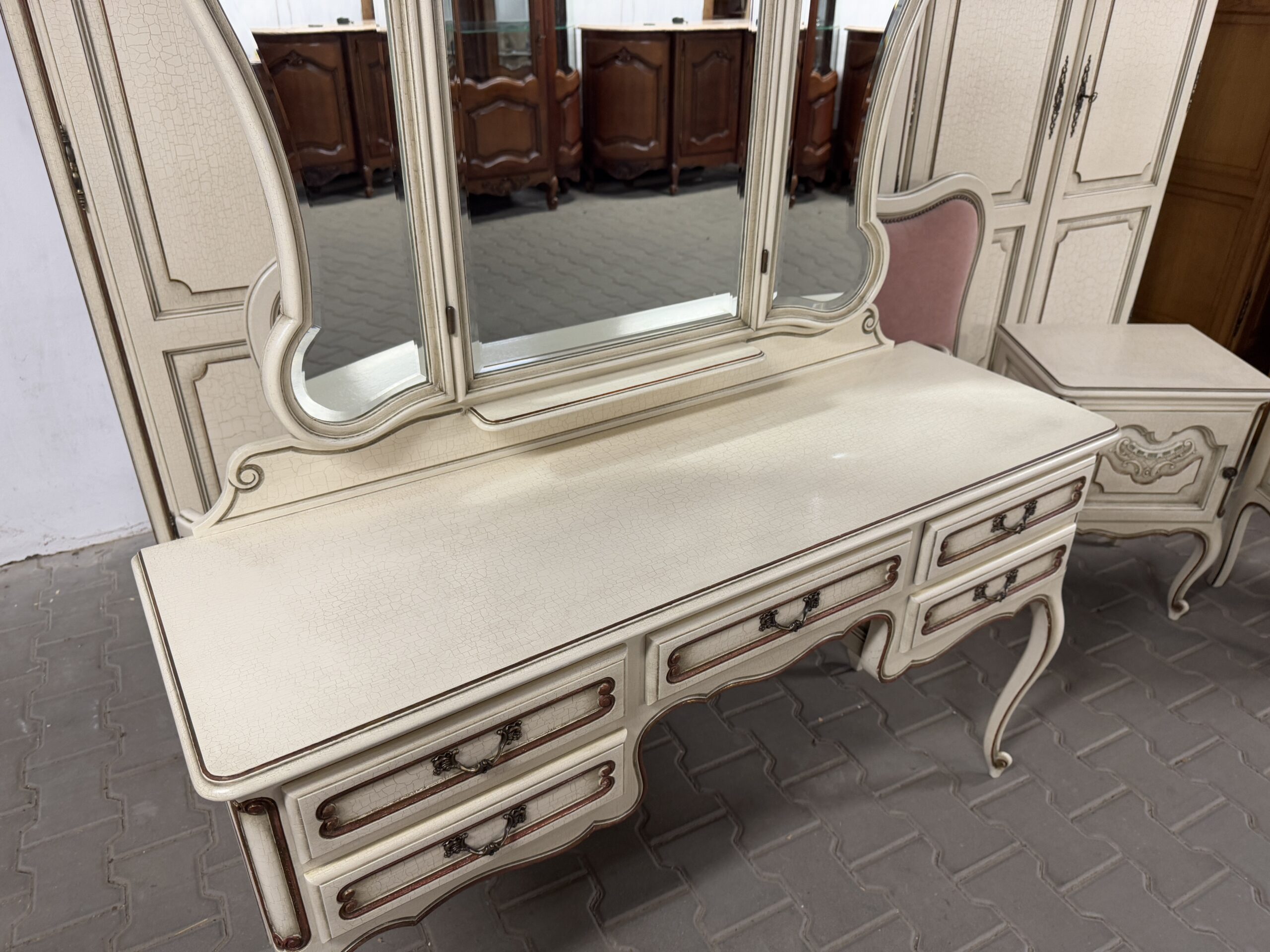Cena za komplet: szafa, łóżko ze stelażem, toaletka, dwie szafki nocne.