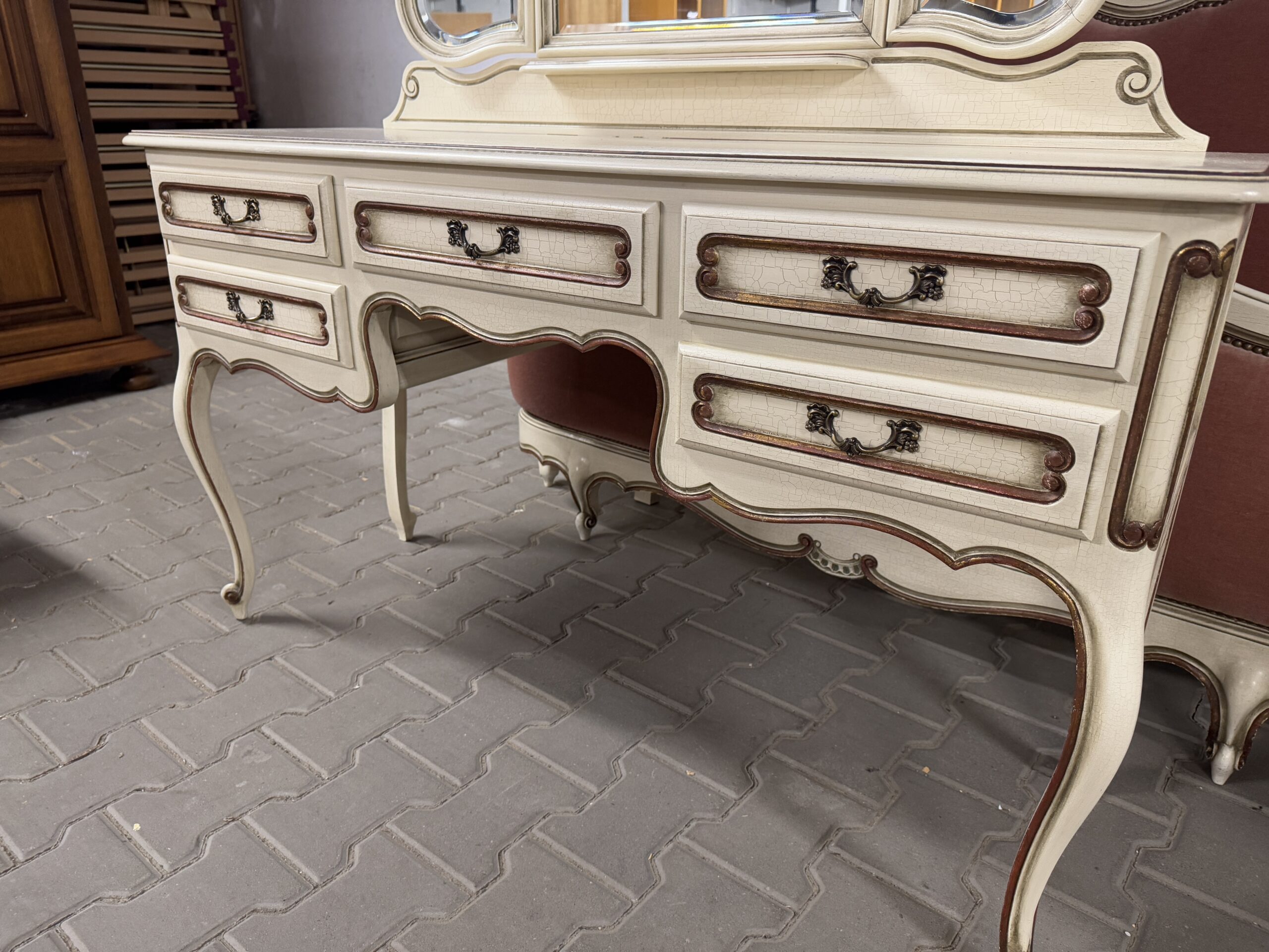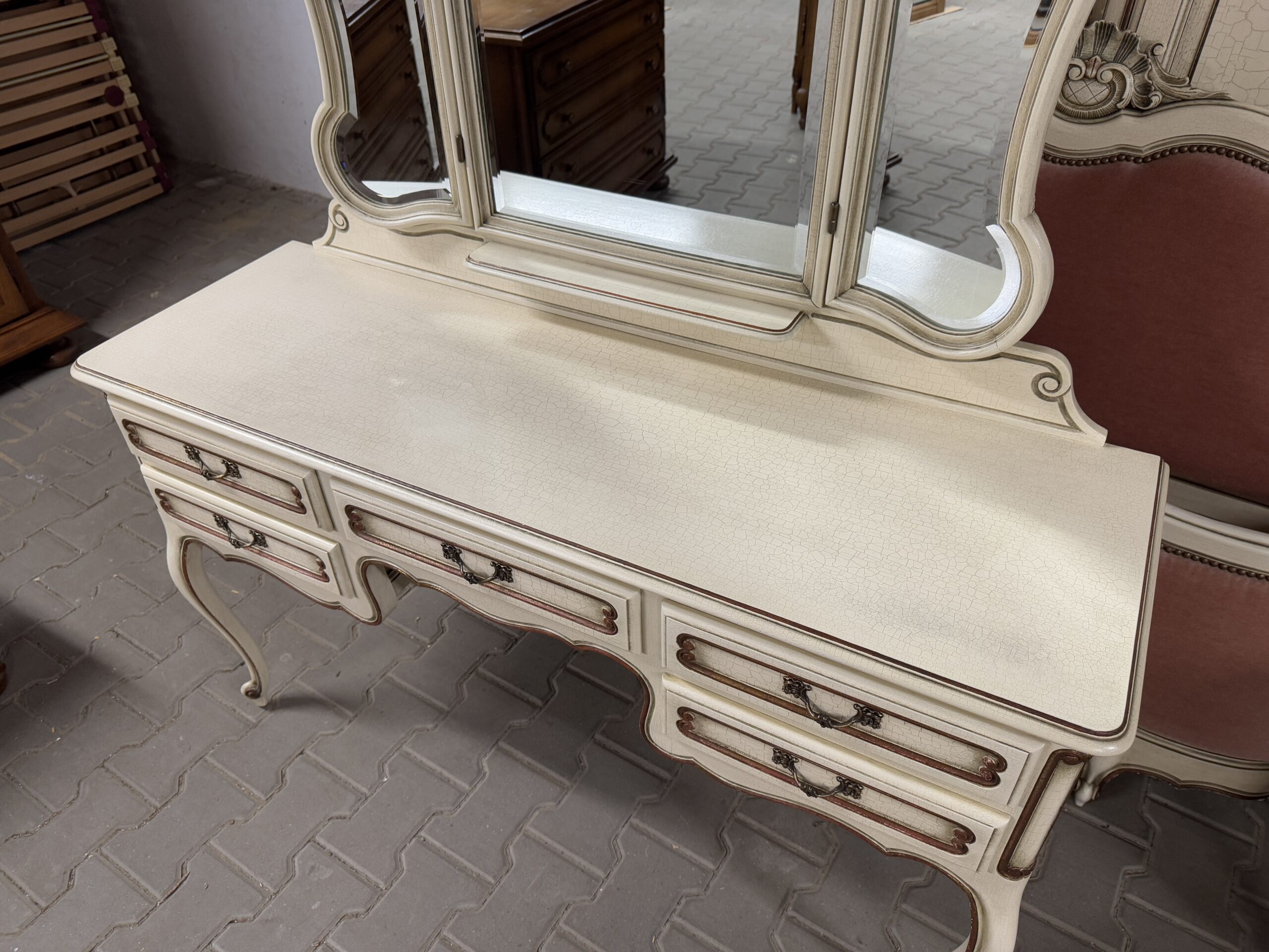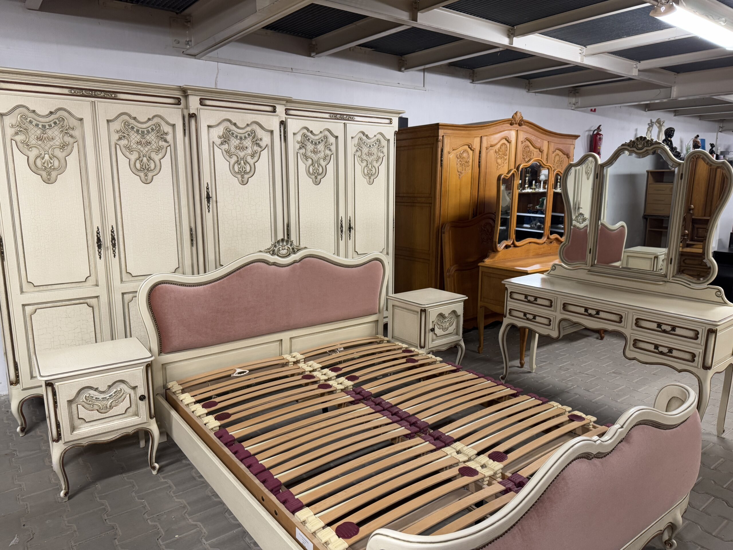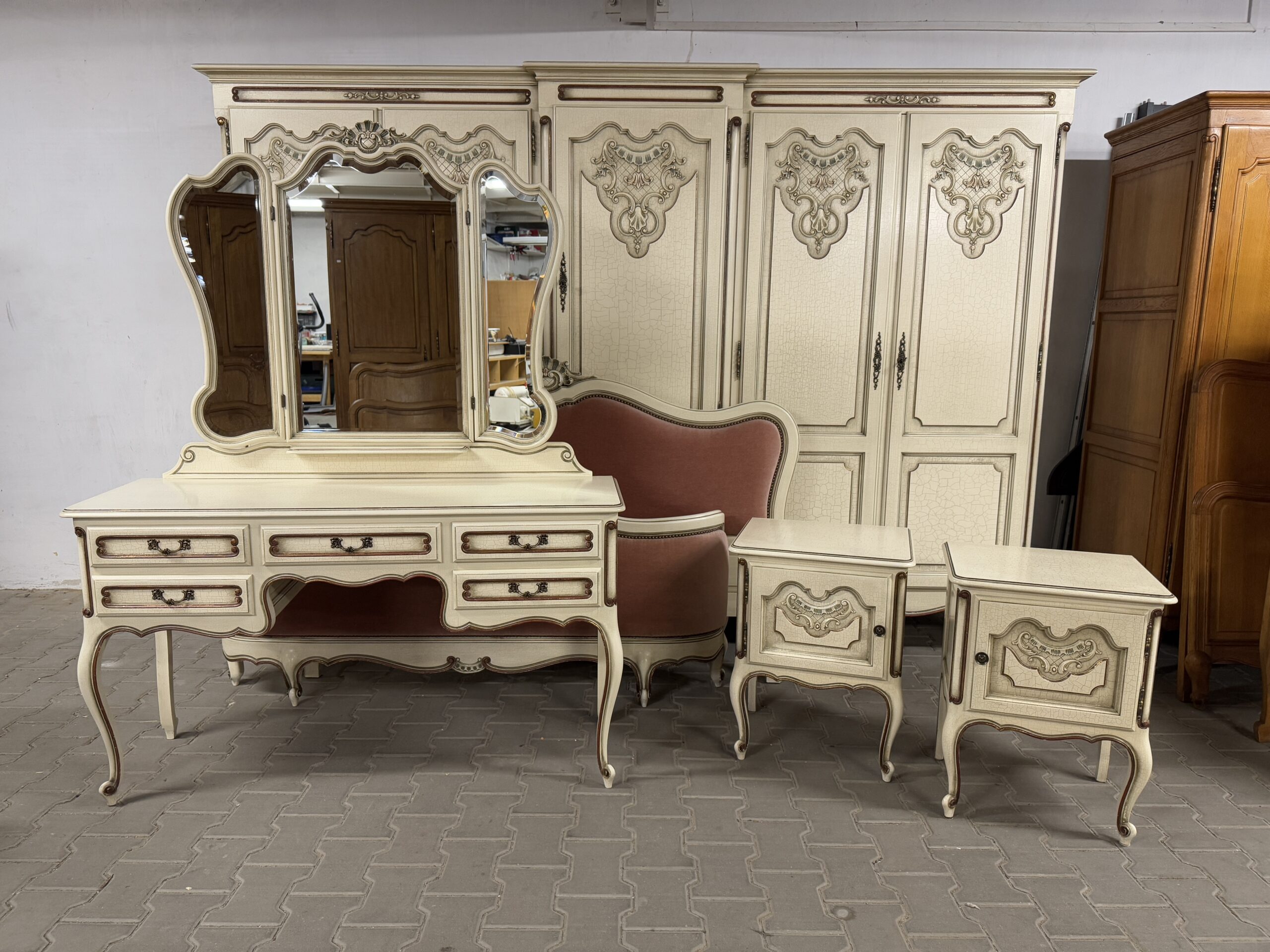 Cena za komplet: szafa, łóżko ze stelażem, toaletka, dwie szafki nocne.