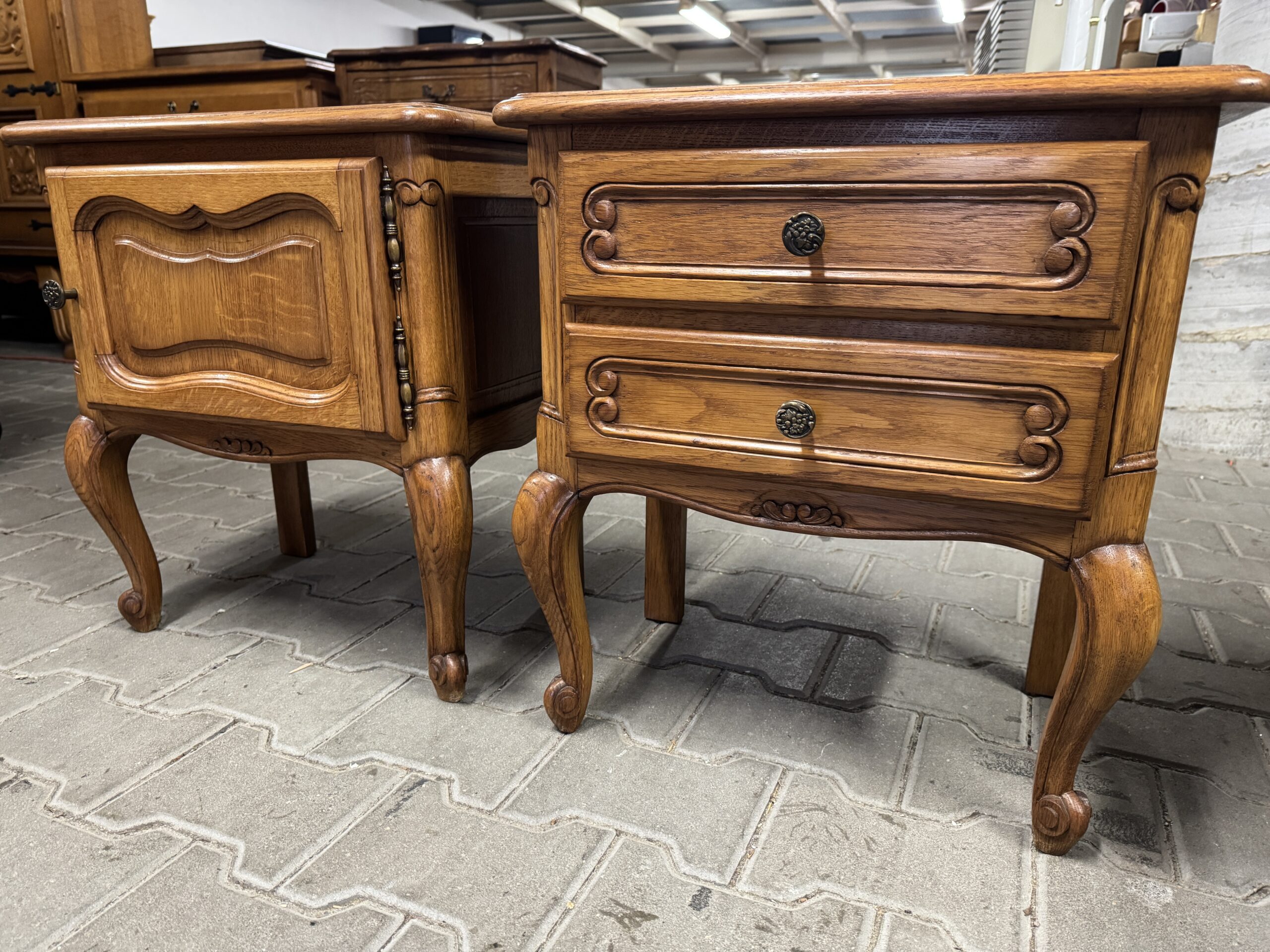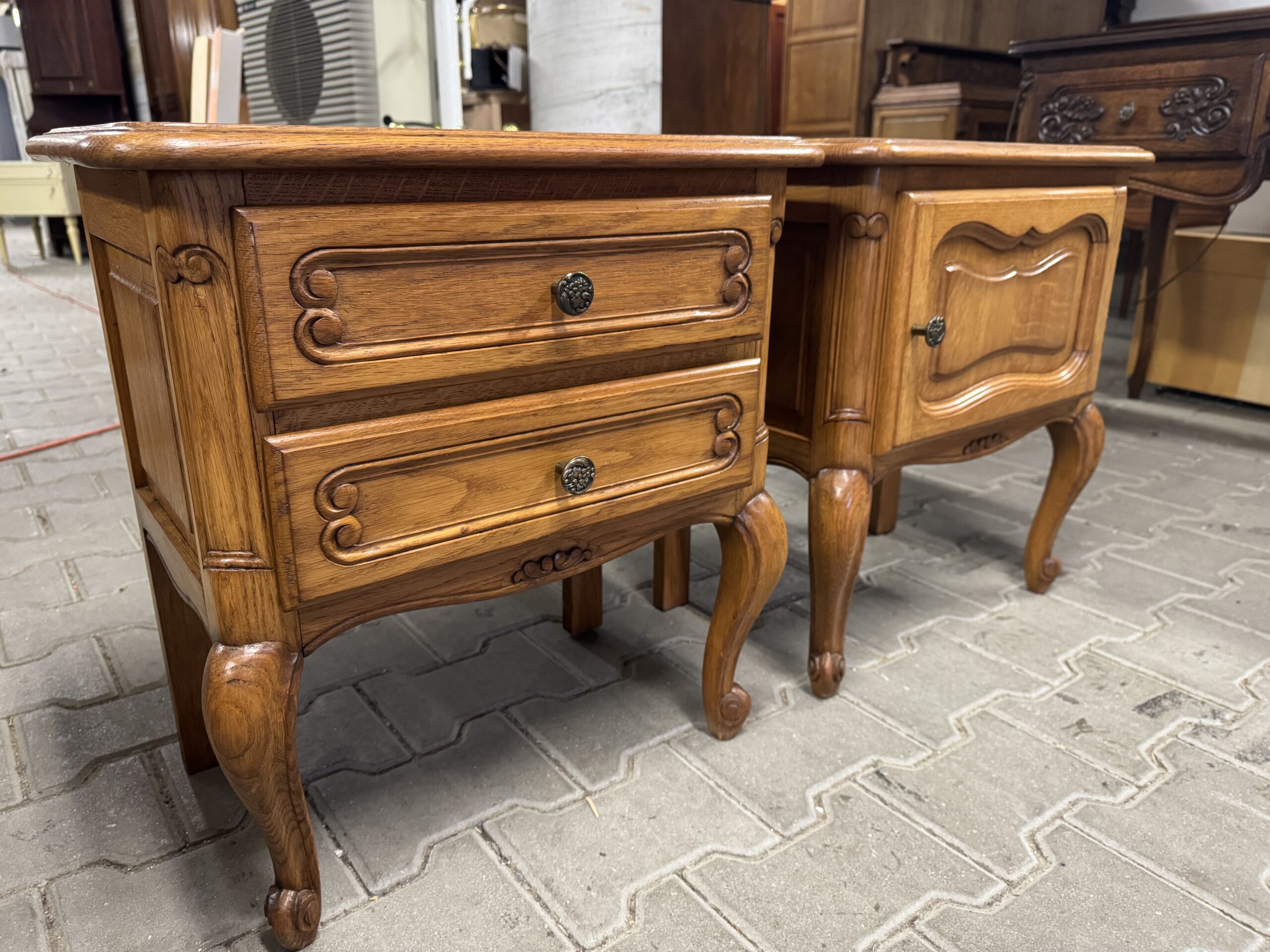 Zestaw dwóch szafek nocnych w stylu Ludwika.