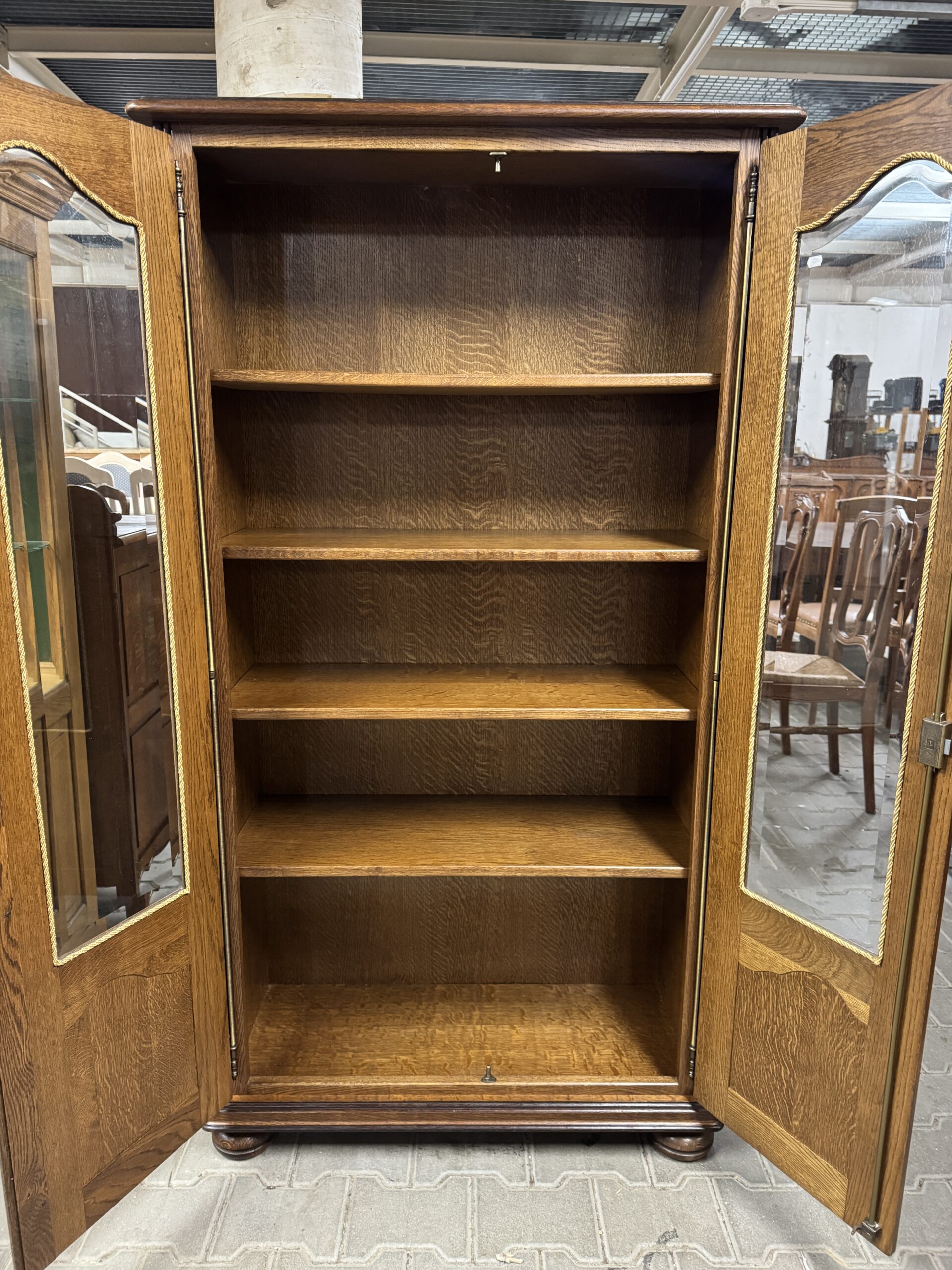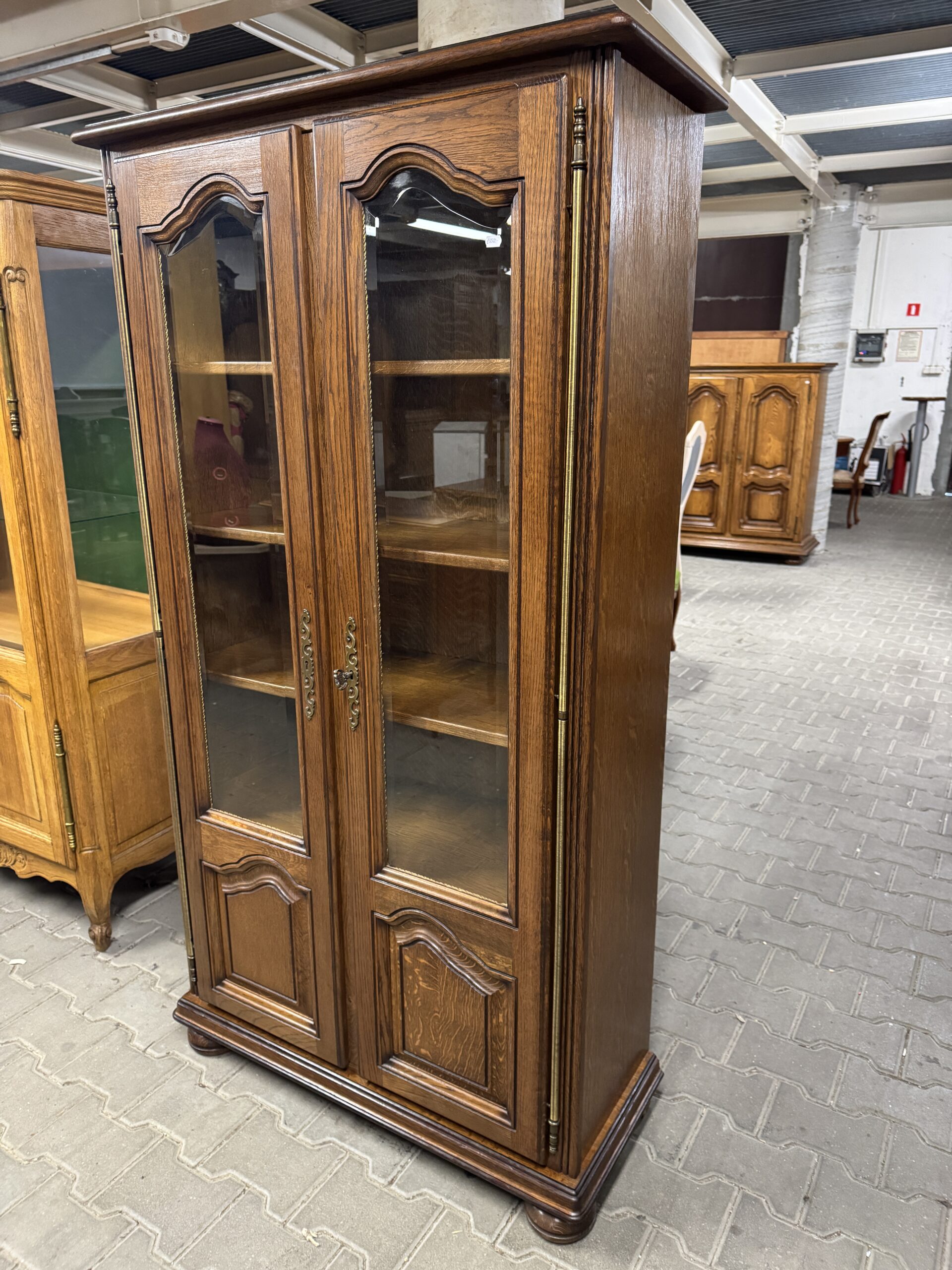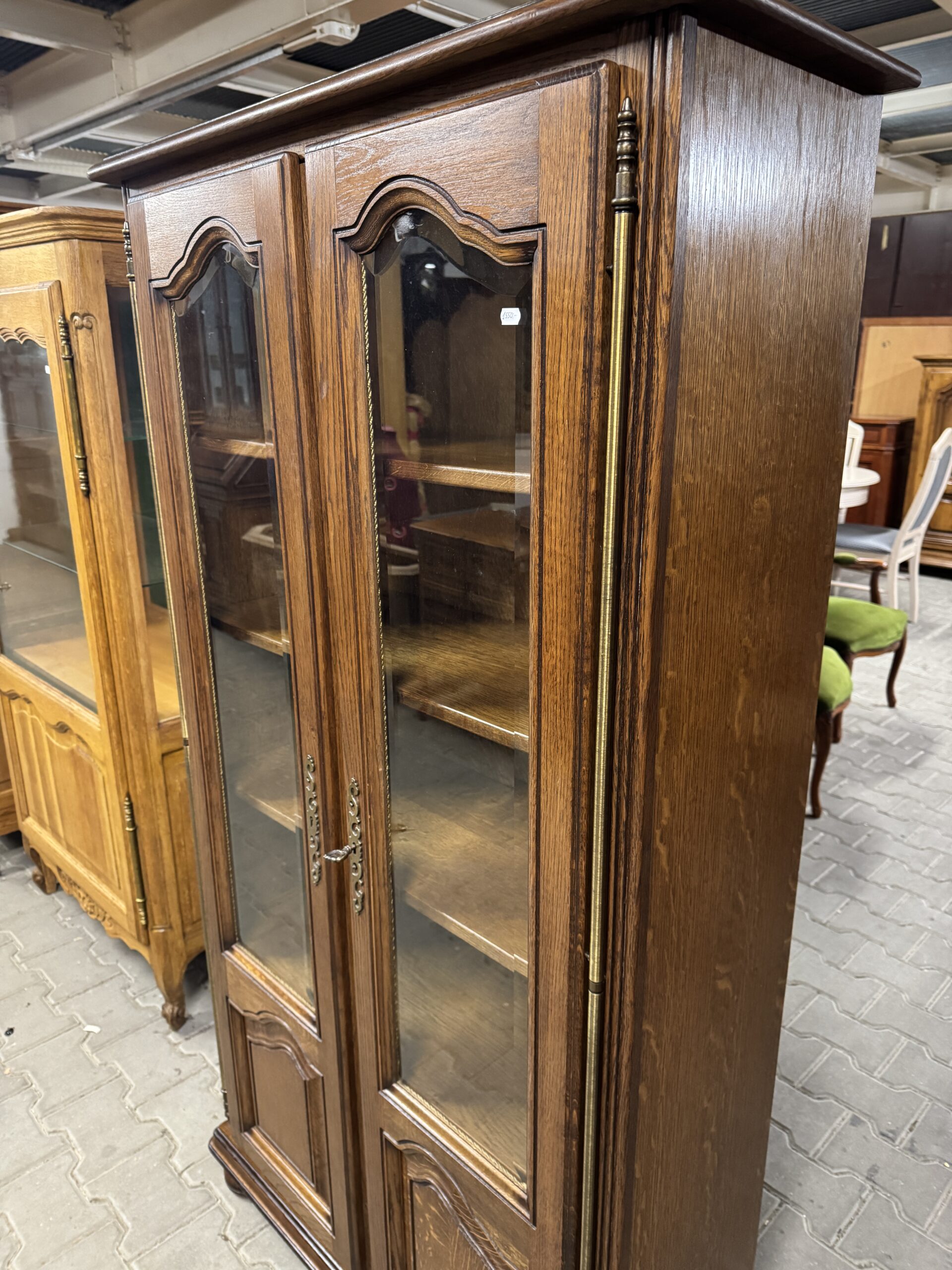 Witryna przeszklona szkłem kryształowym z fazą.