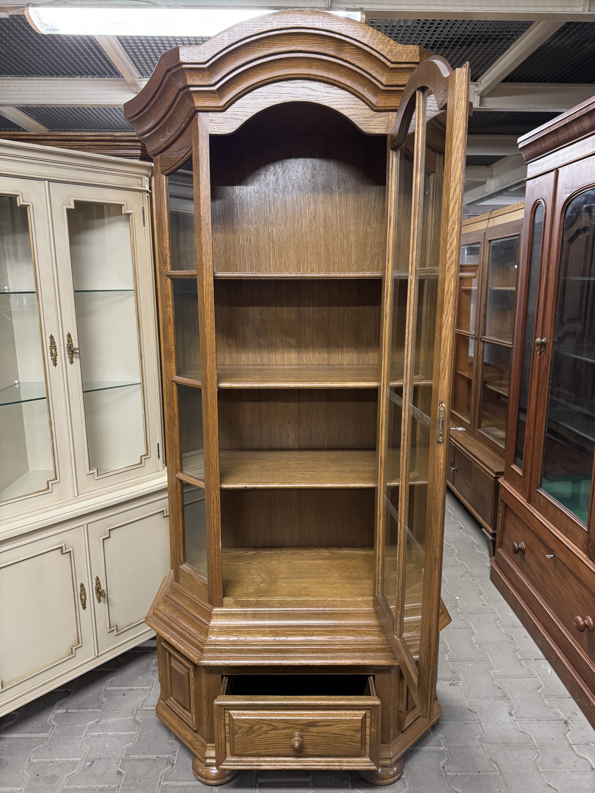 Stylowa dębowa witryna.
