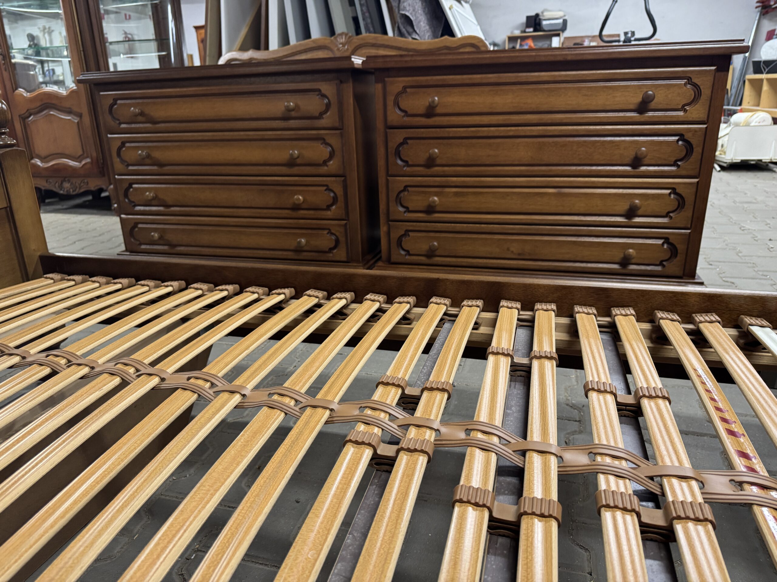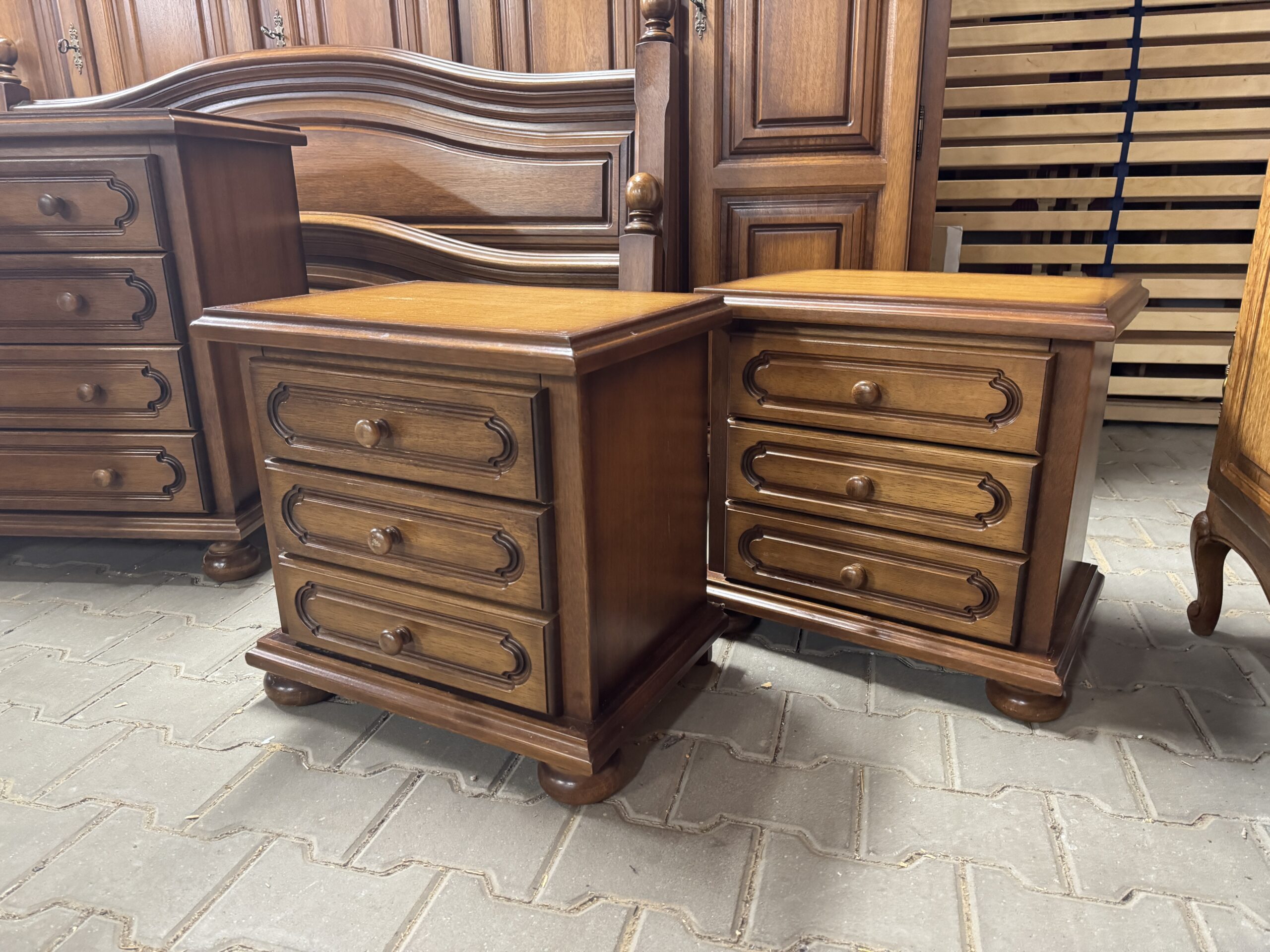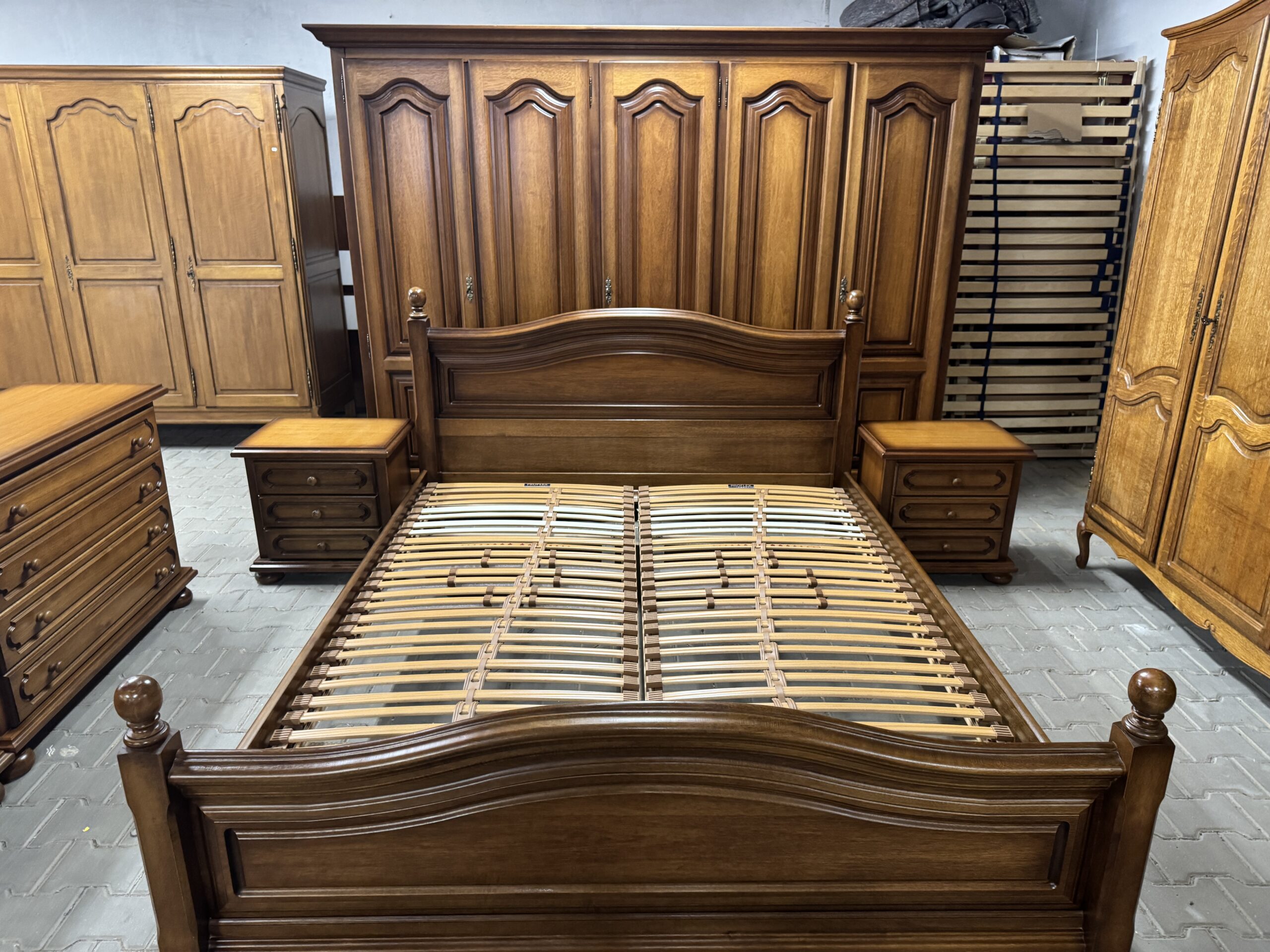 Cudowny komplet mebli w styli rustykalnym: pięciodrzwiowa szafa, łóżko, dwie szafki nocne, dwie komody.