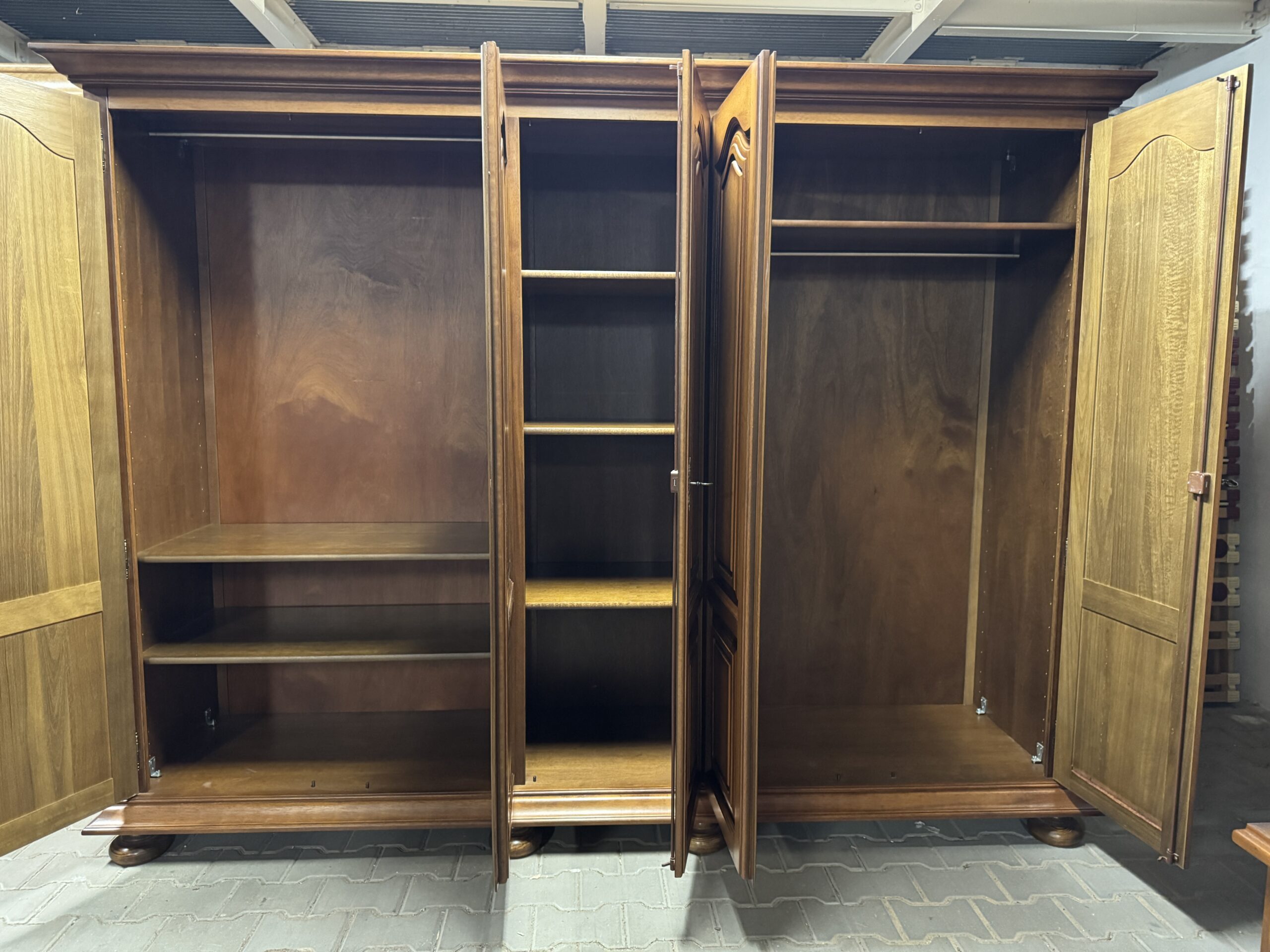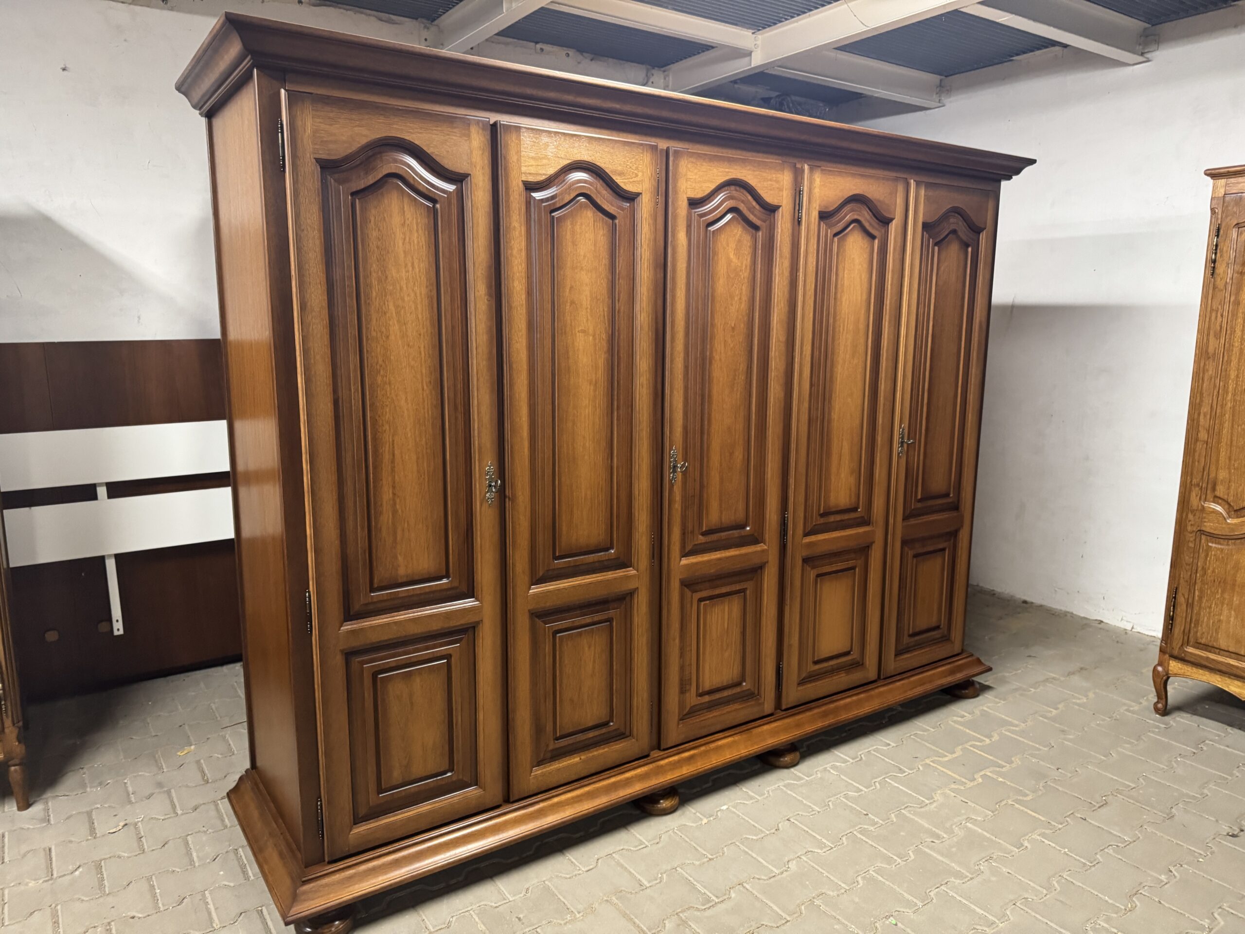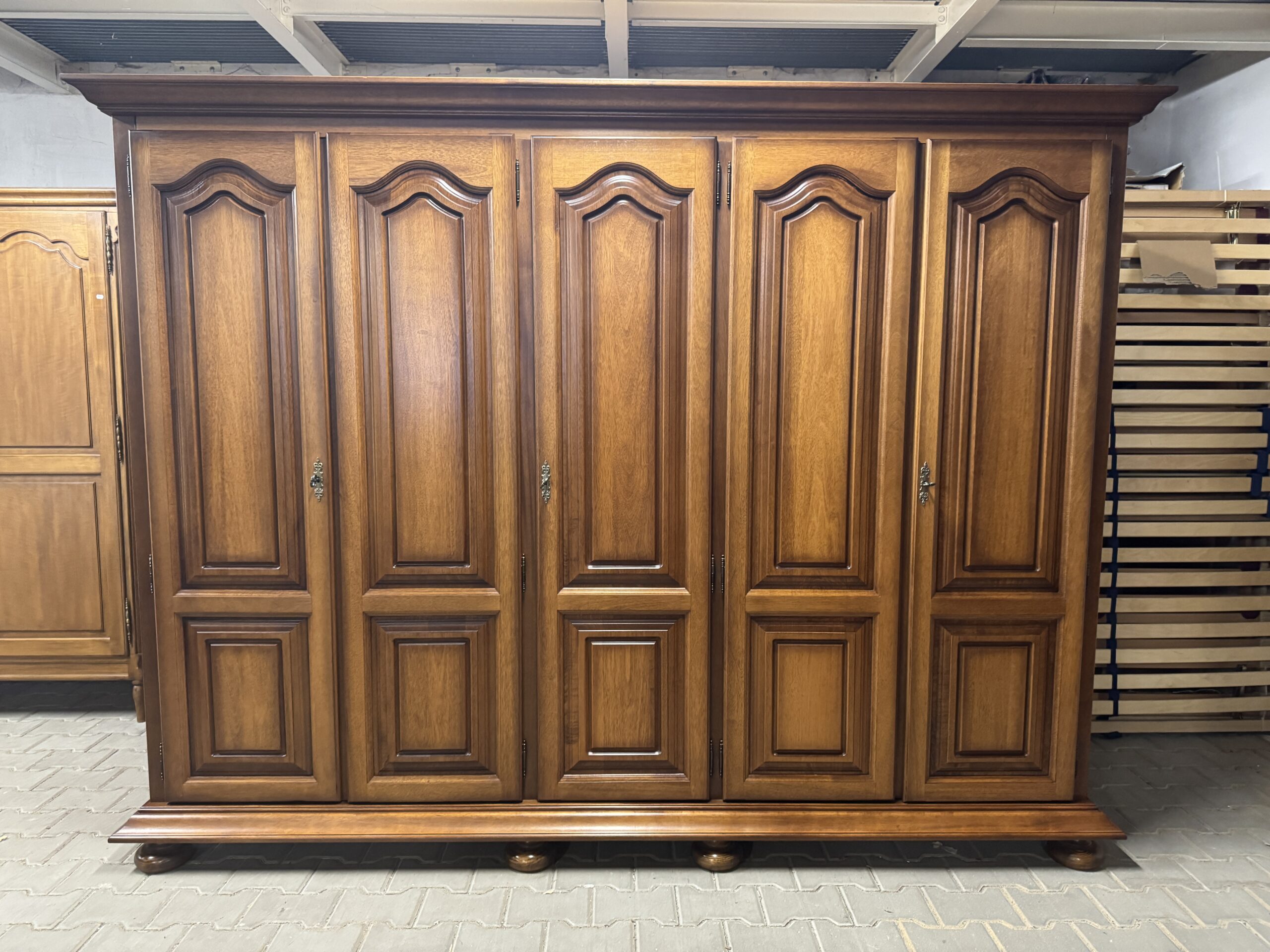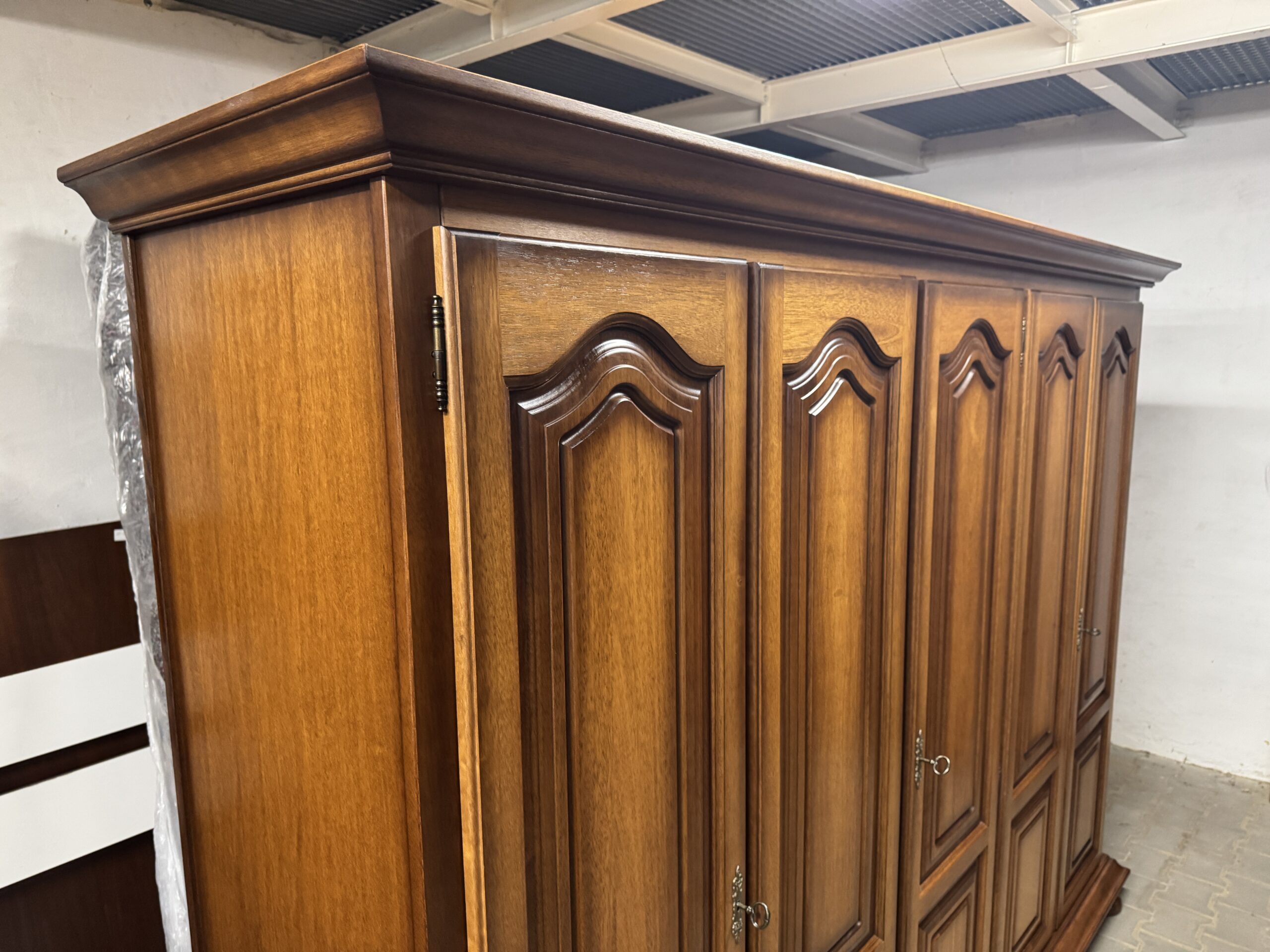 Cudowny komplet mebli w styli rustykalnym: pięciodrzwiowa szafa, łóżko, dwie szafki nocne, dwie komody.