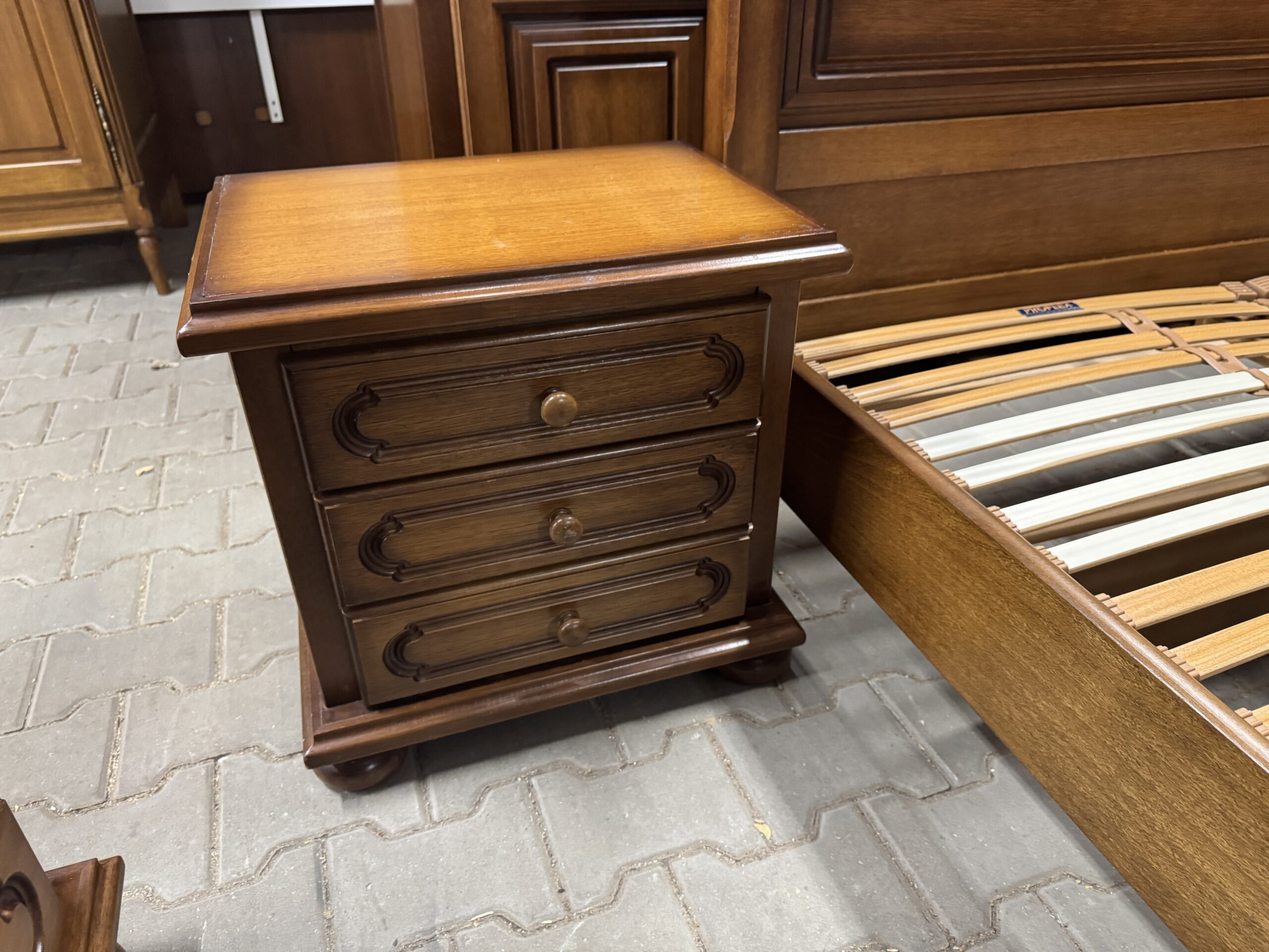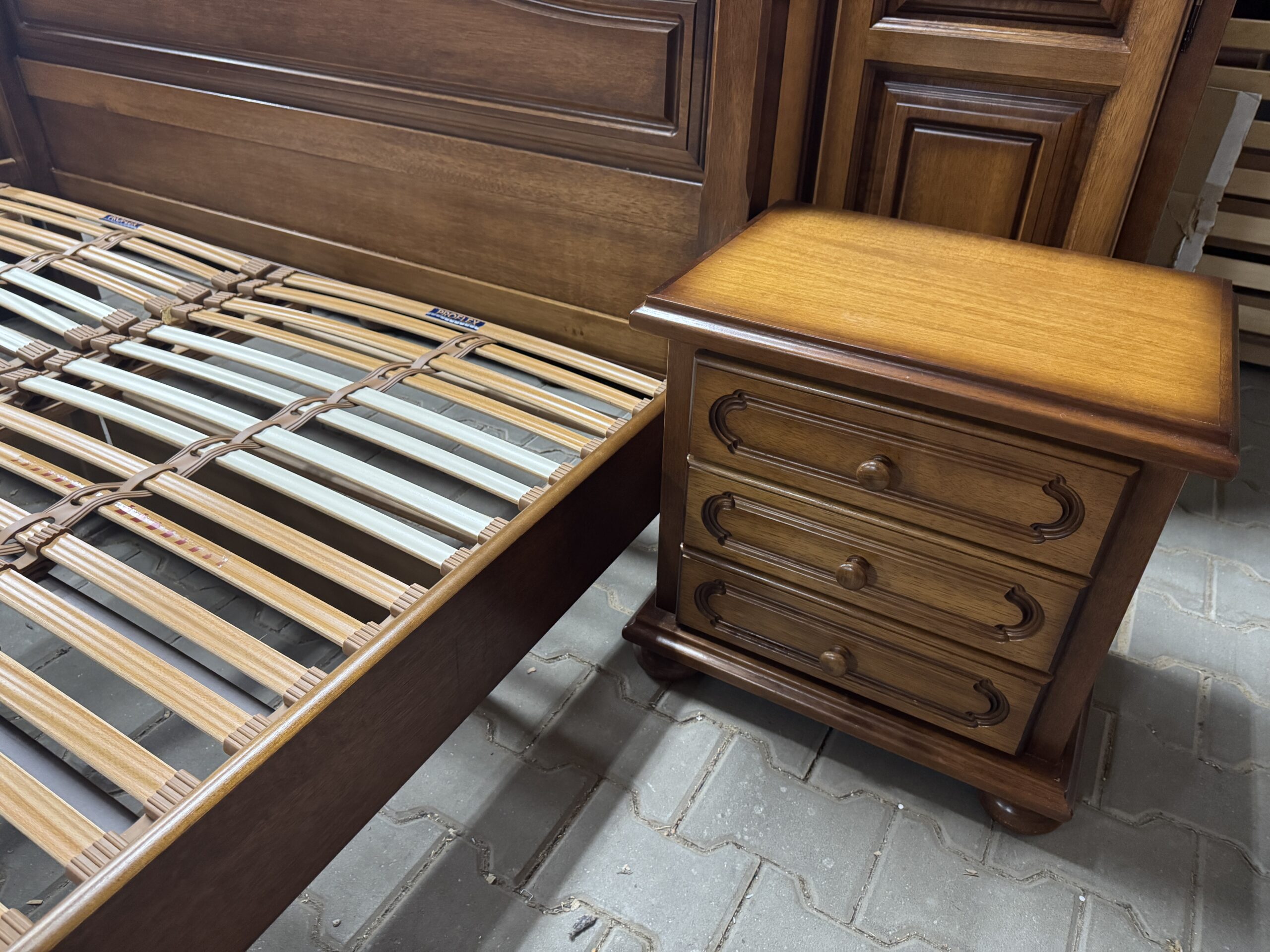 Cena za komplet: pięciodrzwiowa szafa, łóżko wraz ze stelażem, dwie szafki nocne, dwie komody.
