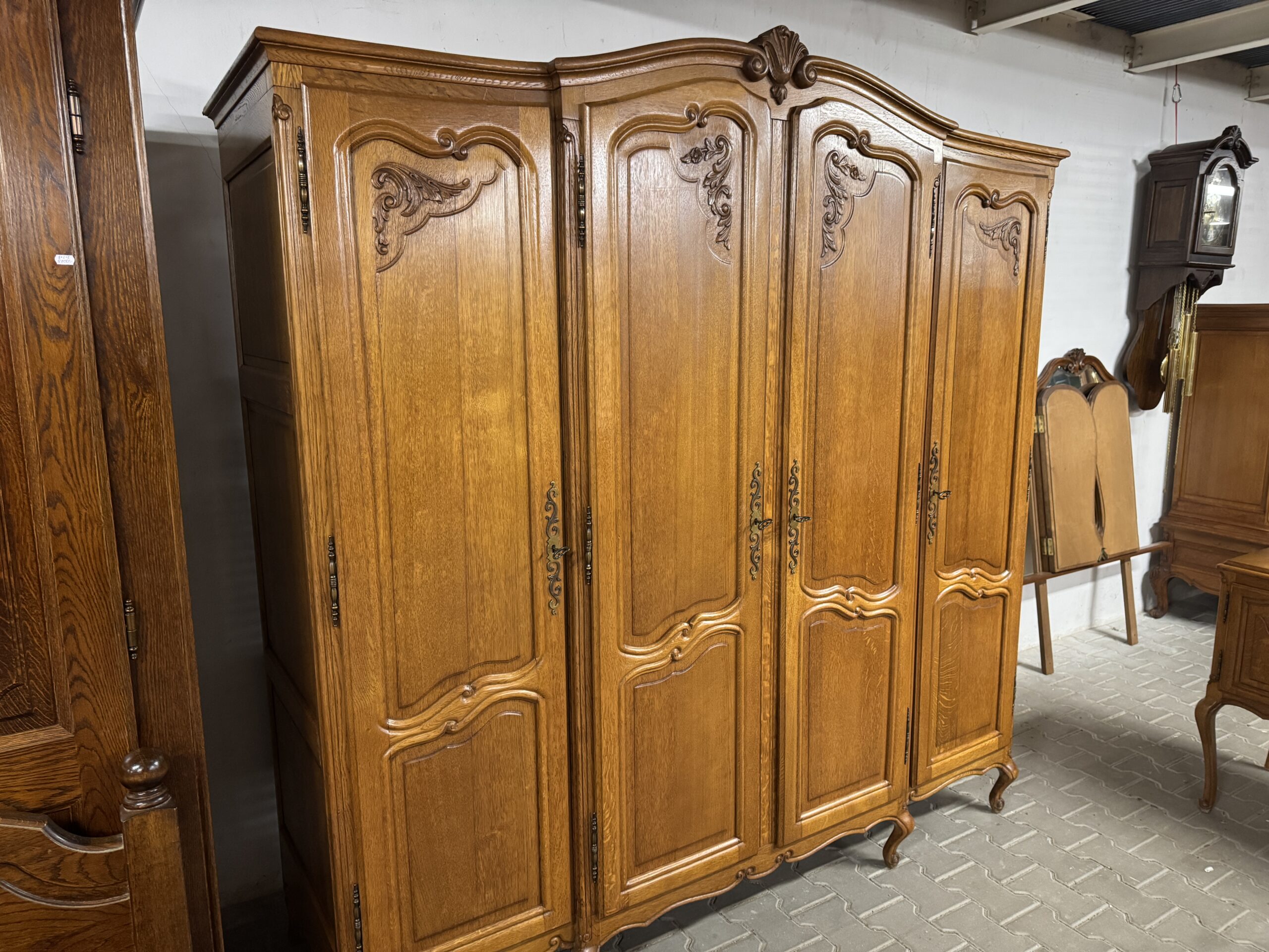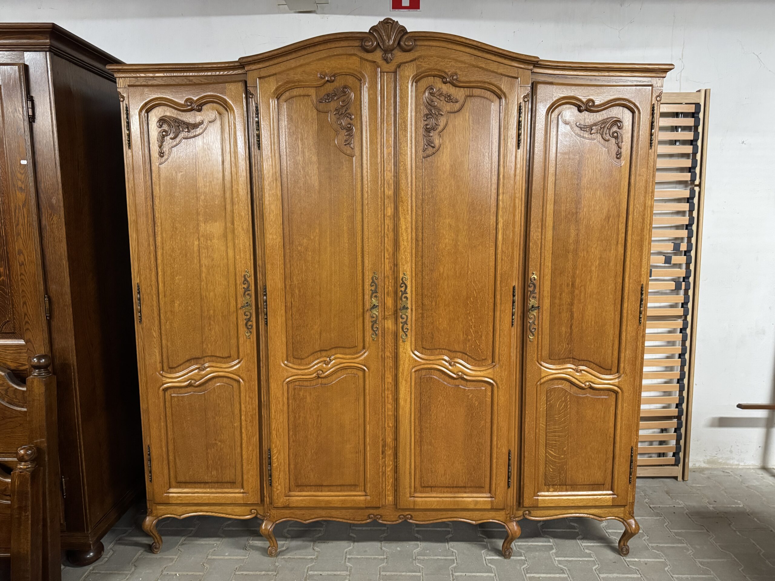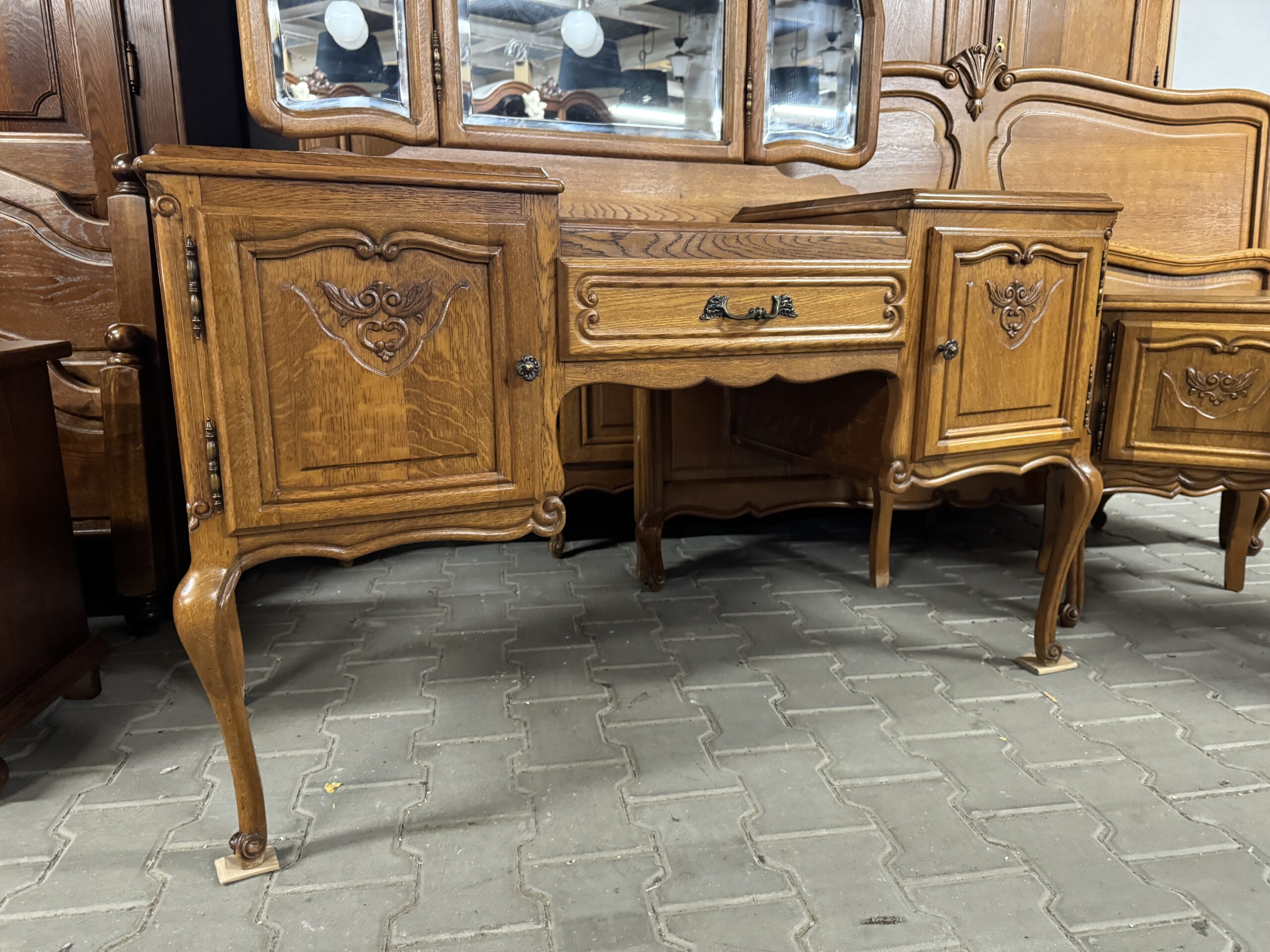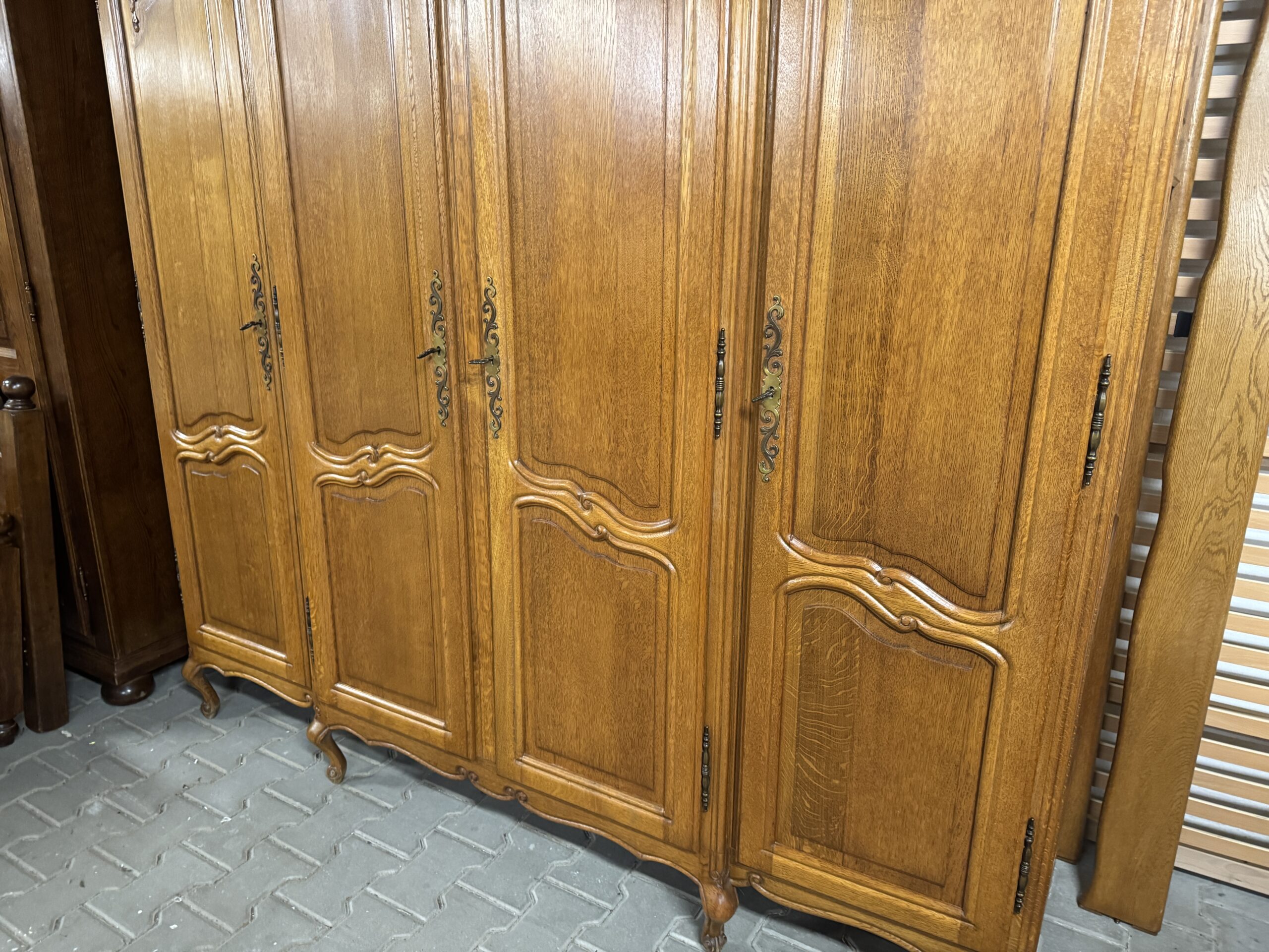 Cudowny komplet mebli w stylu ludwikowskim: czterodrzwiowa szafa, toaletka, łóżko i dwie szafki nocne.